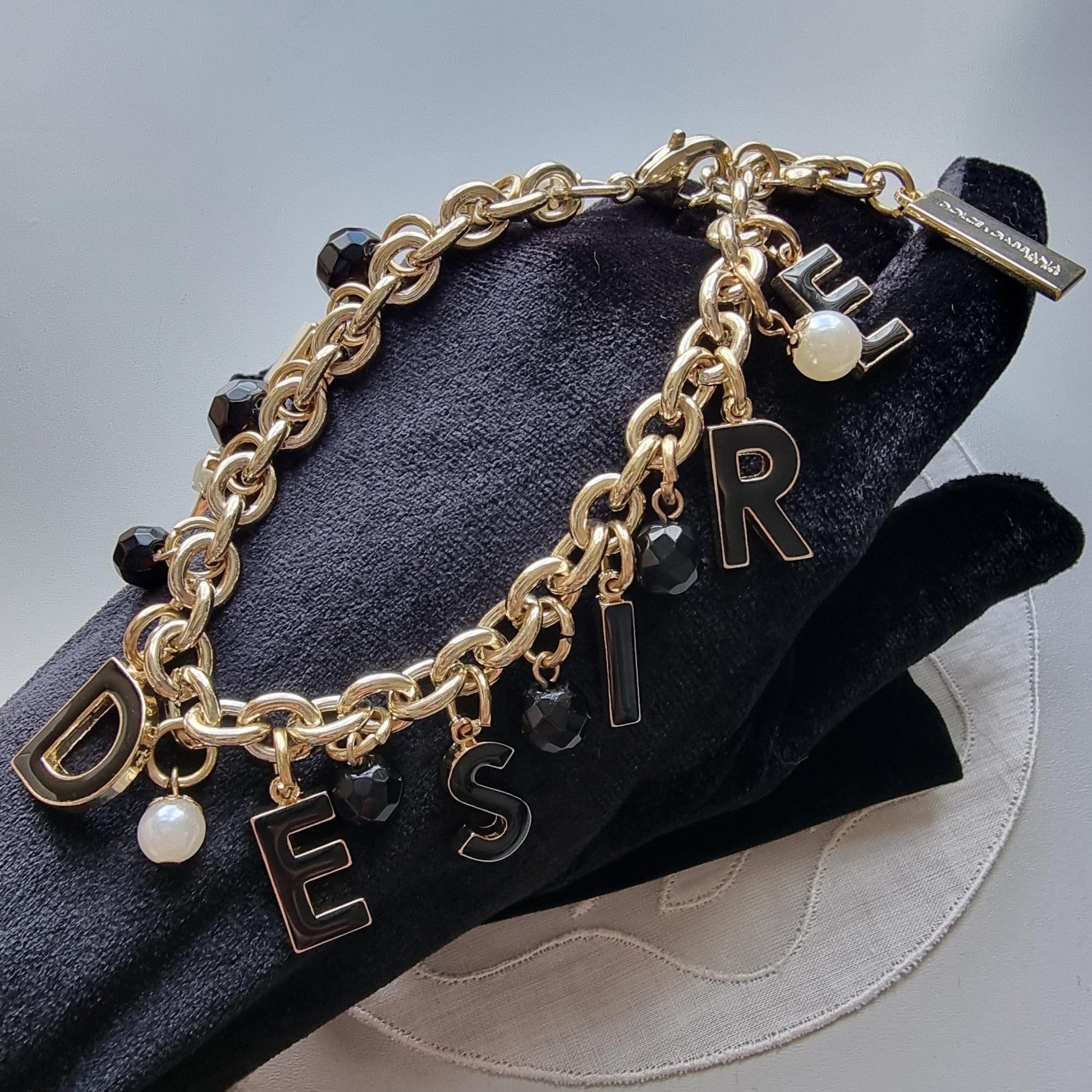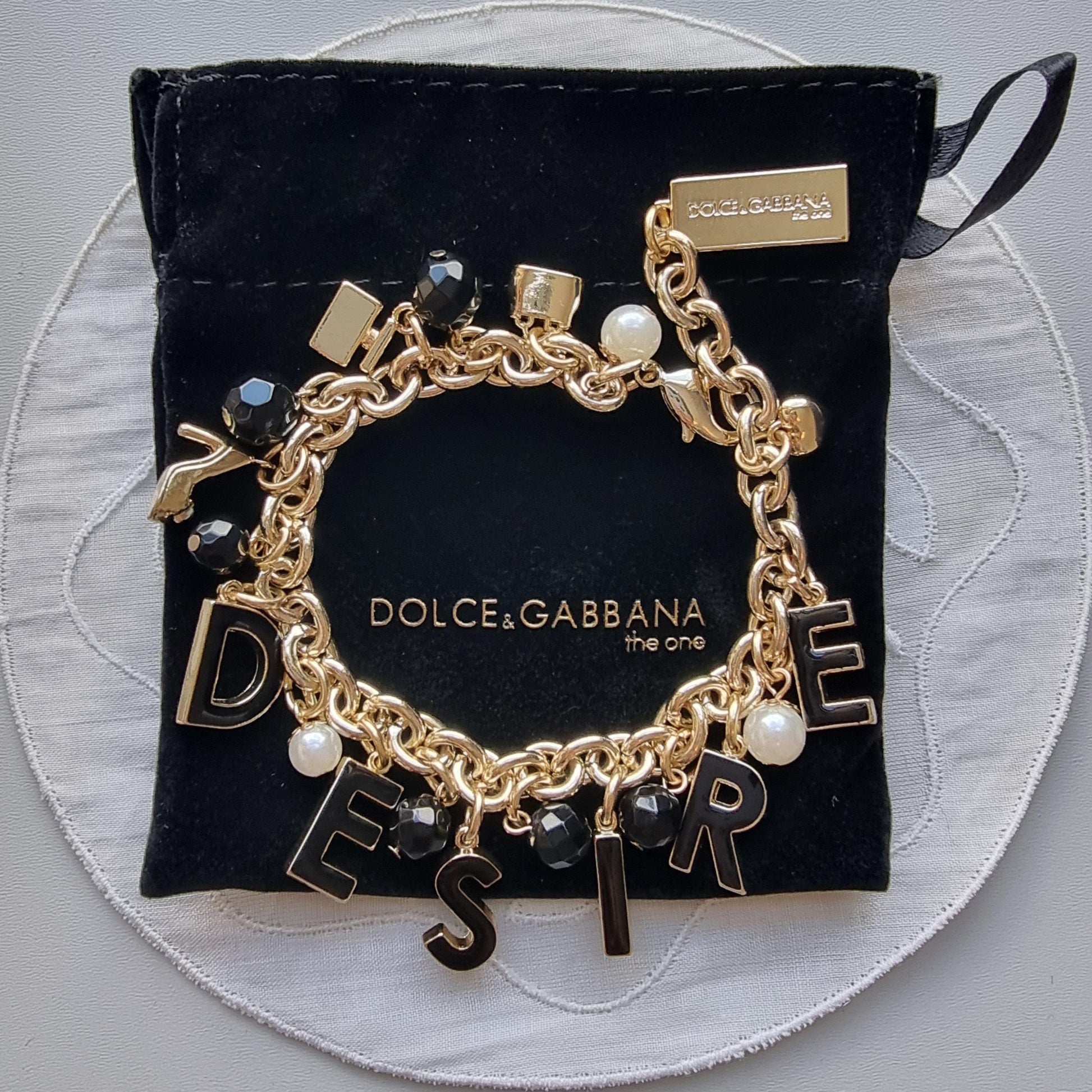 Bracelet - Dolce and Gabanna Desire Black Enamel and Pearls Charm Bracelet