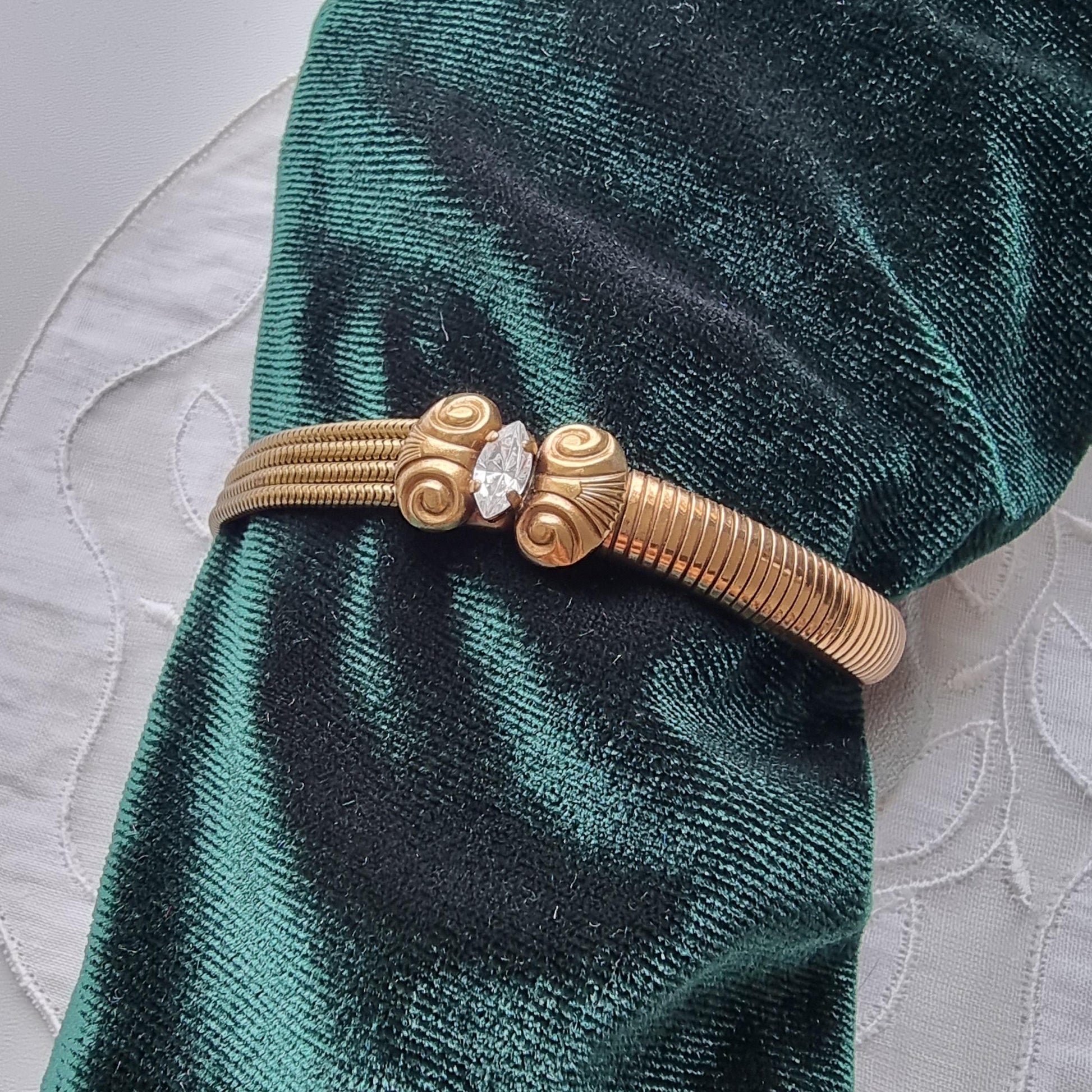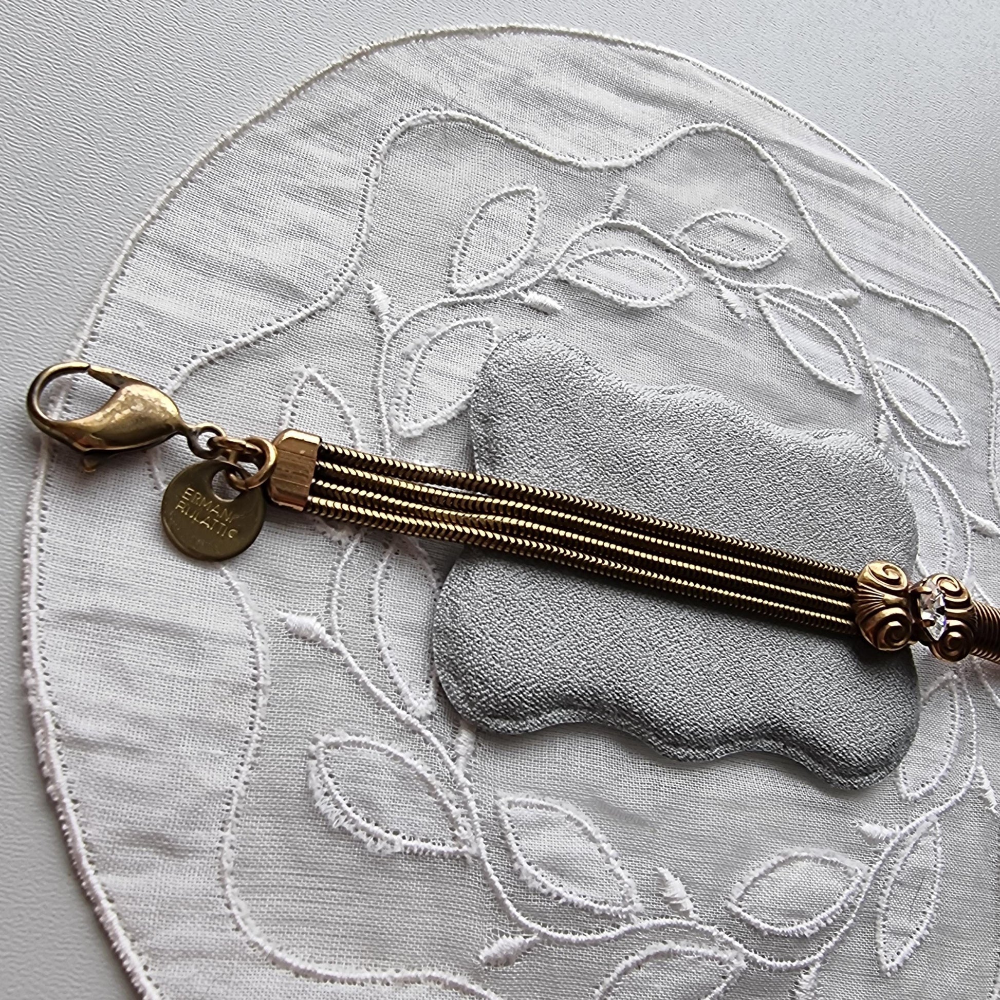 A cool bow snake chain bracelet by Ermani Bulatti with a clear crystal on brass