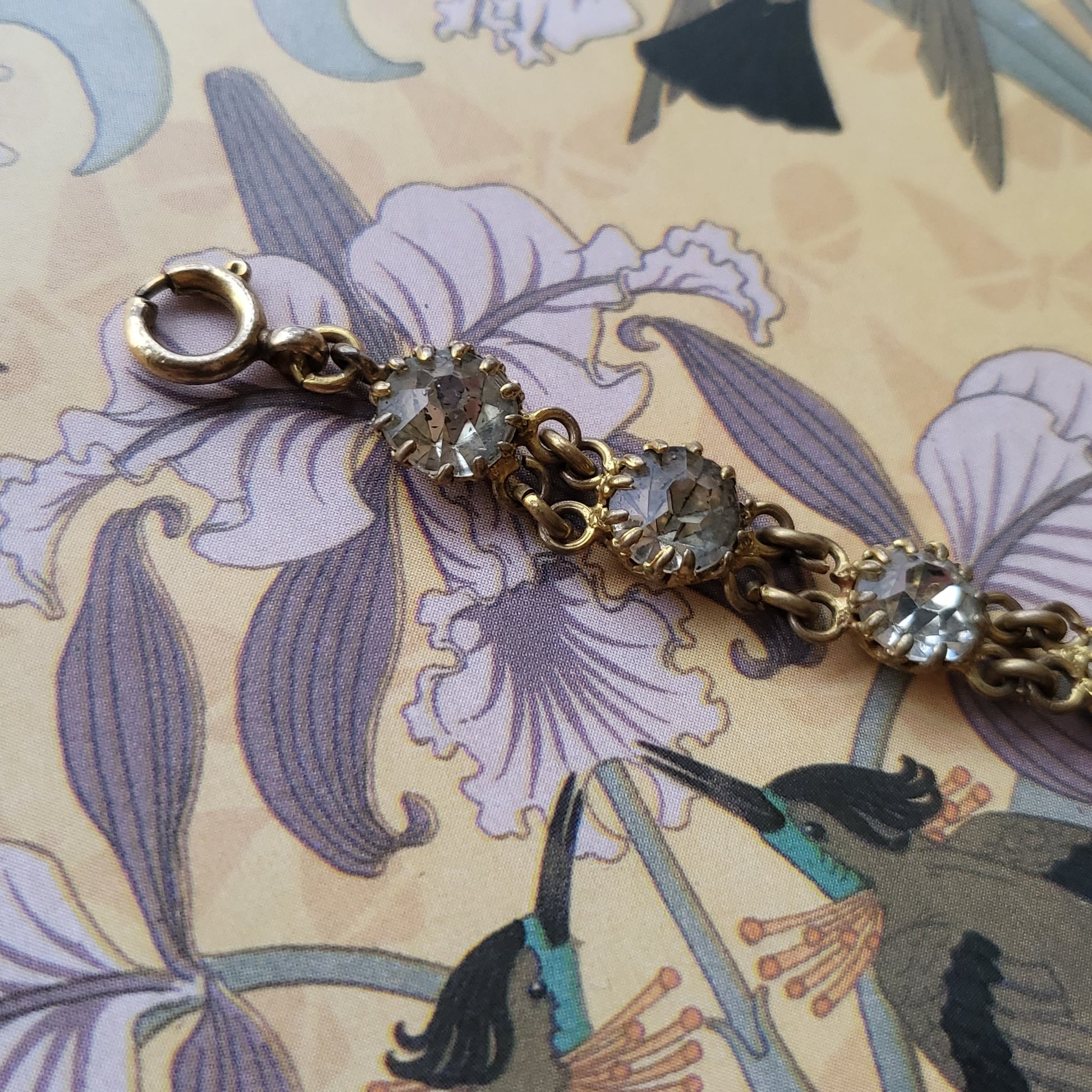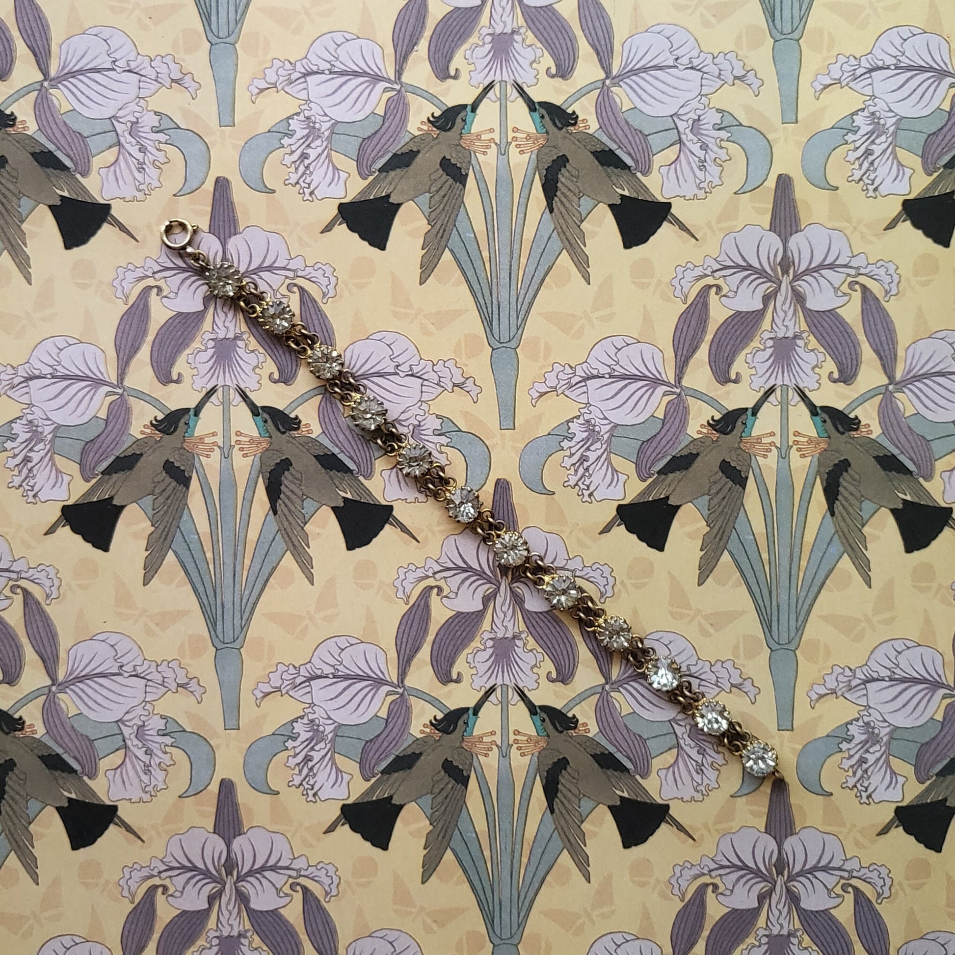 A vintage tennis bracelet with paste stone claw set in brass jewellery alloy metal