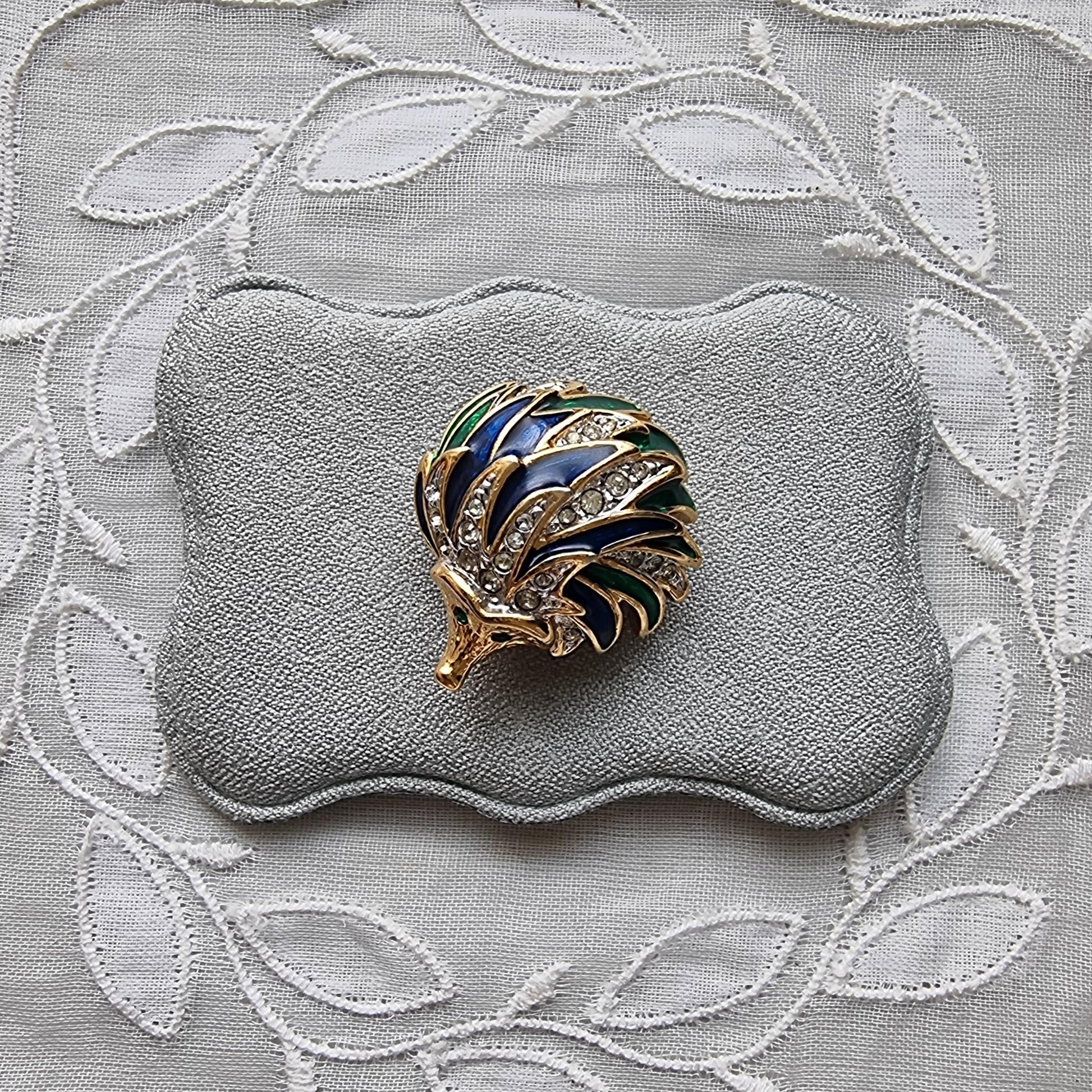 Brooch - Attwood and Sawyer Green and Blue Enamel Hedgehog Brooch