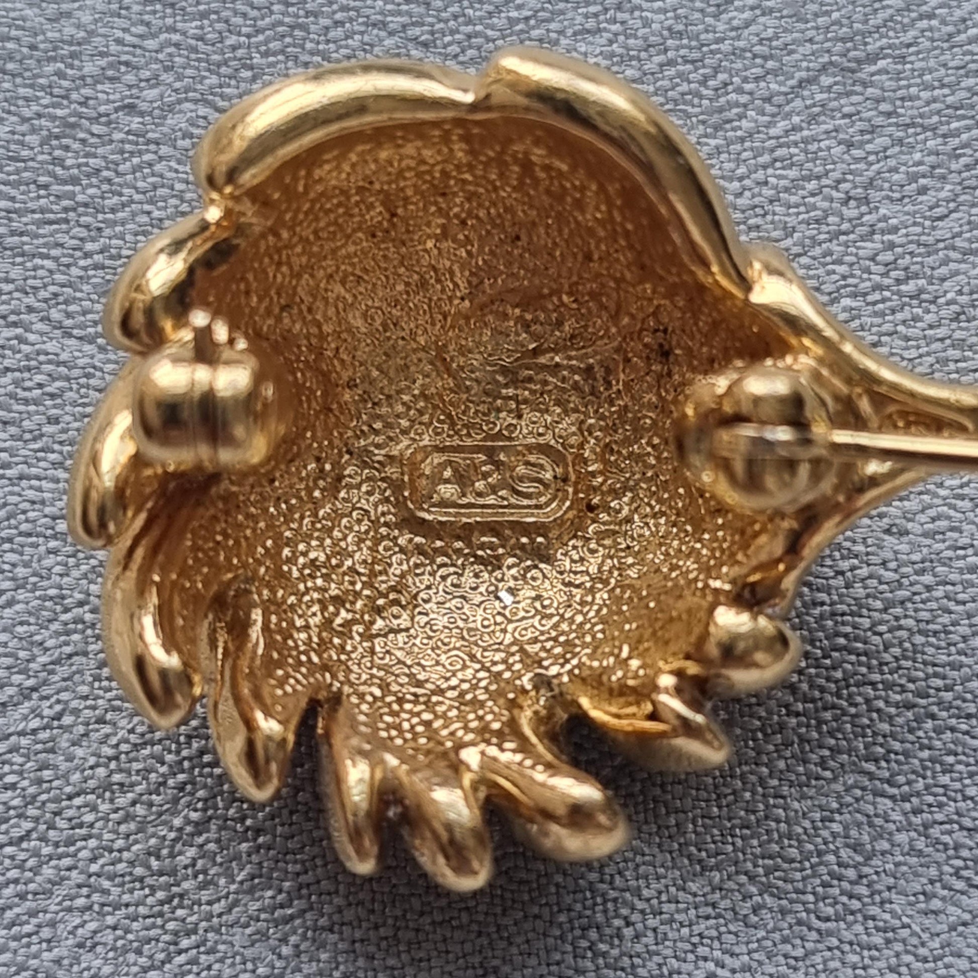 A sweet small sized hedgehog brooch by Attwood and Sawyer with crystal encrusted head and blue and green enamel body on 22ct gold plated metal