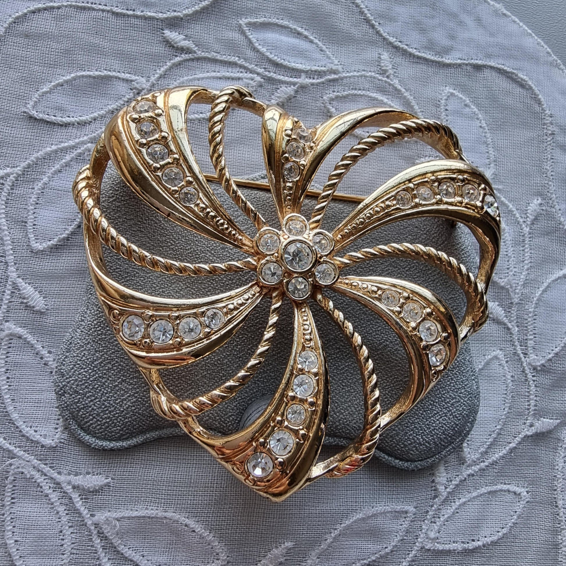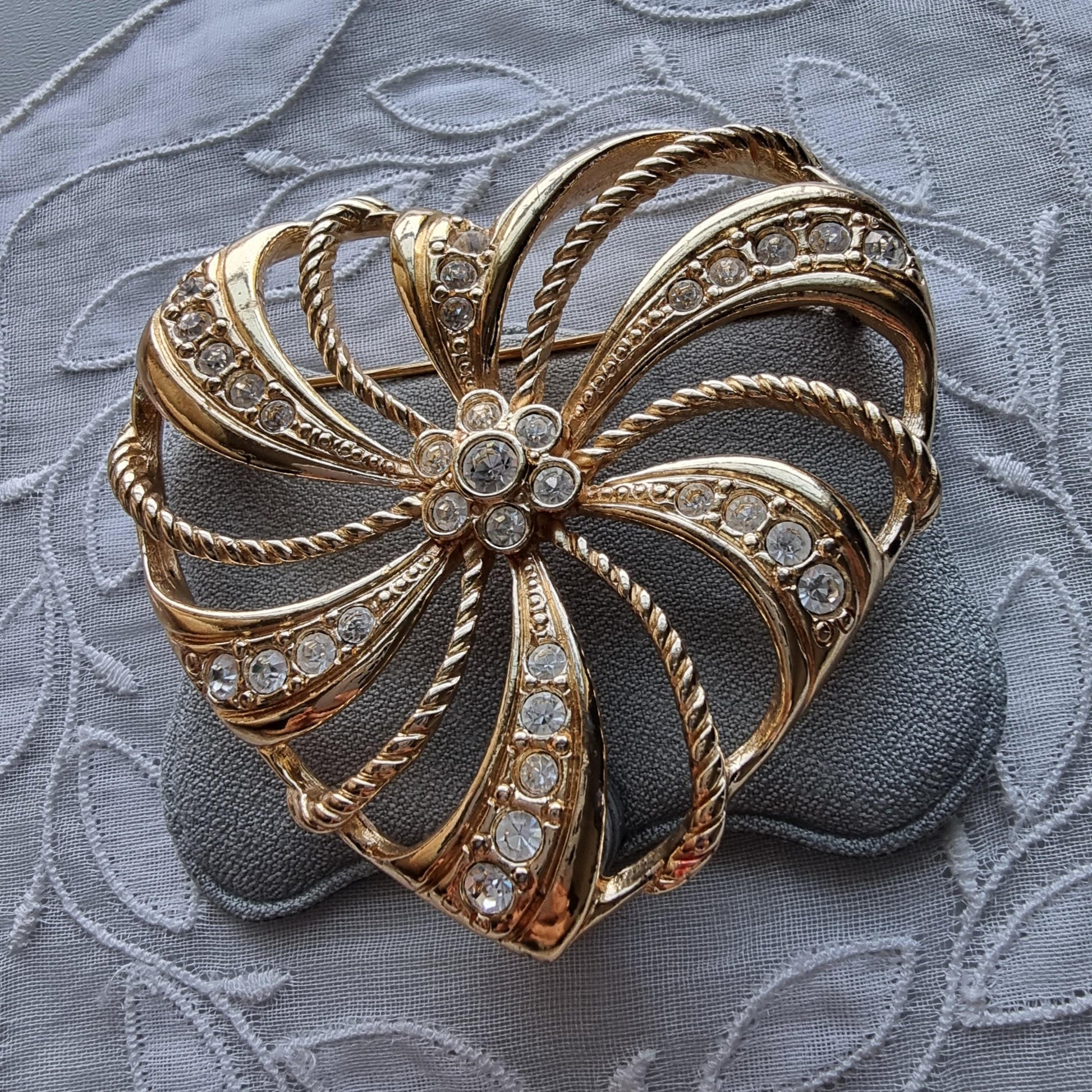 A lovely statement heart brooch by Avon with small crystals set on gold plated metal