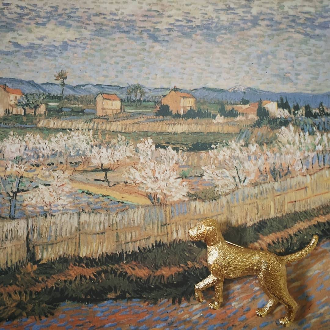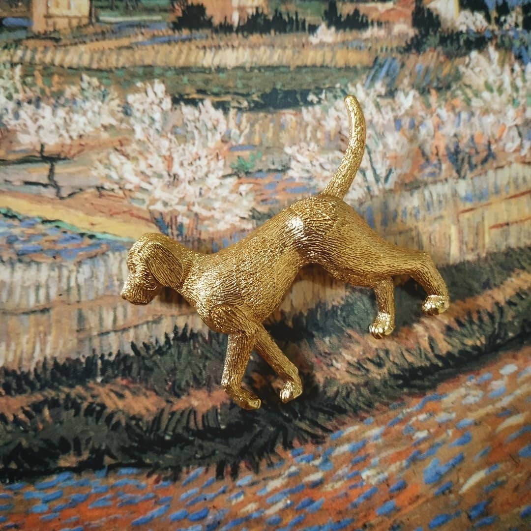 A rare golden foxhound brooch by Burberry in gold plated metal