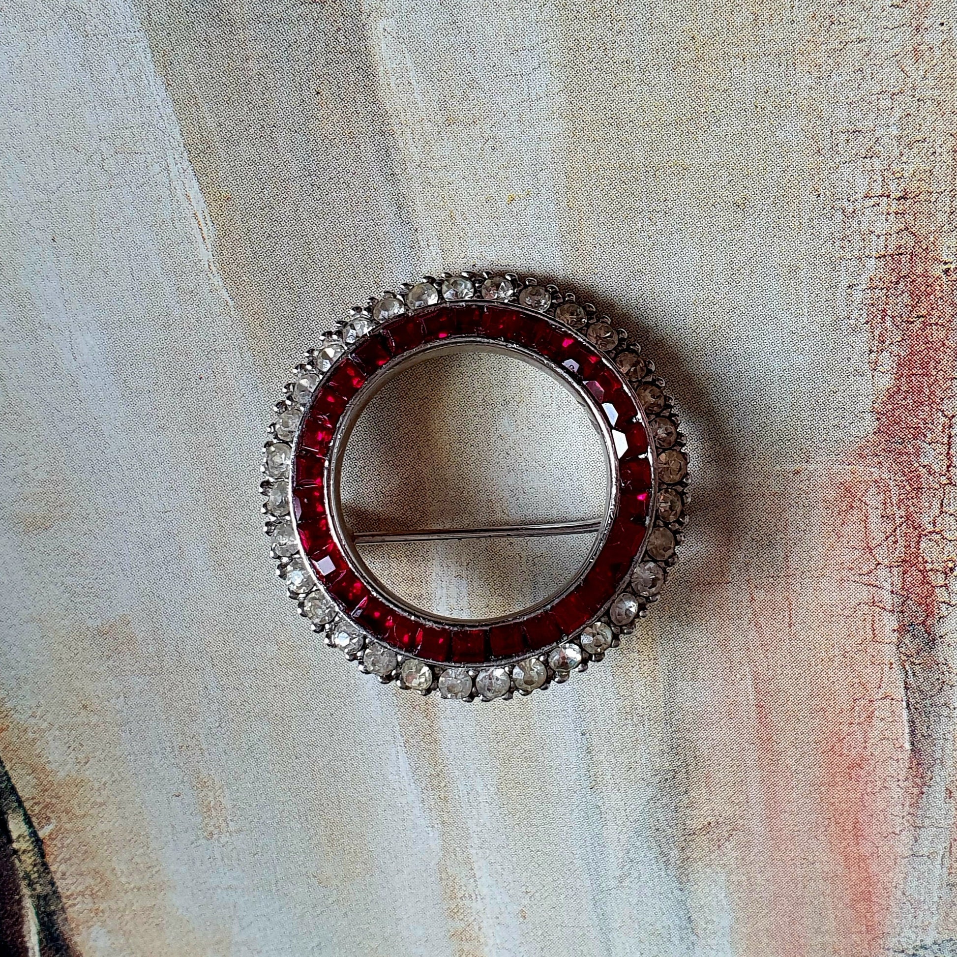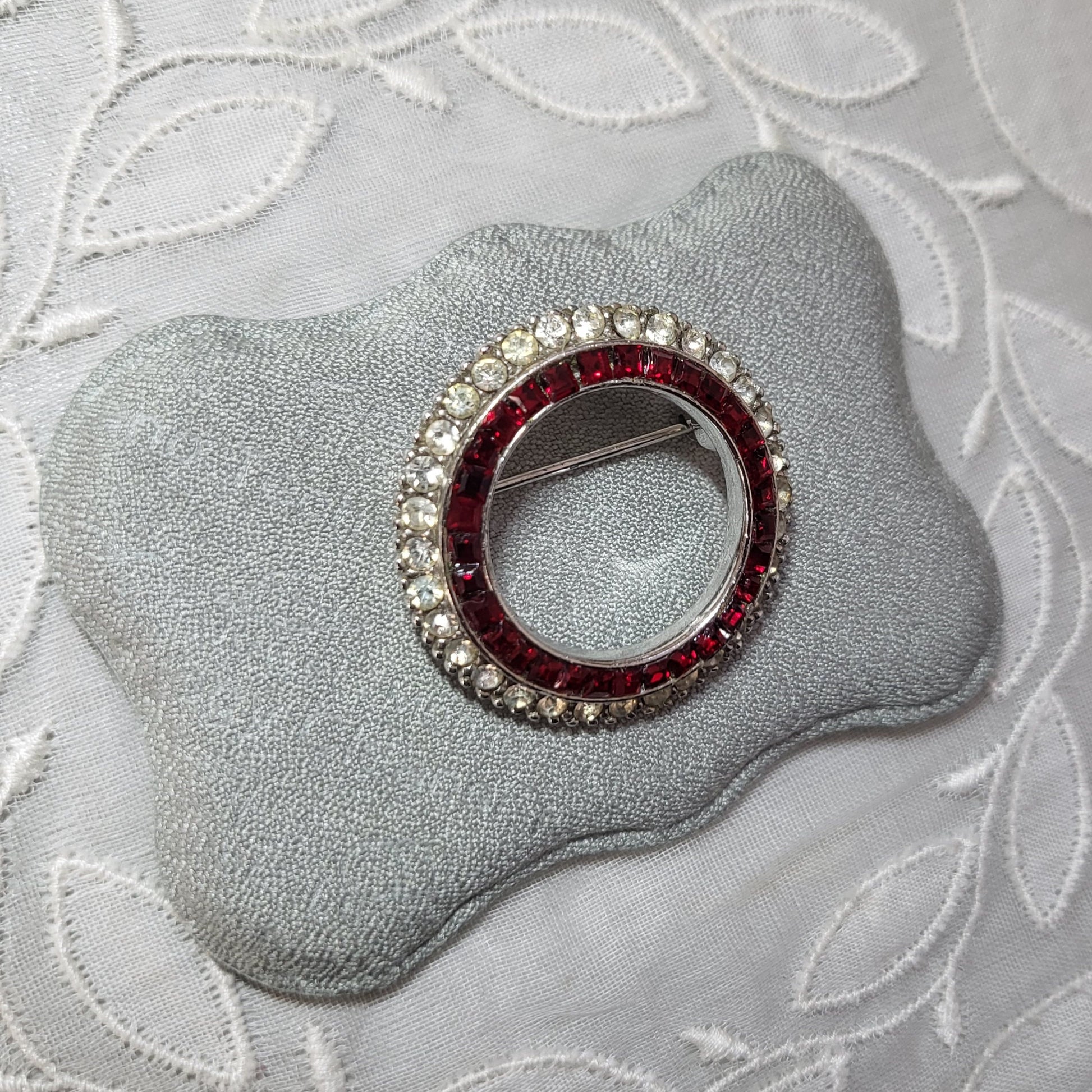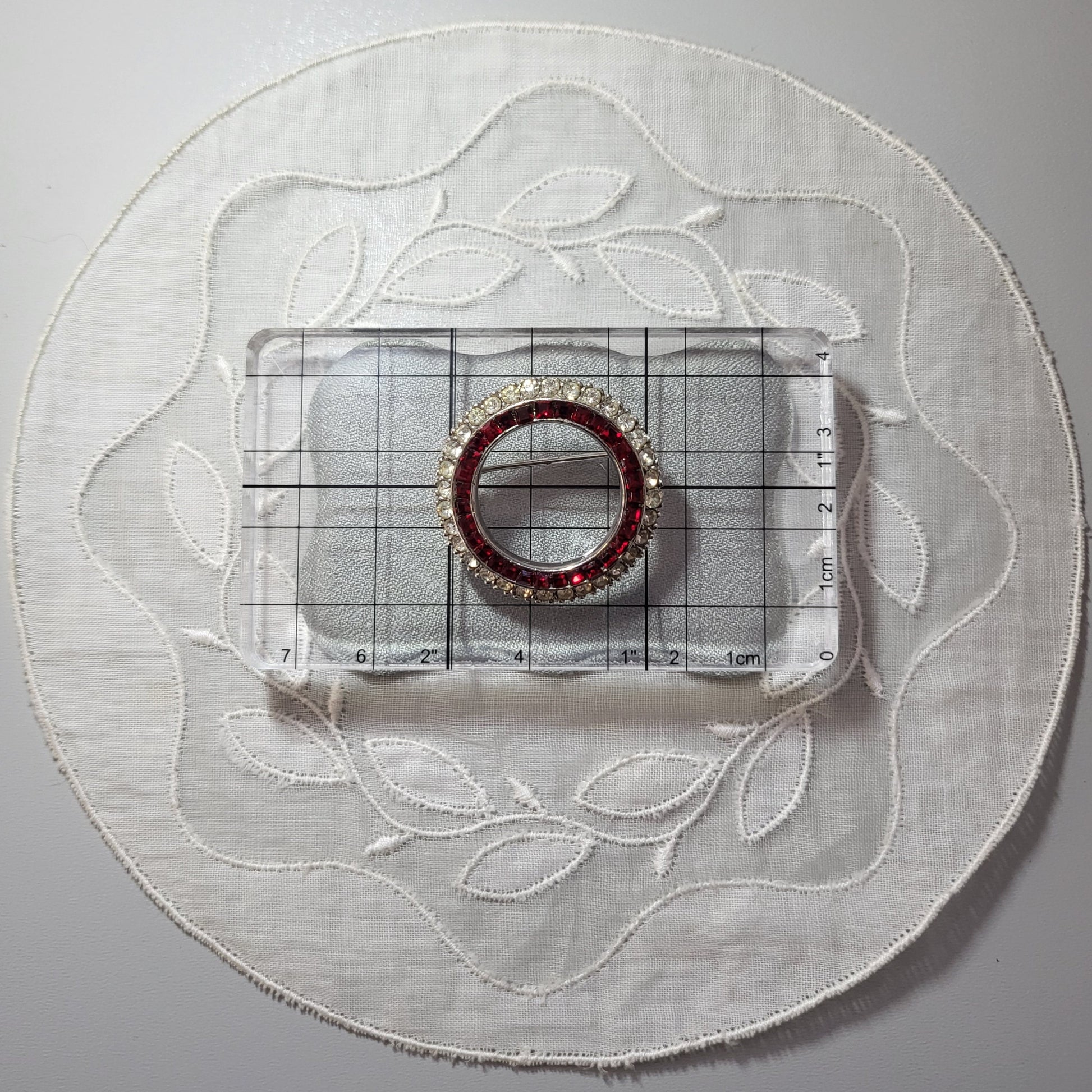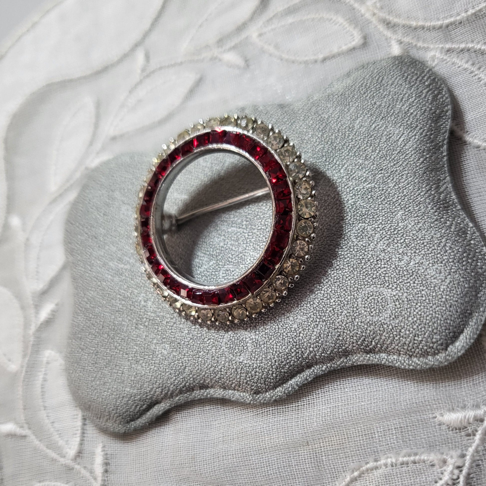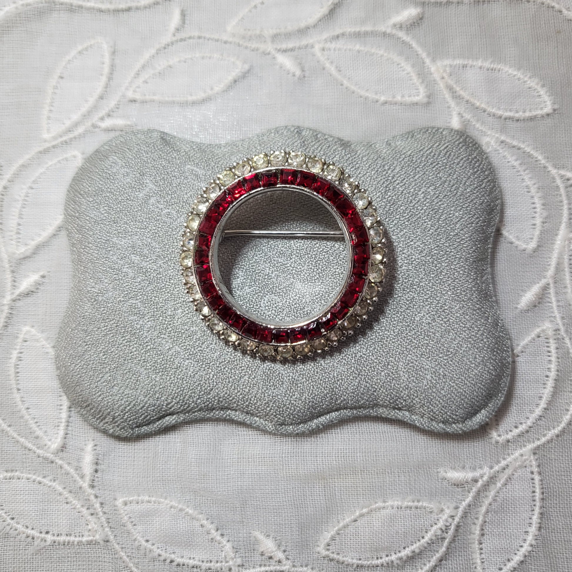 Brooch - Ciner Red and Clear Crystal Wreath Brooch