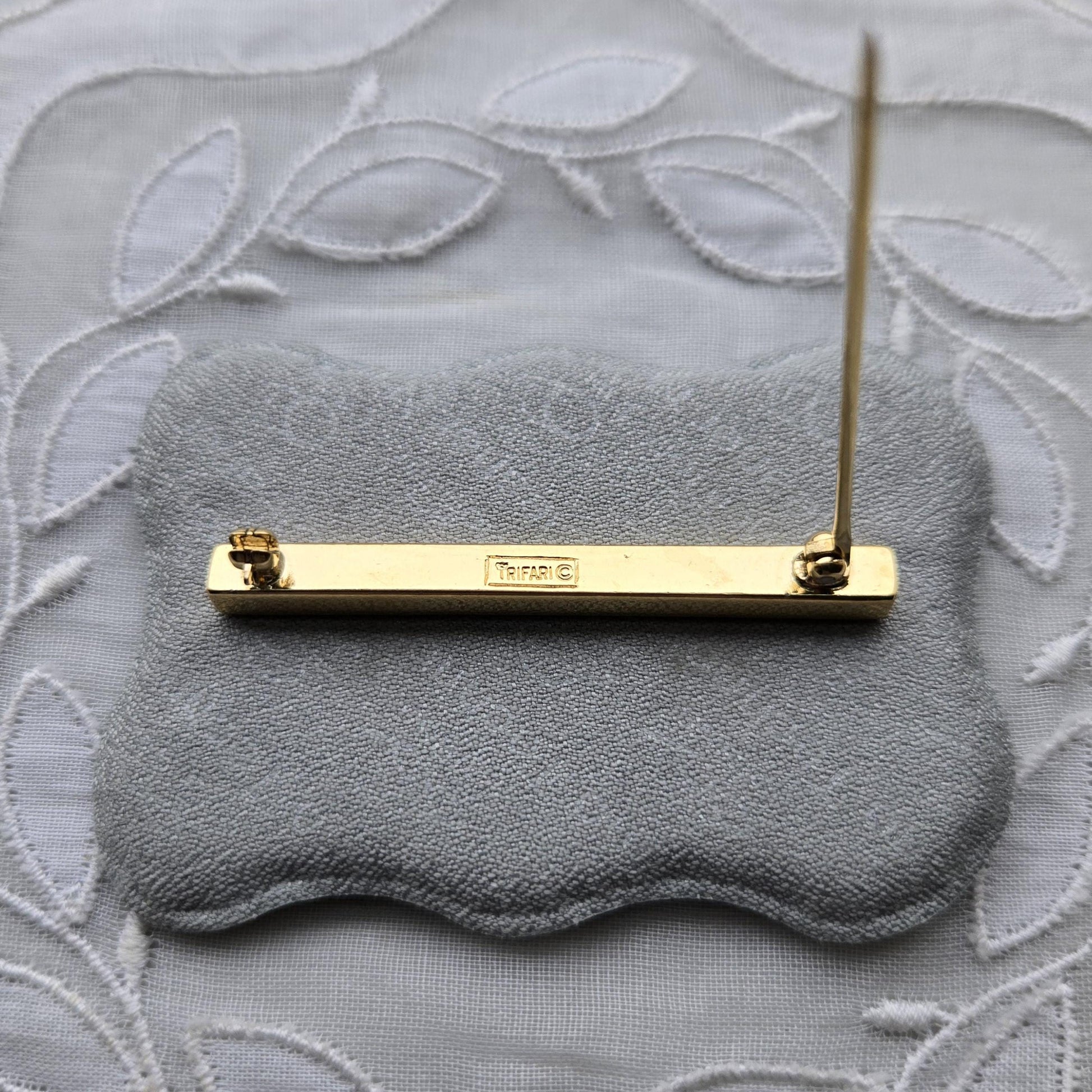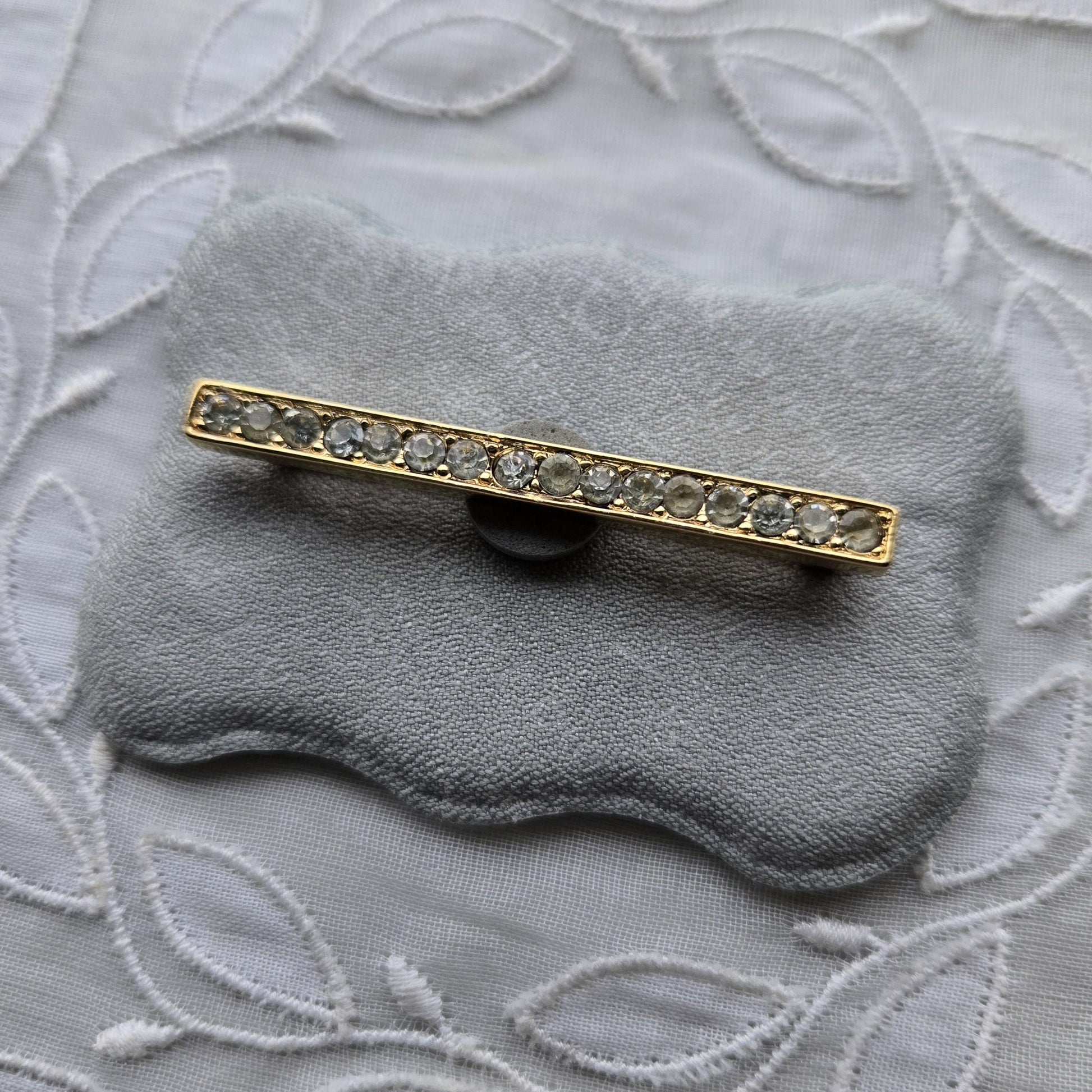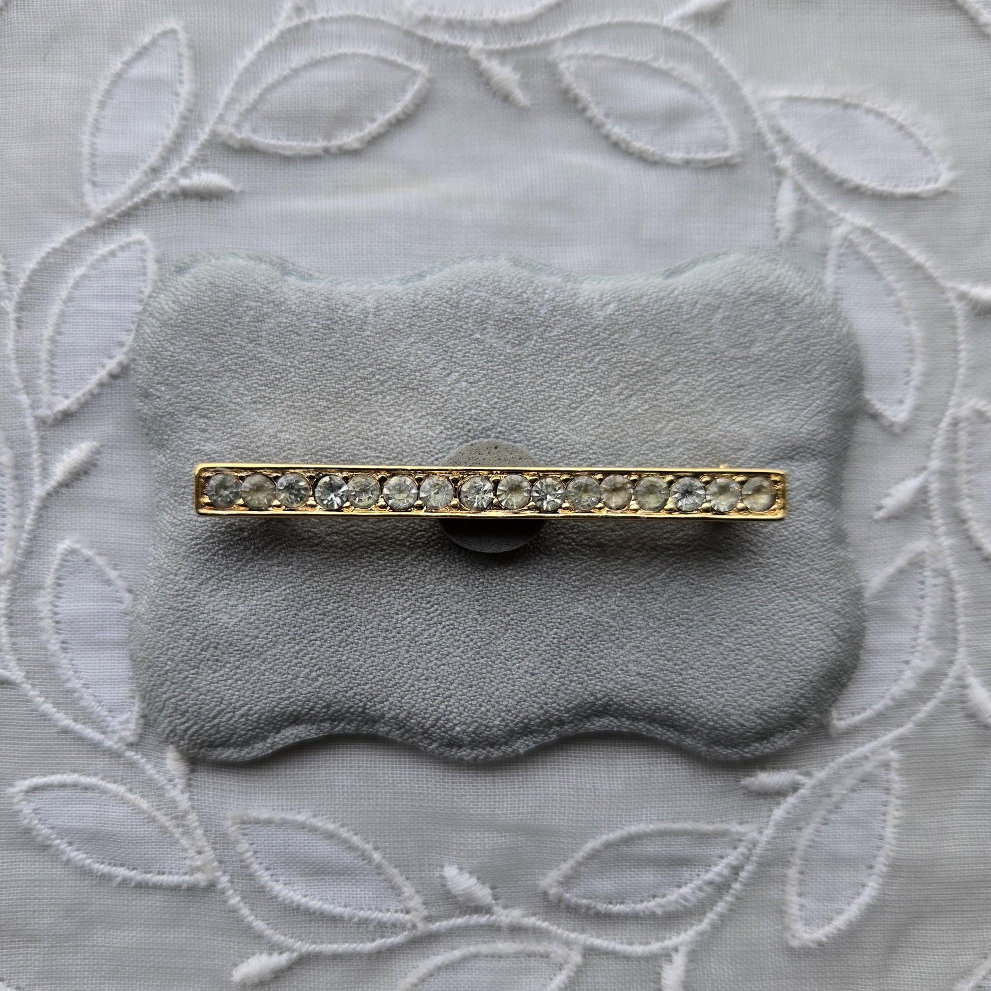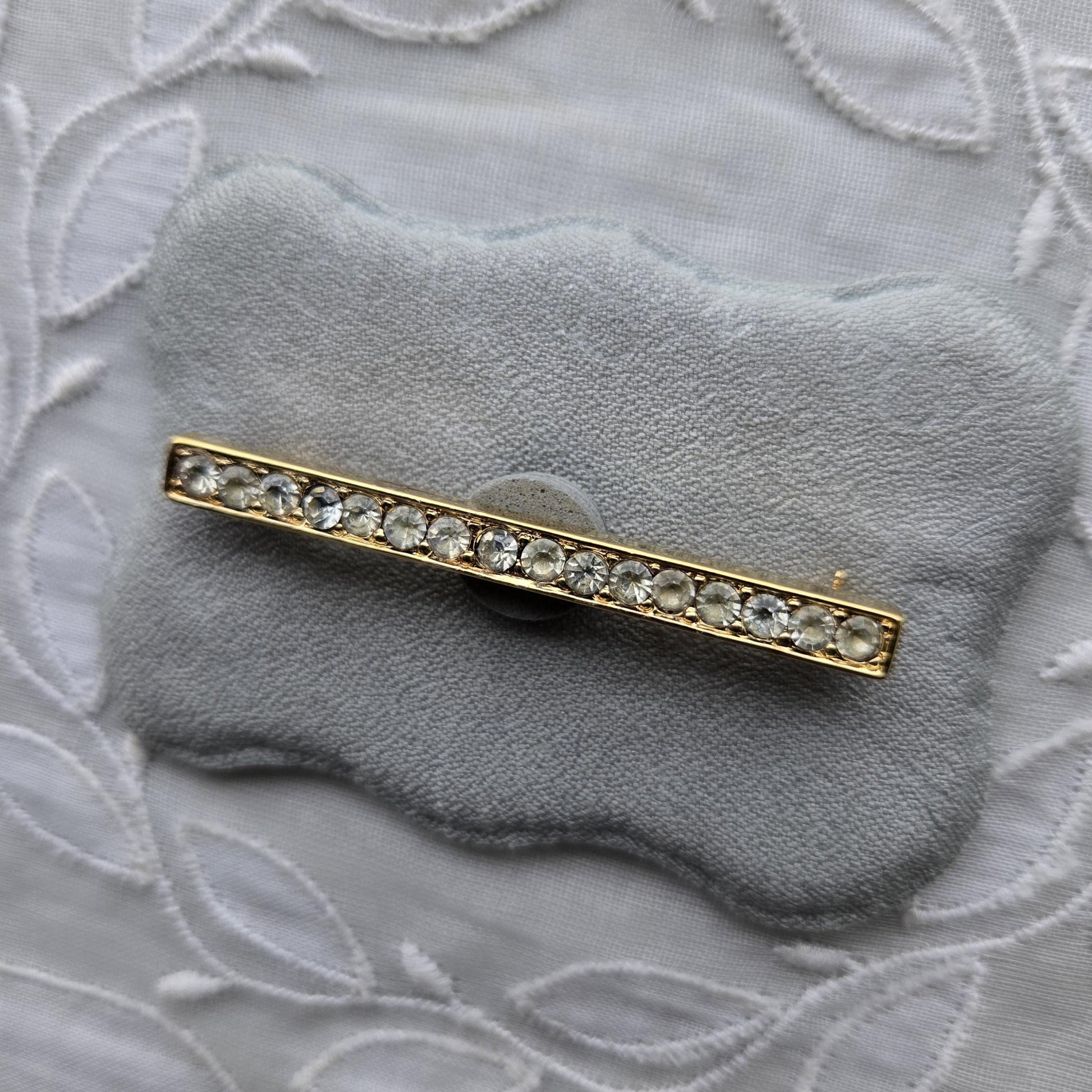A simple and timeless brooch by Crown Trifari with small clear crystals on gold plated metal
