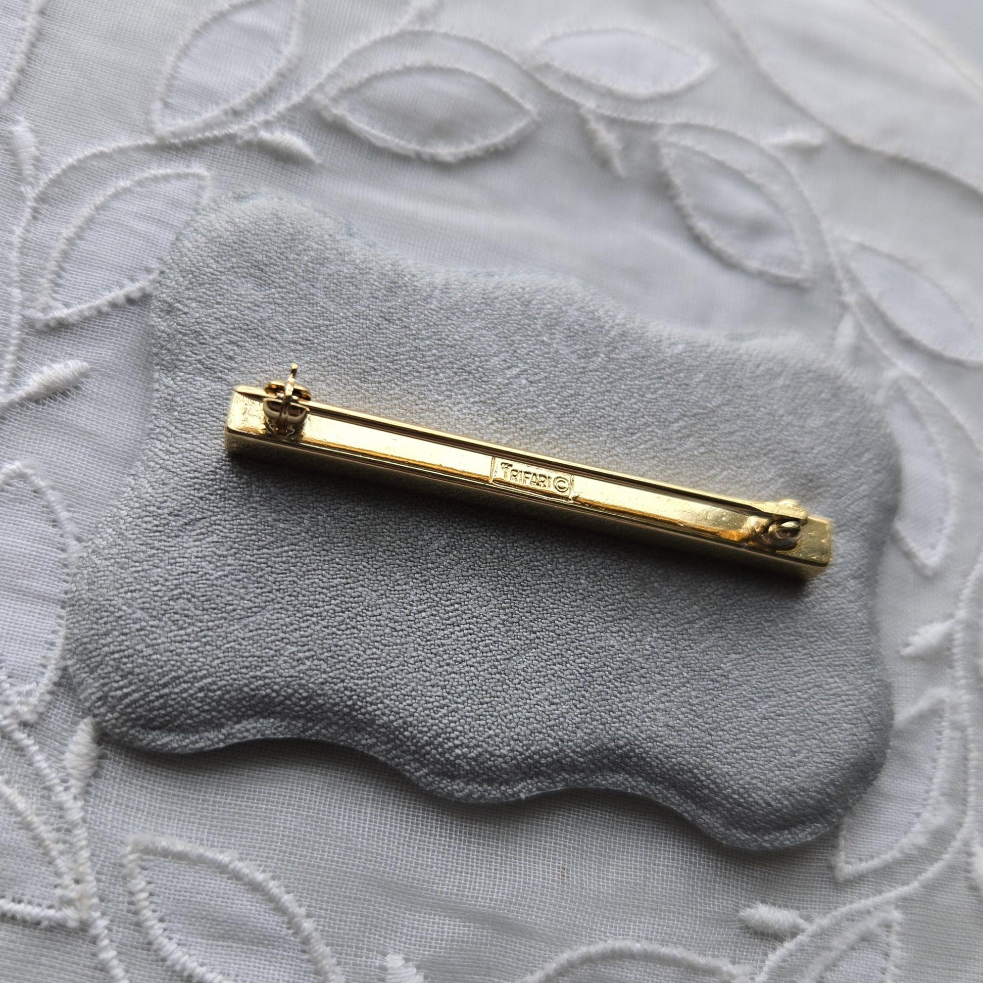 Brooch - Crown Trifari Gold Crystal Bar Brooch