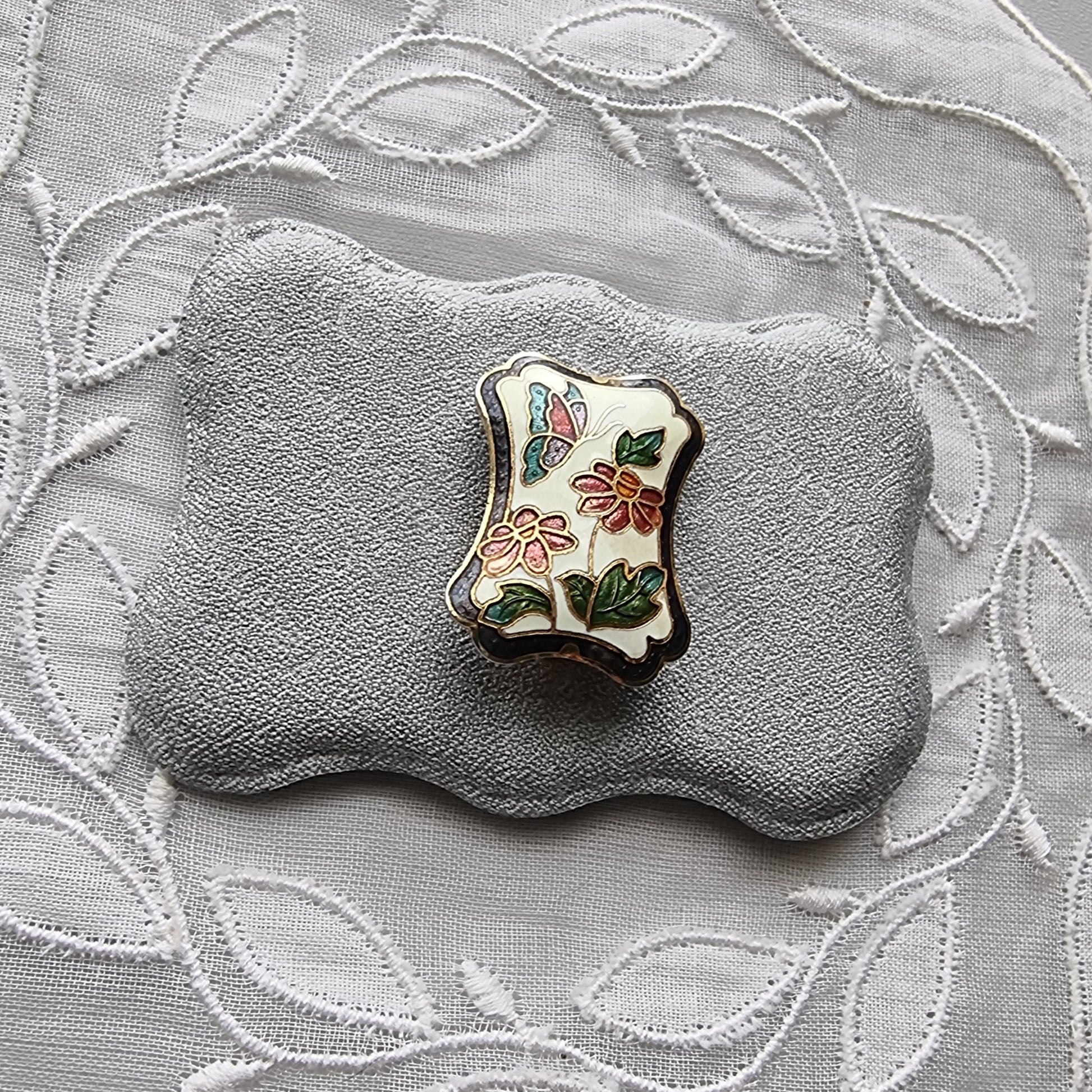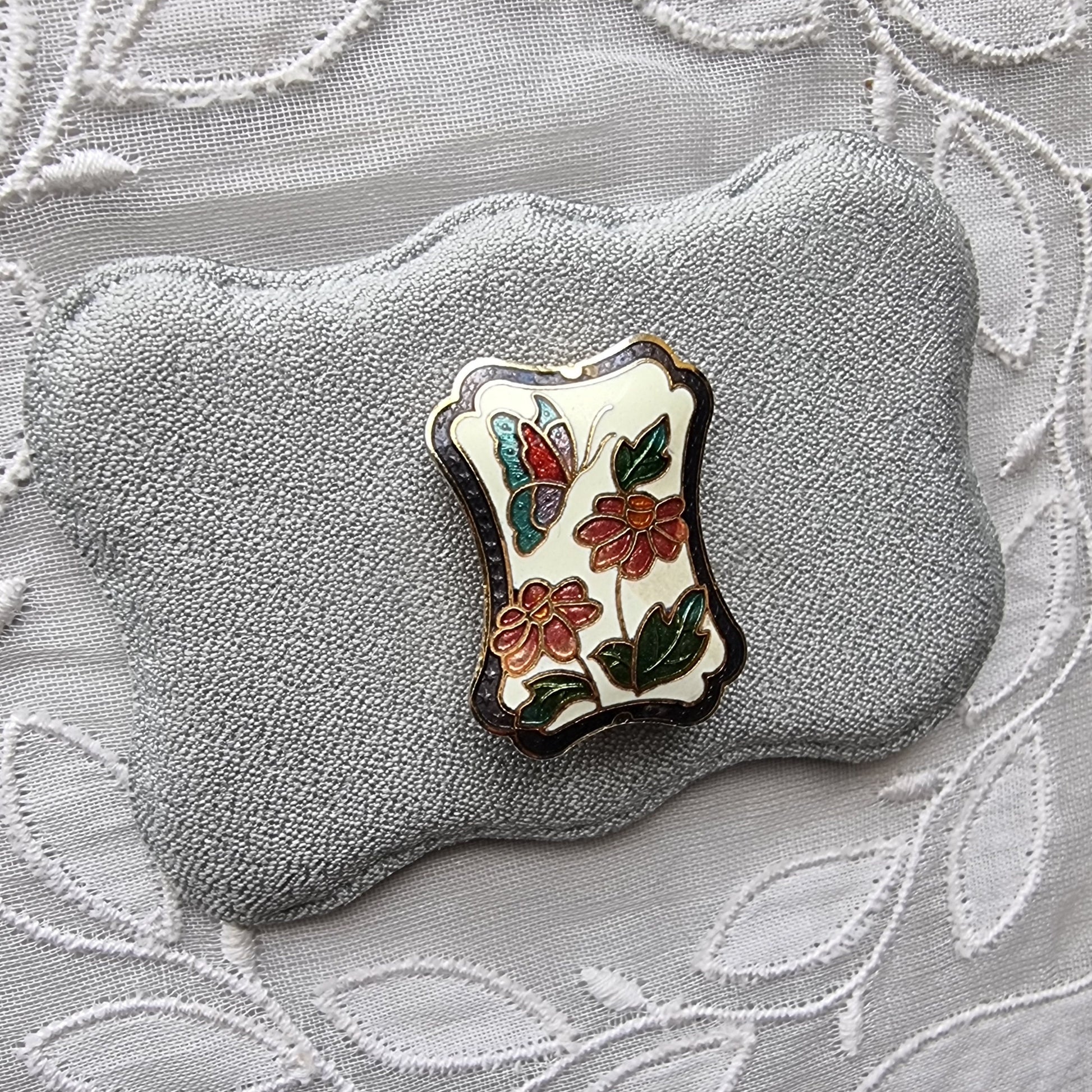 A beautiful flowers and butteffly brooch in multicolour enamel on gold plated metal