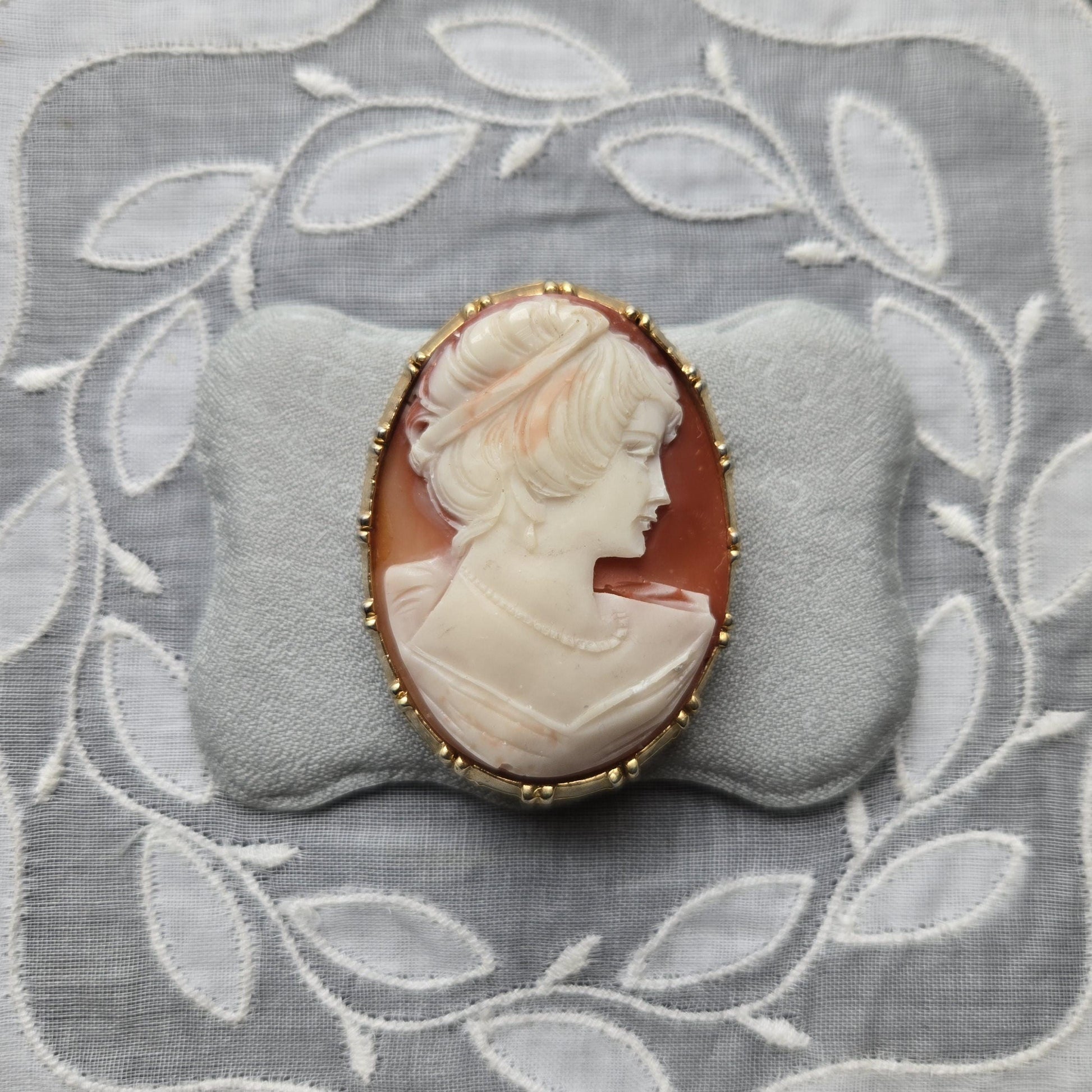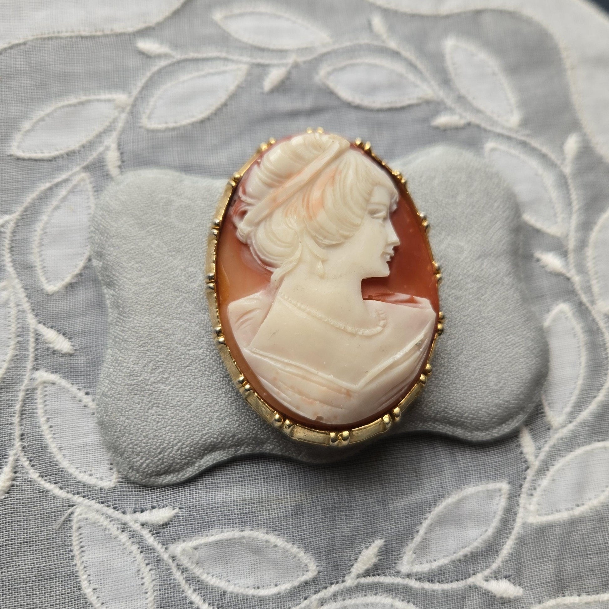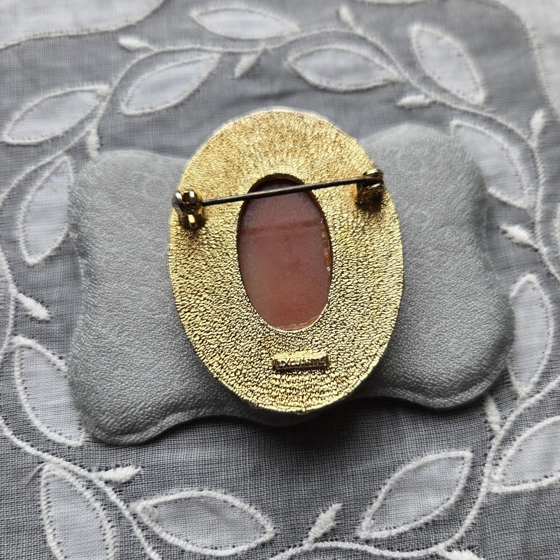 A beautiful cameo brooch by Exquisite with an acrylic cameo on gold plated metal