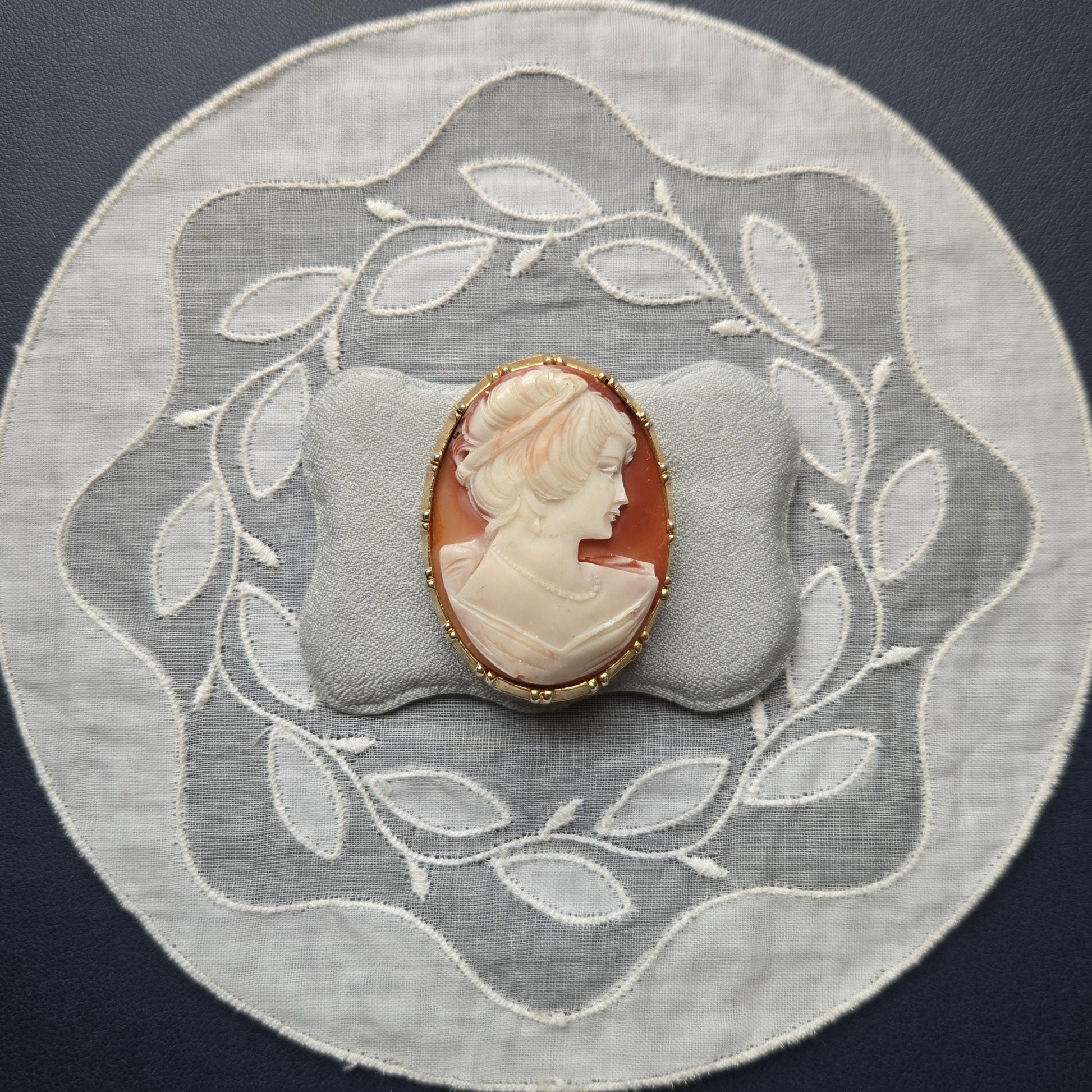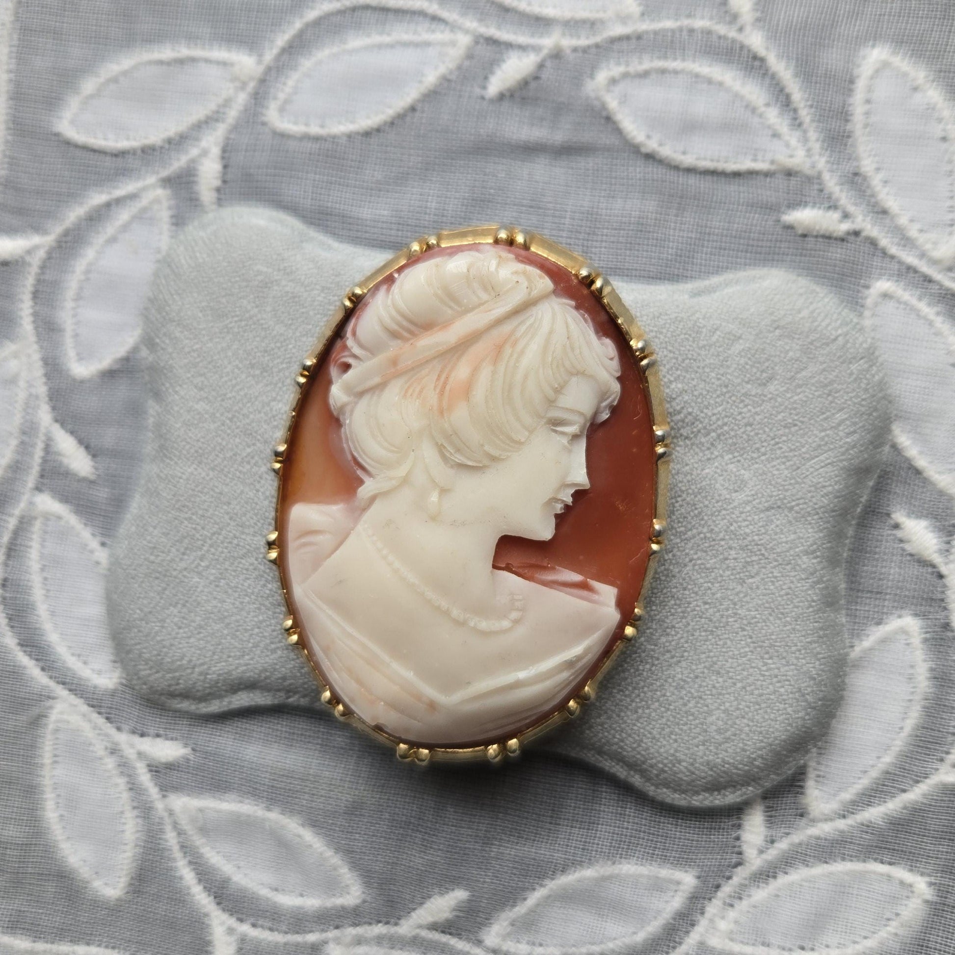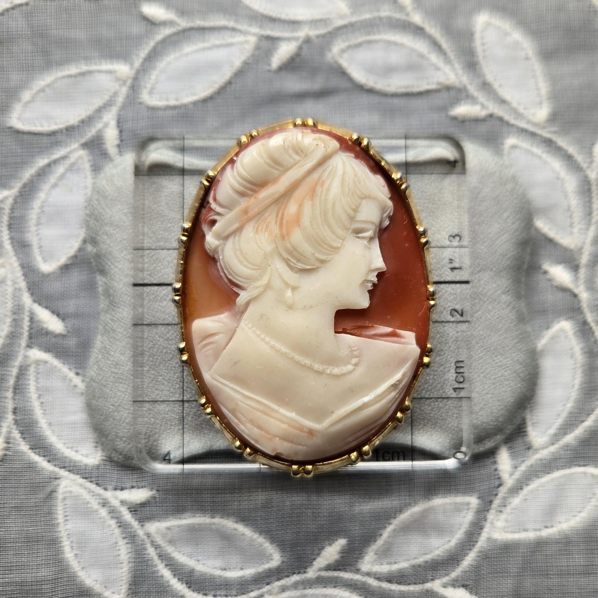A beautiful cameo brooch by Exquisite with an acrylic cameo on gold plated metal