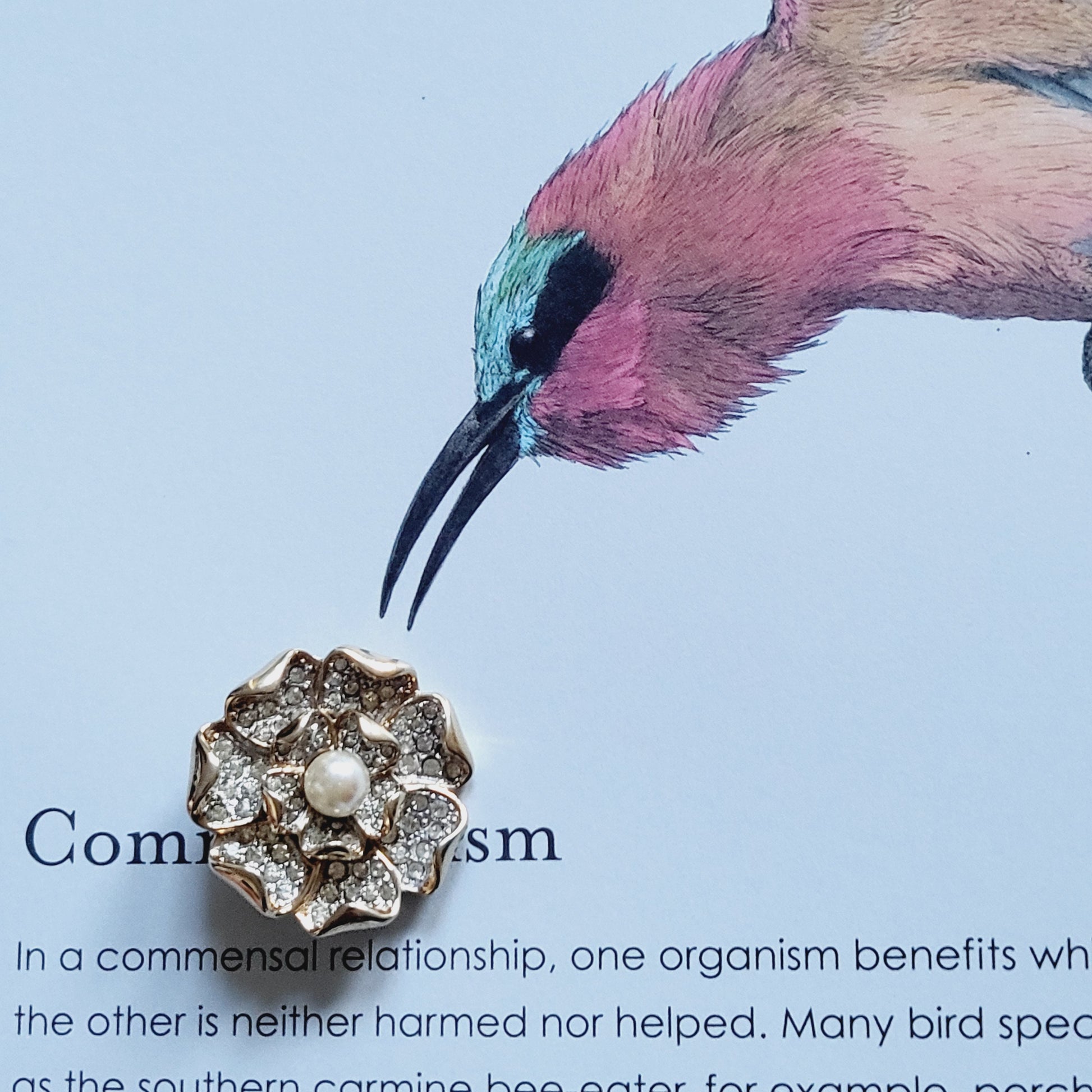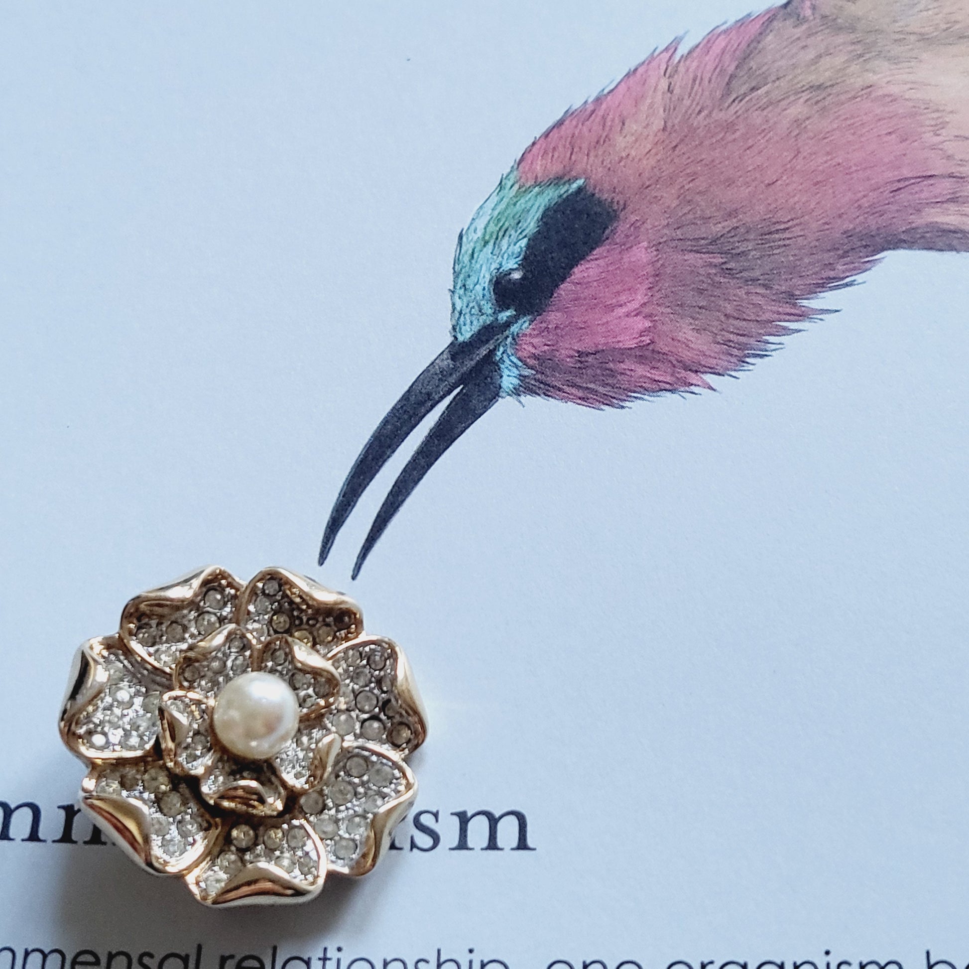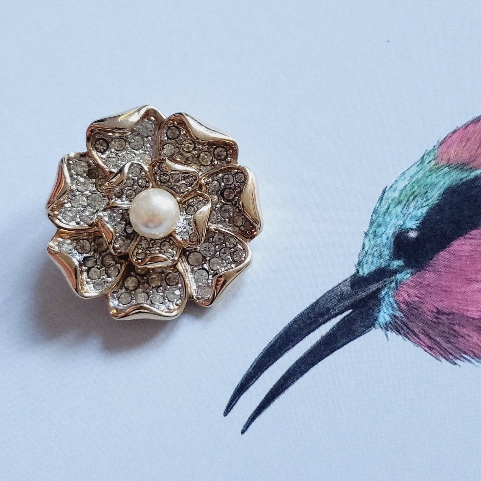 A beautiful rosette brooch with faux pearl and crystals pave set on rhodium and gold plated metal