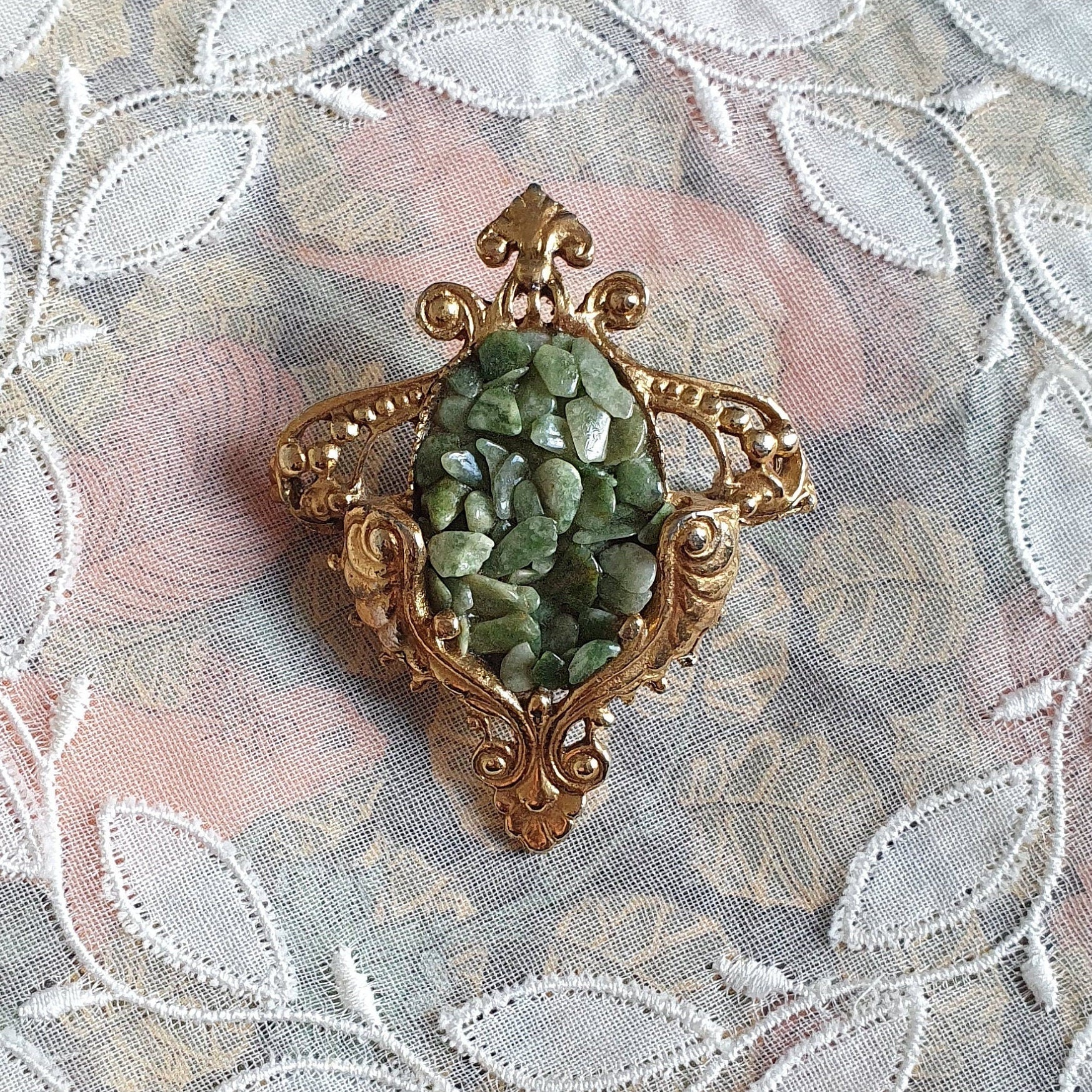 A beautiful art nouveau style brooch with green agate cluster on gold plated base metal