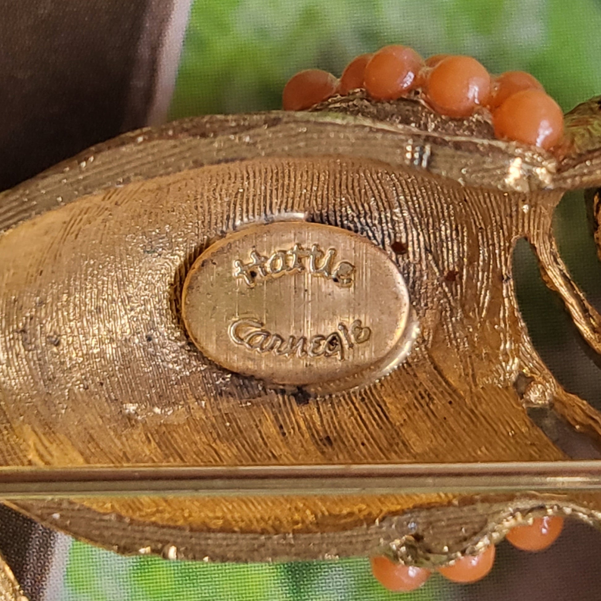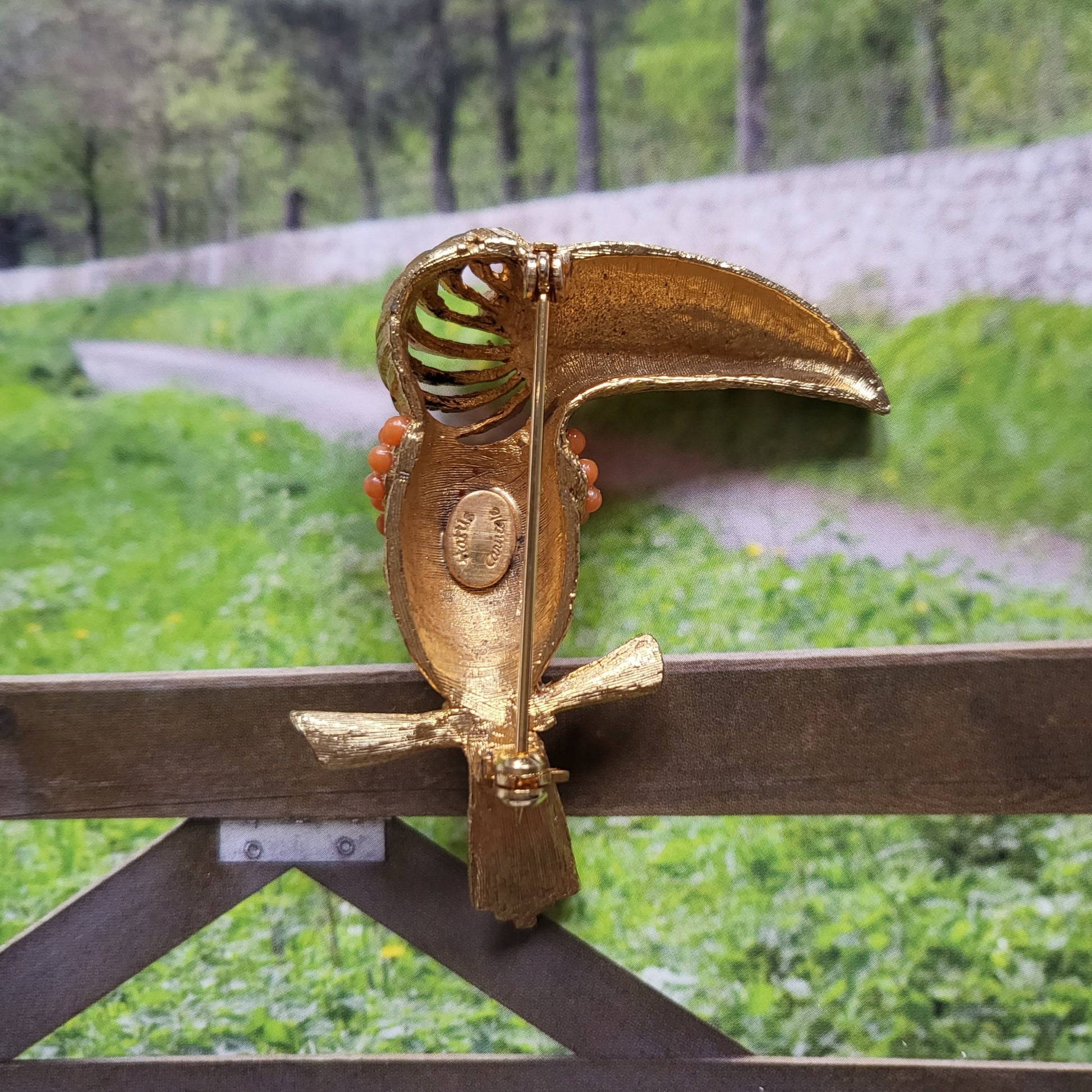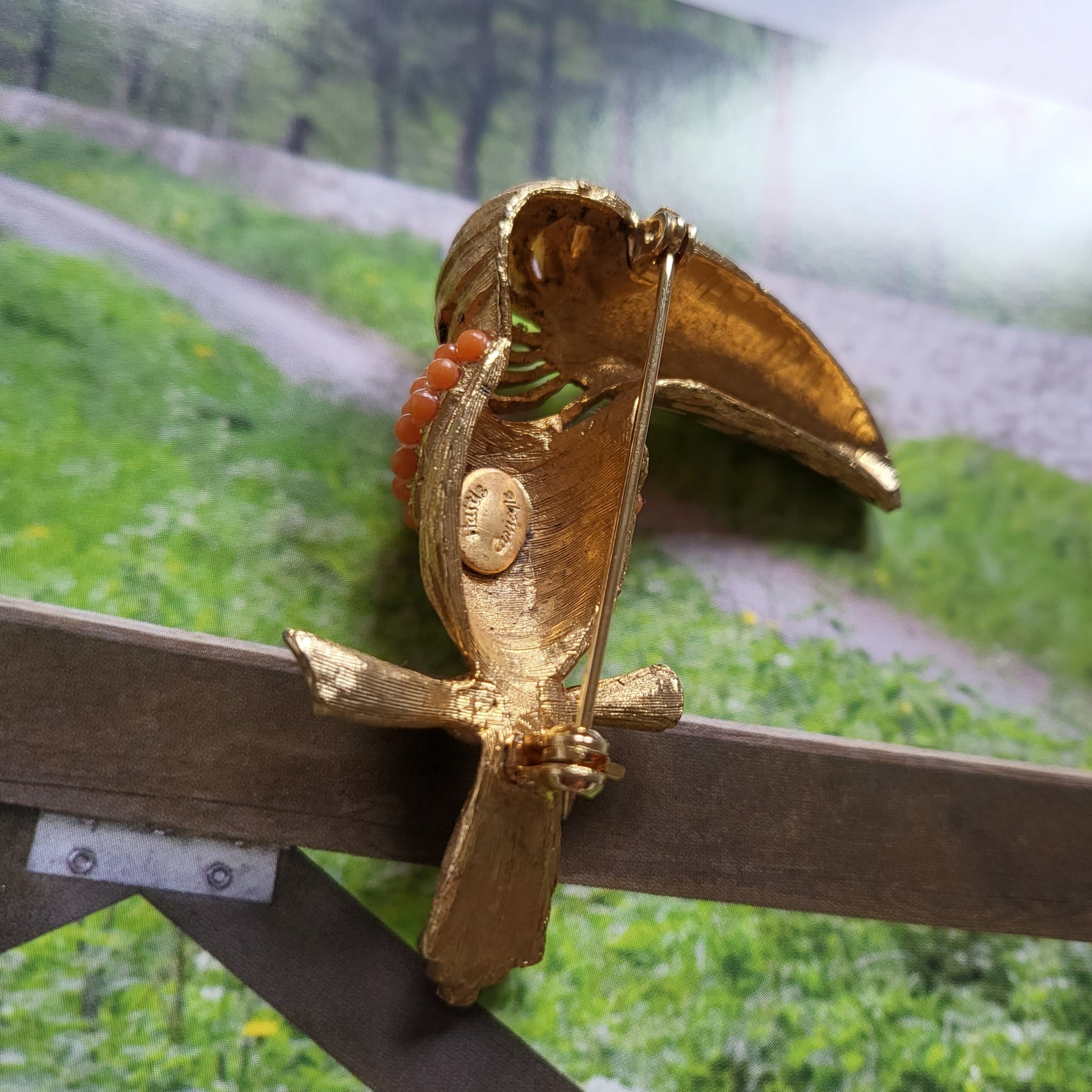 Brooch - Hattie Carnegie Coral Glass Beads Toucan Brooch