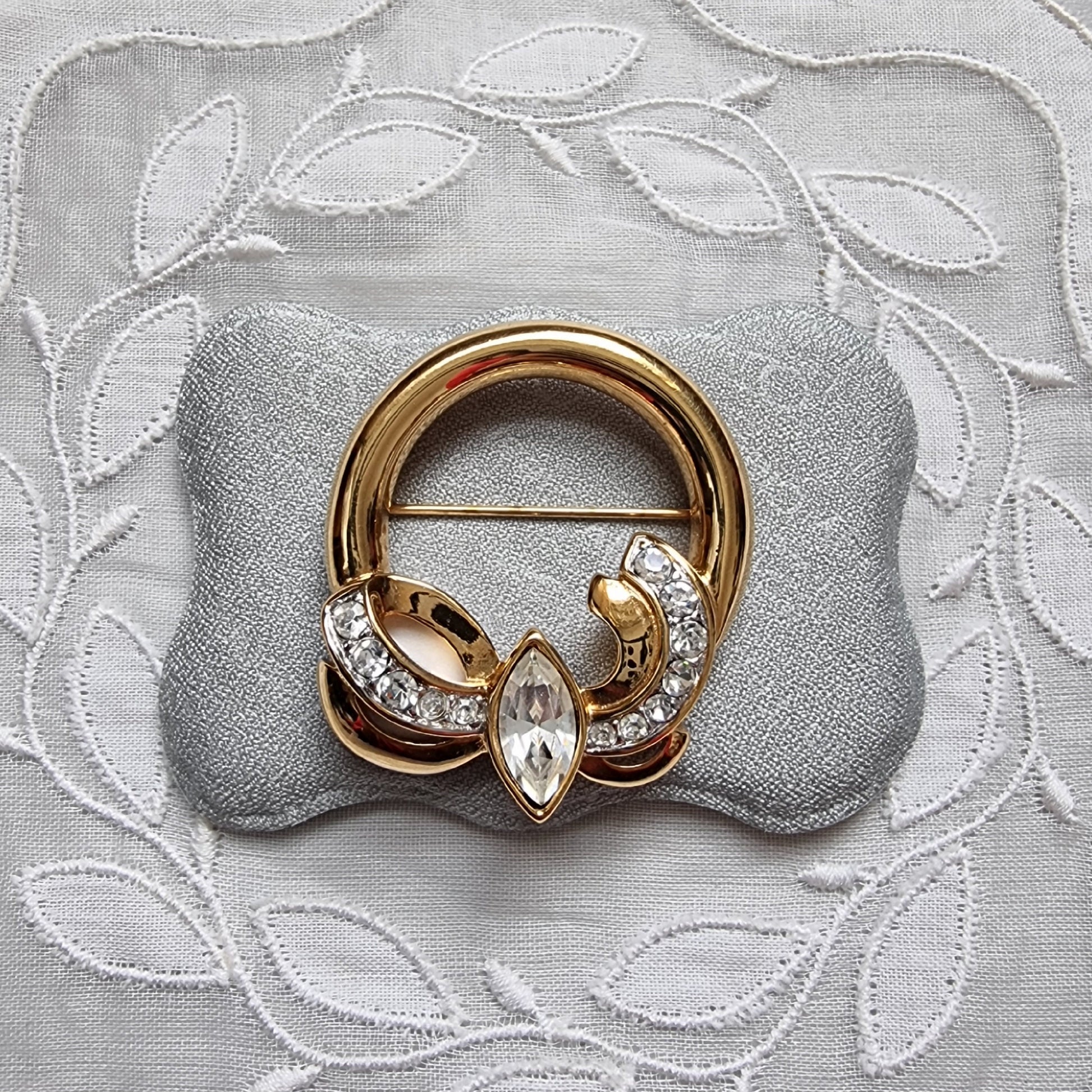 Brooch - Monet Gold and Crystal Wreath Brooch