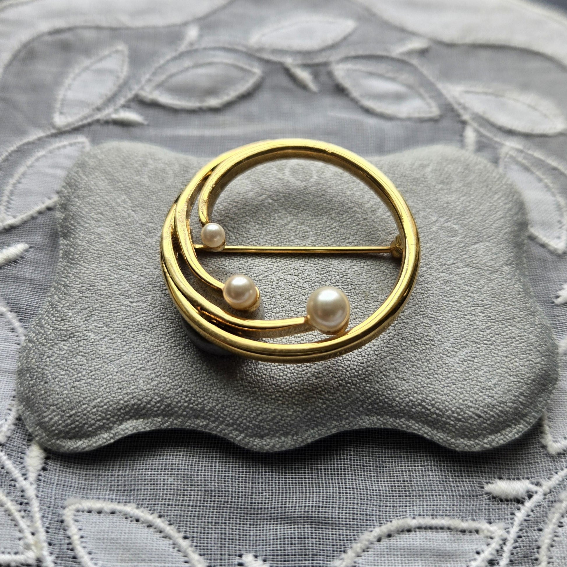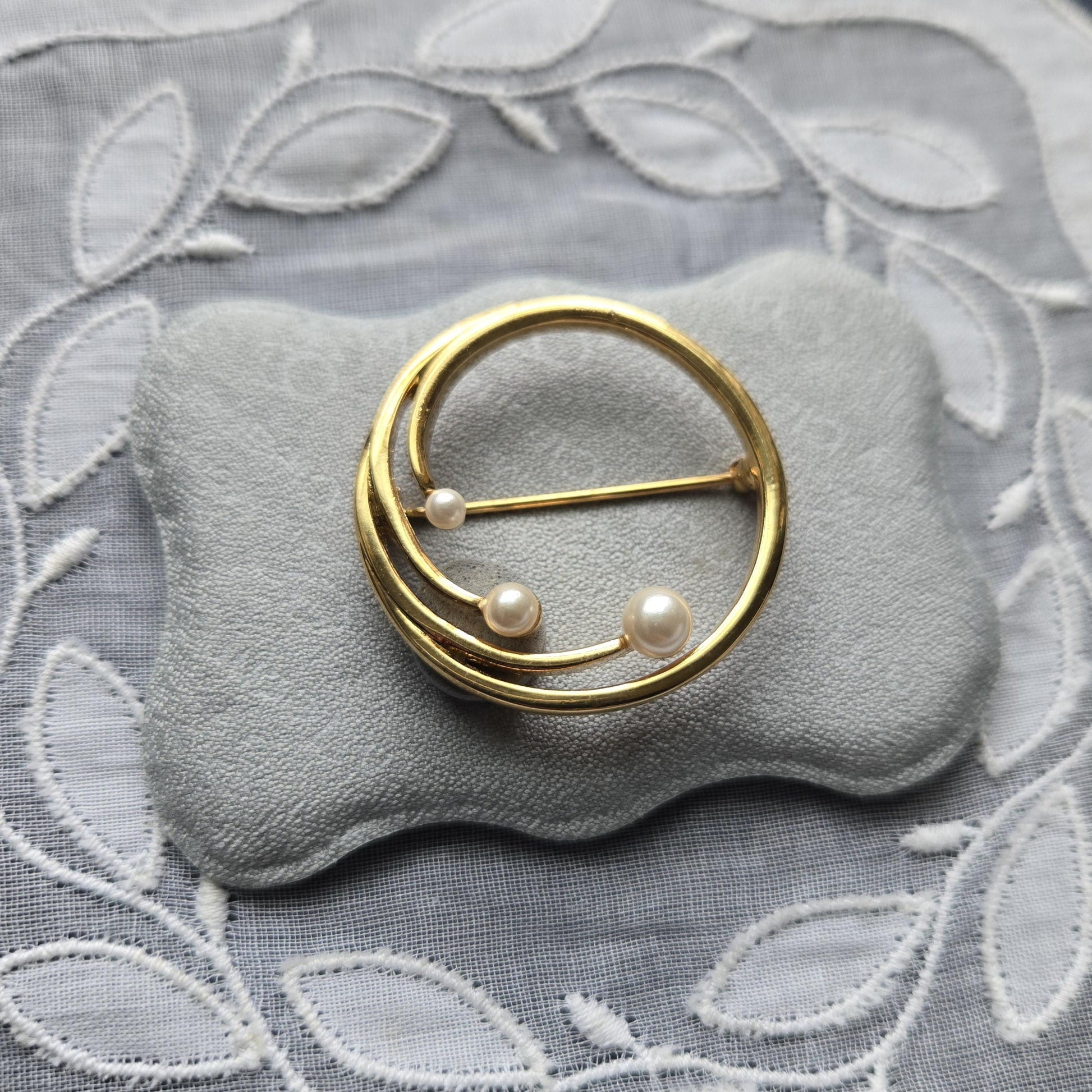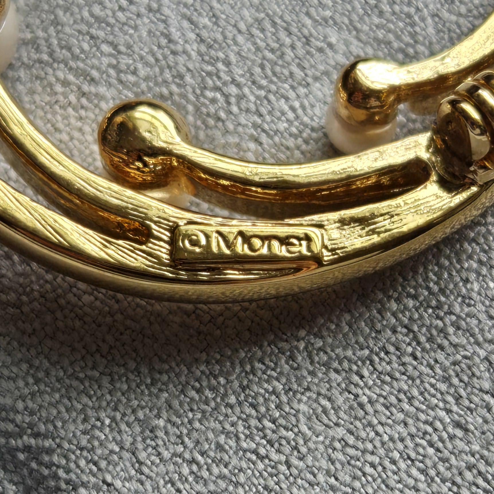 A lovely round brooch by Monet with small faux pearls set on gold plated metal