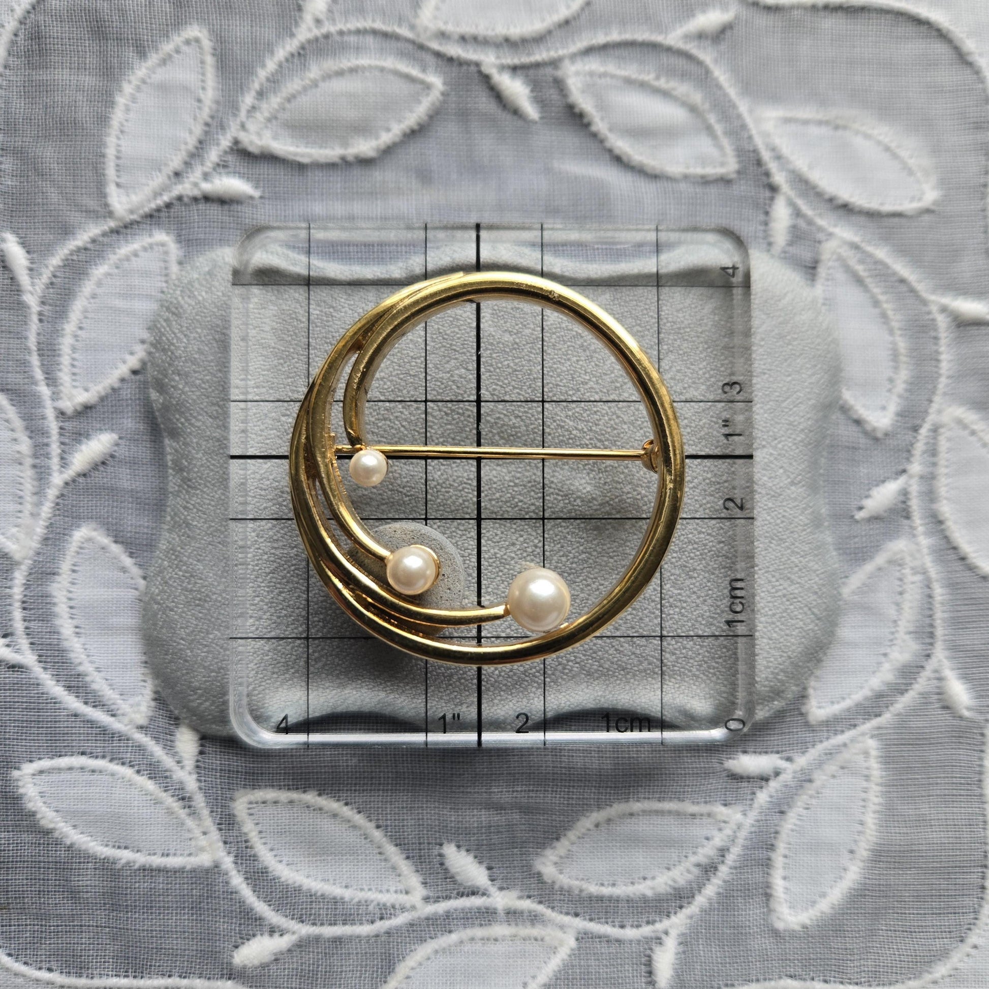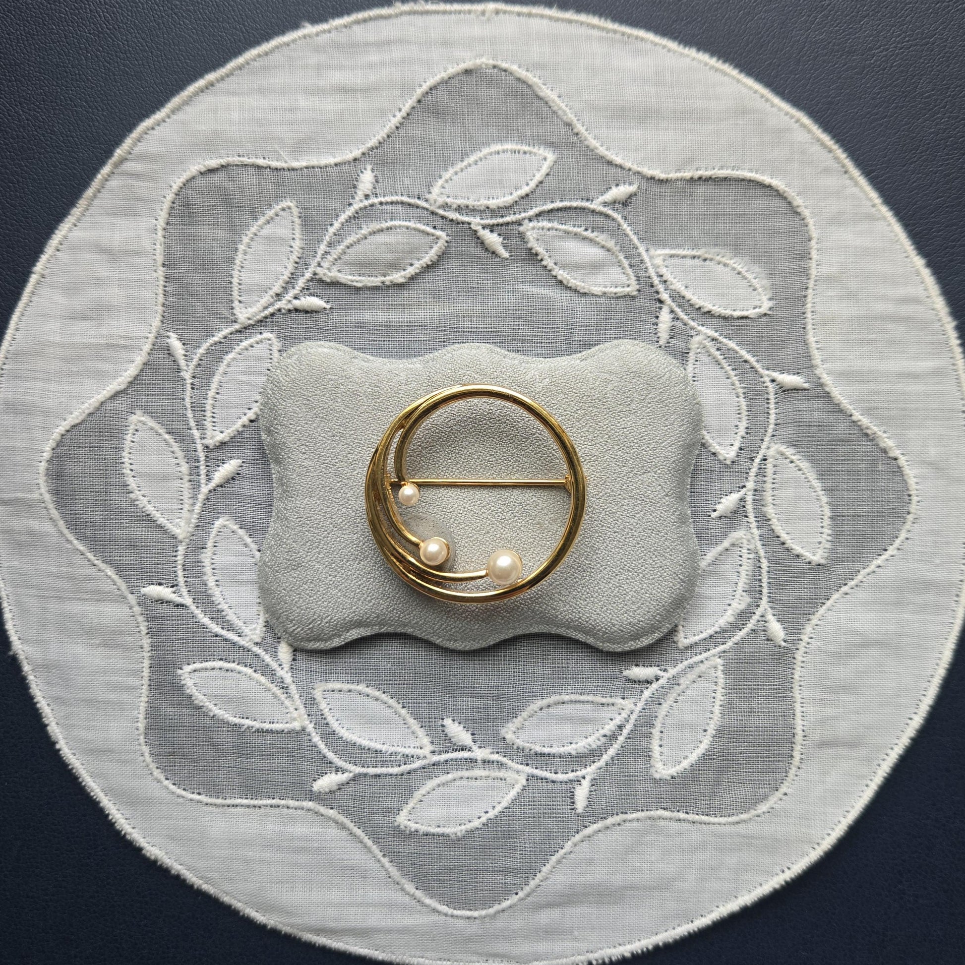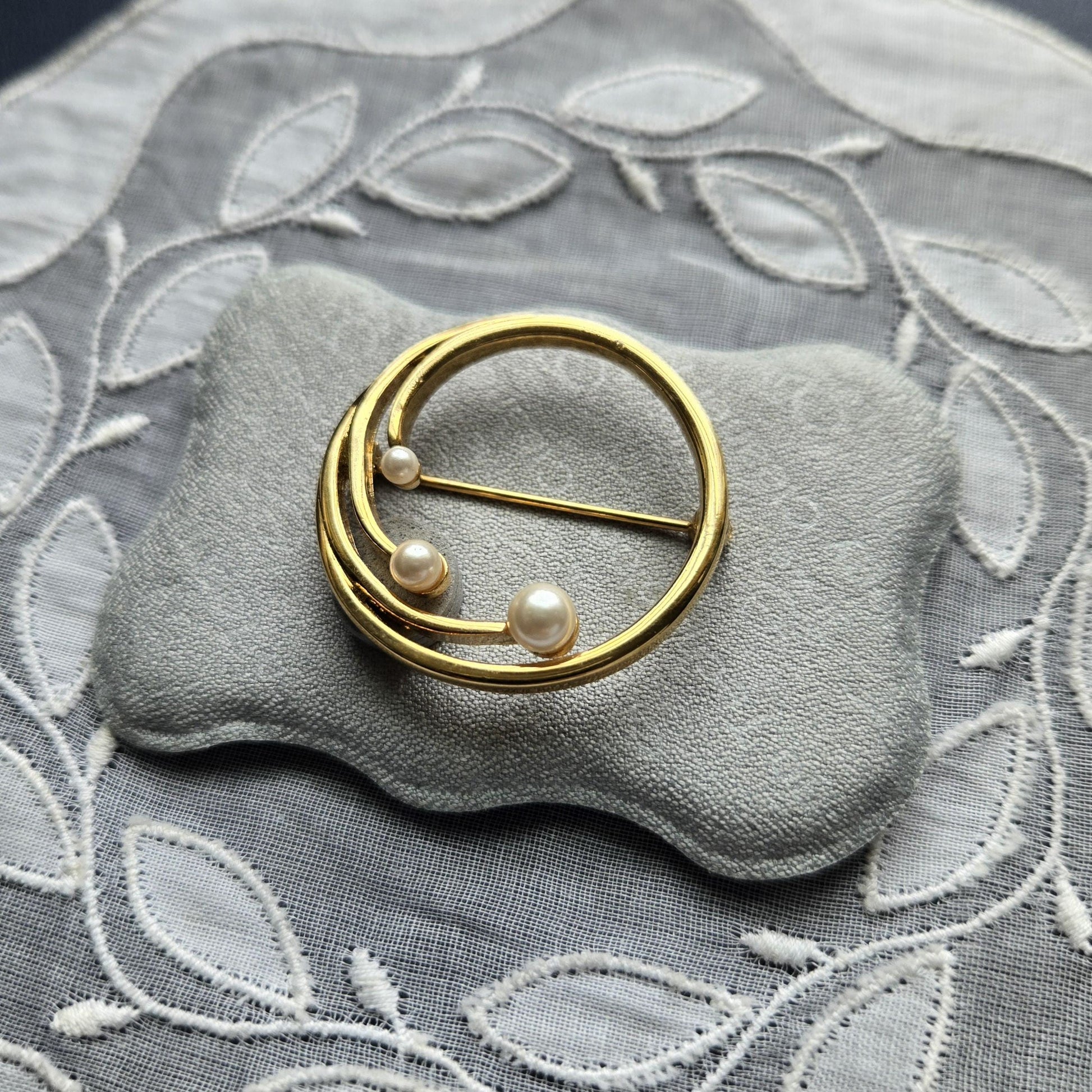A lovely round brooch by Monet with small faux pearls set on gold plated metal