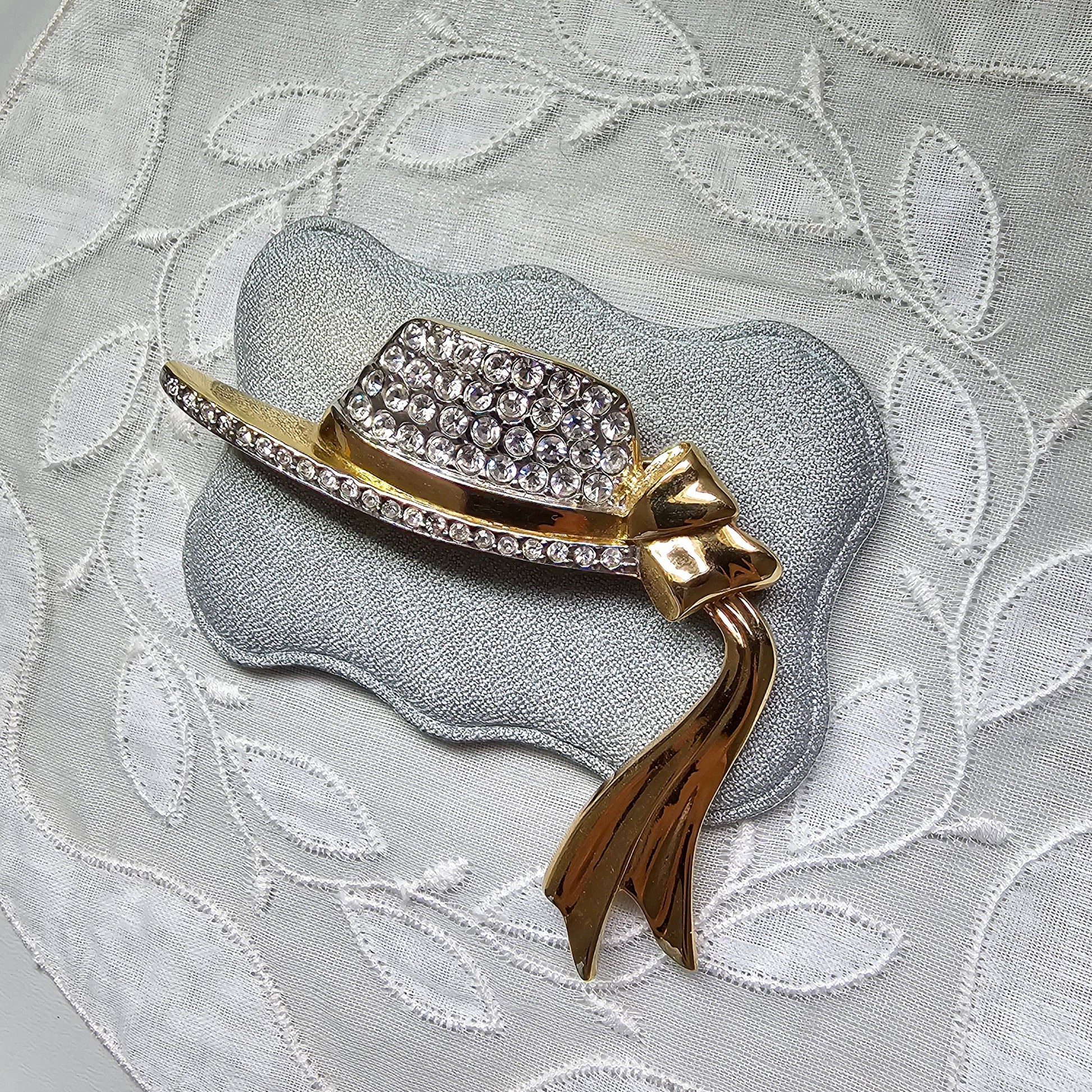 A beautiful statement hat brooch by Moritz encrusted with clear crystals on gold plated metal