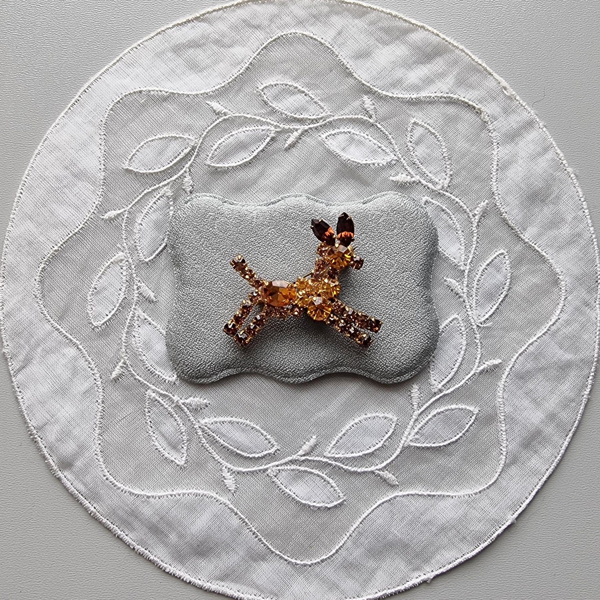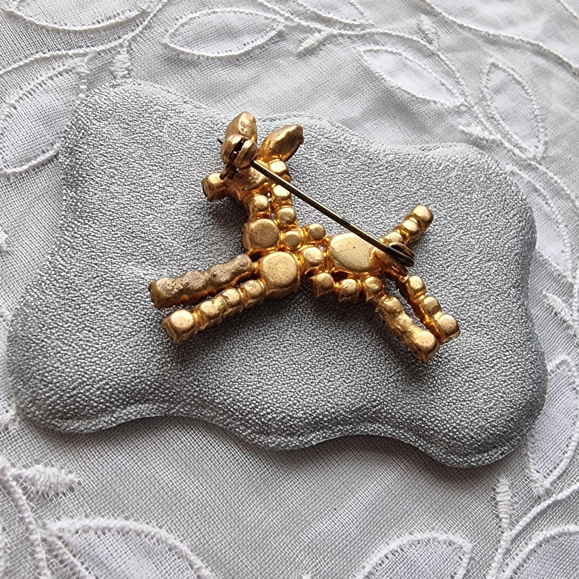 A sweet prancing donkey or horse brooch with brown and orange crystals on gold plated metal