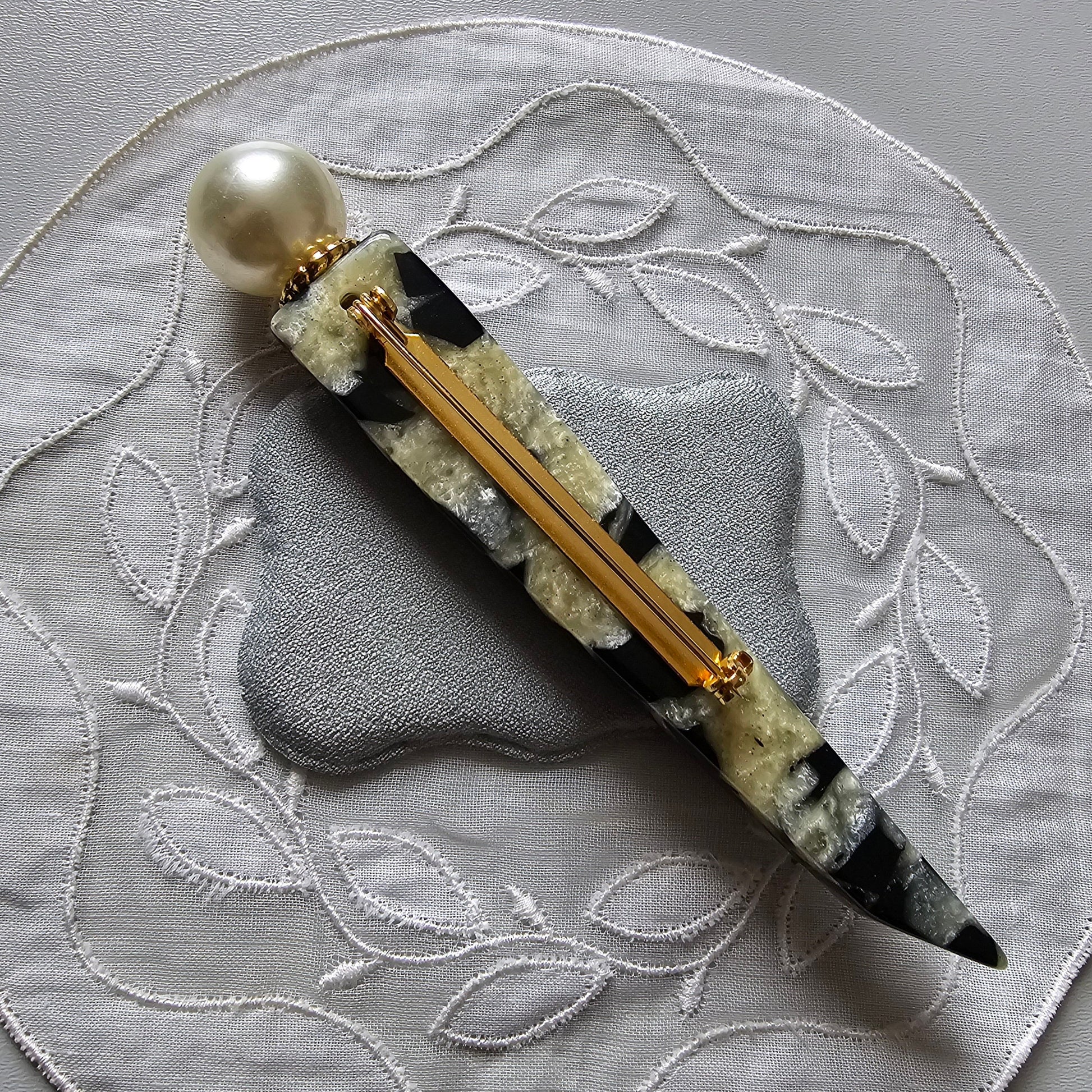 Brooch - Pearl and Black and White Acrylic Brooch