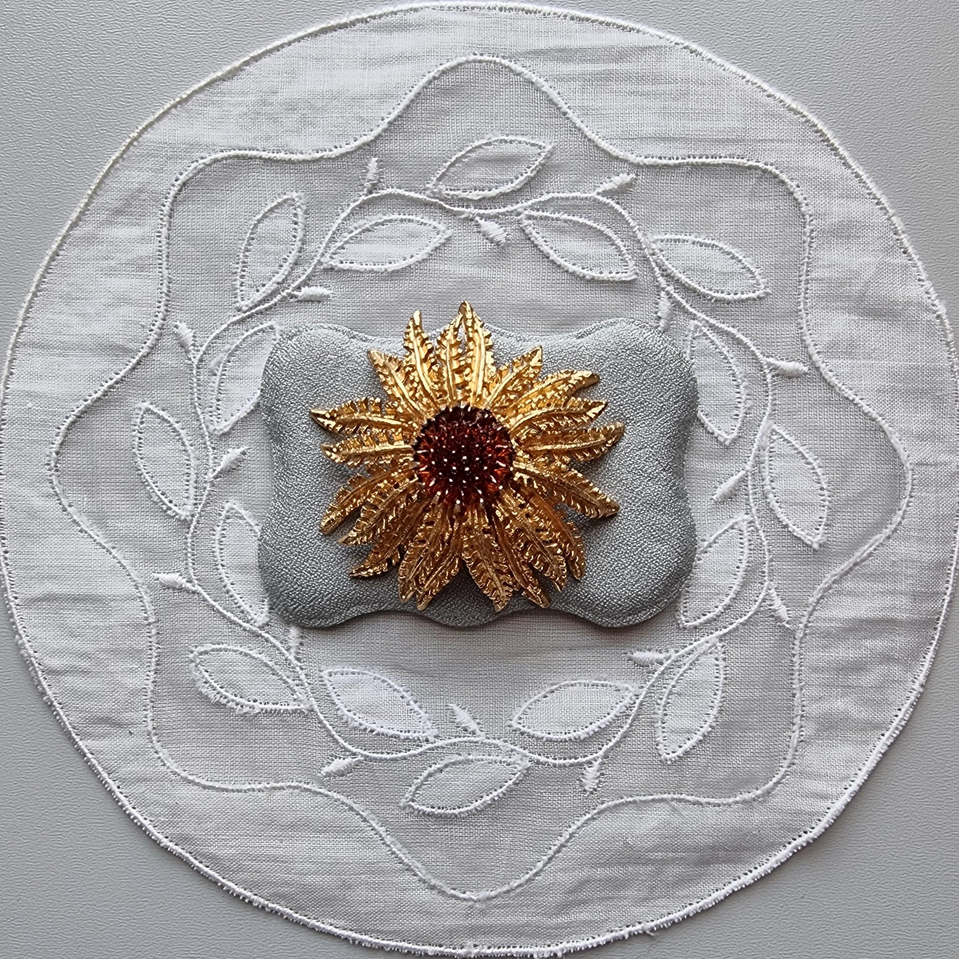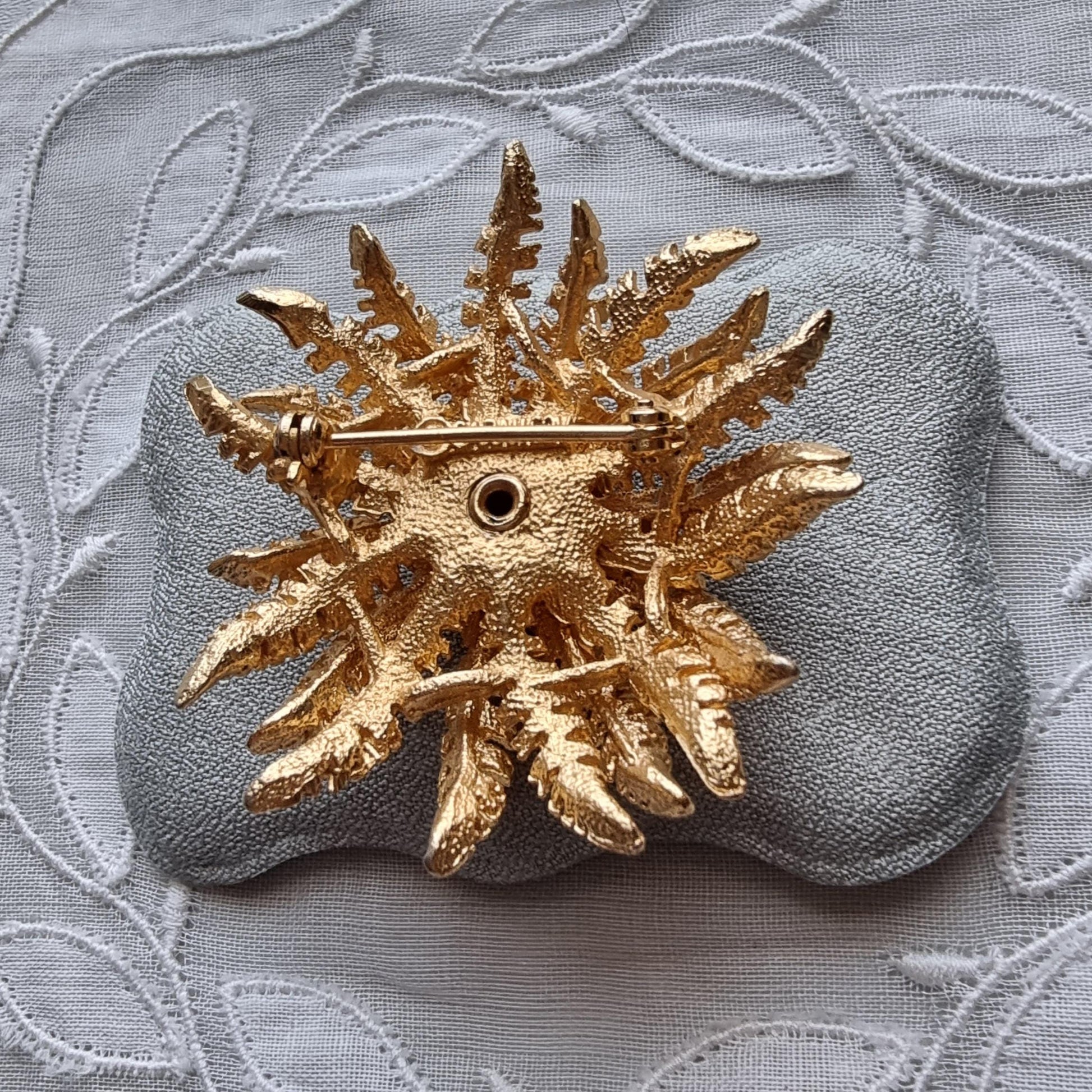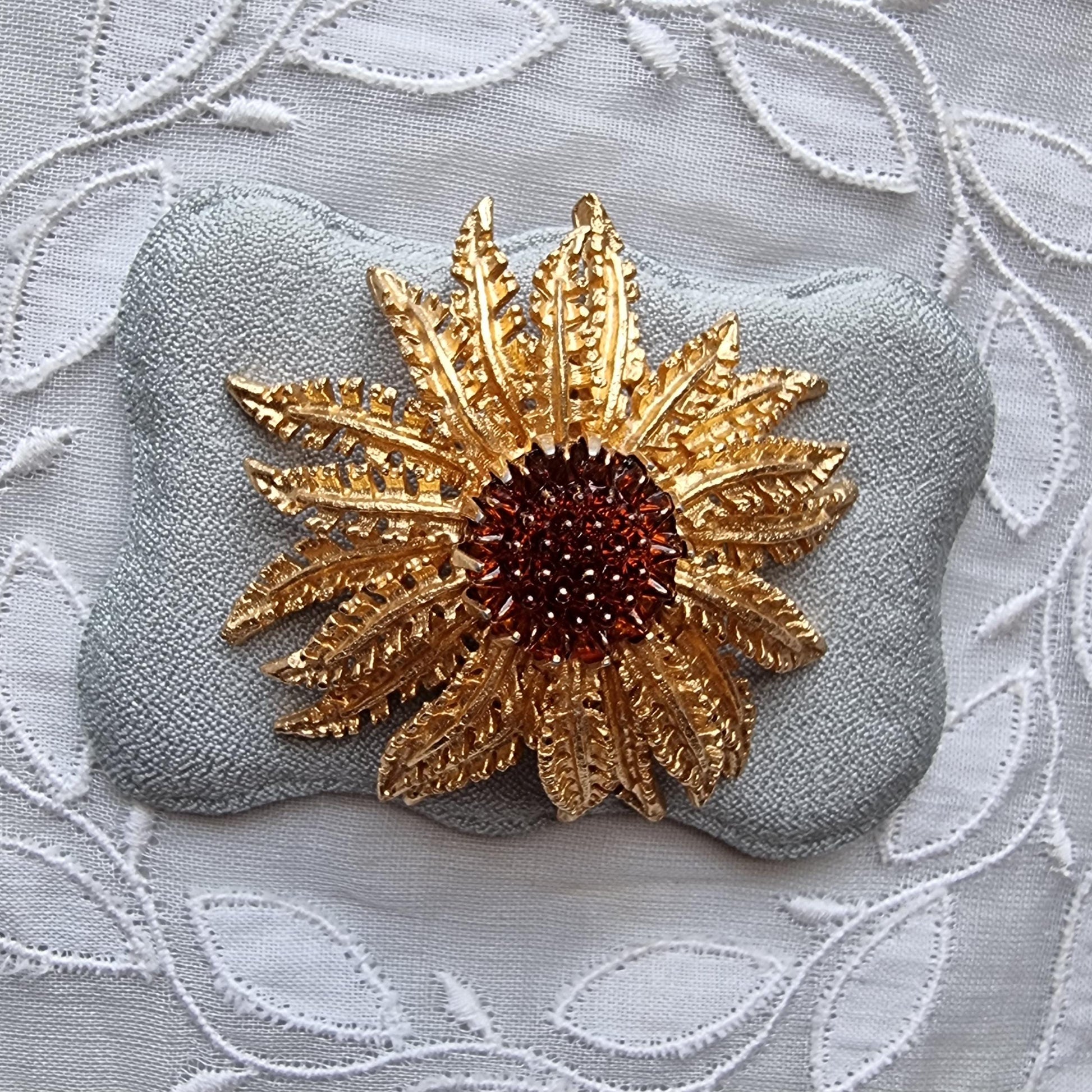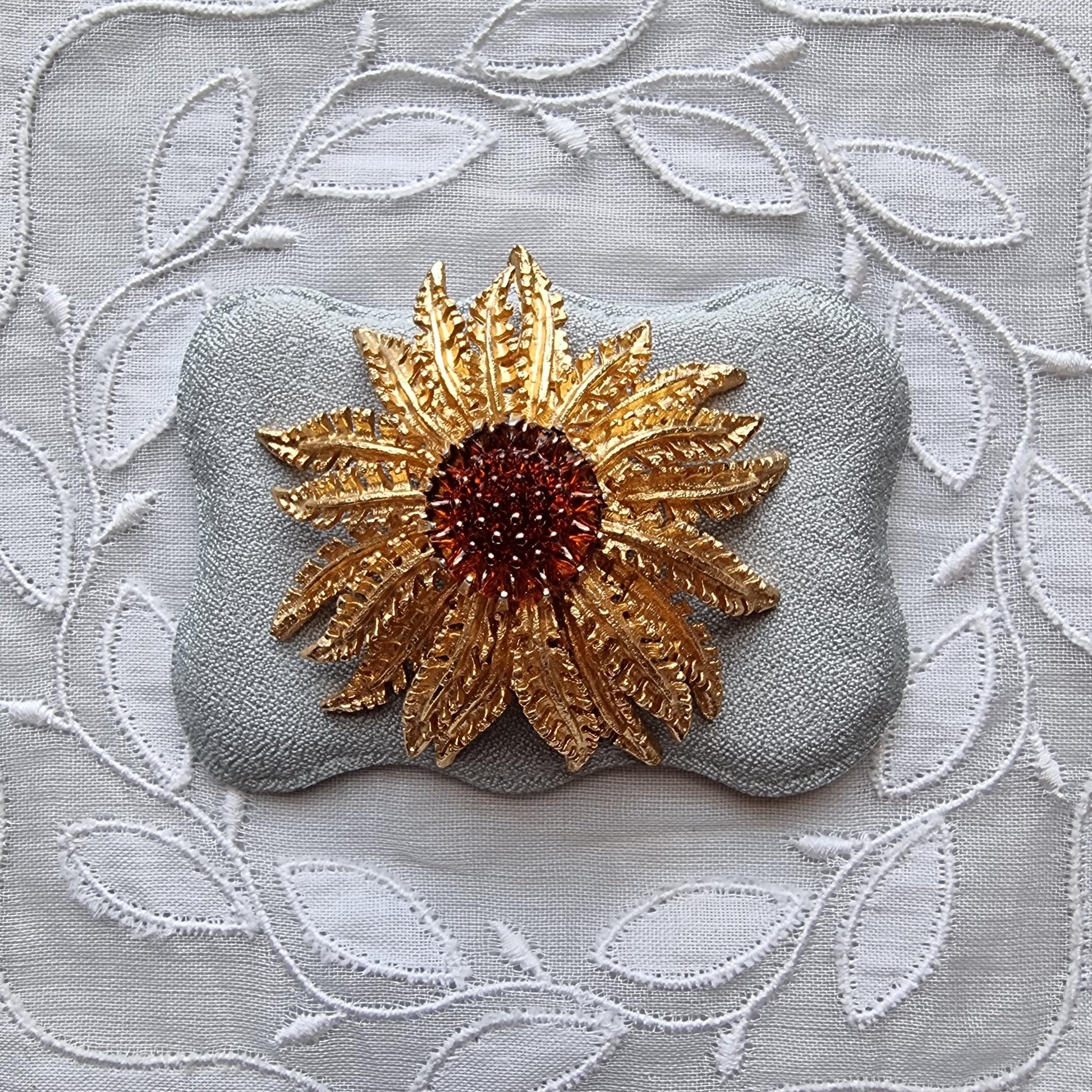 A beautiful flower brooch by Sarah Coventry with a brown moulded glass on gold plated metal