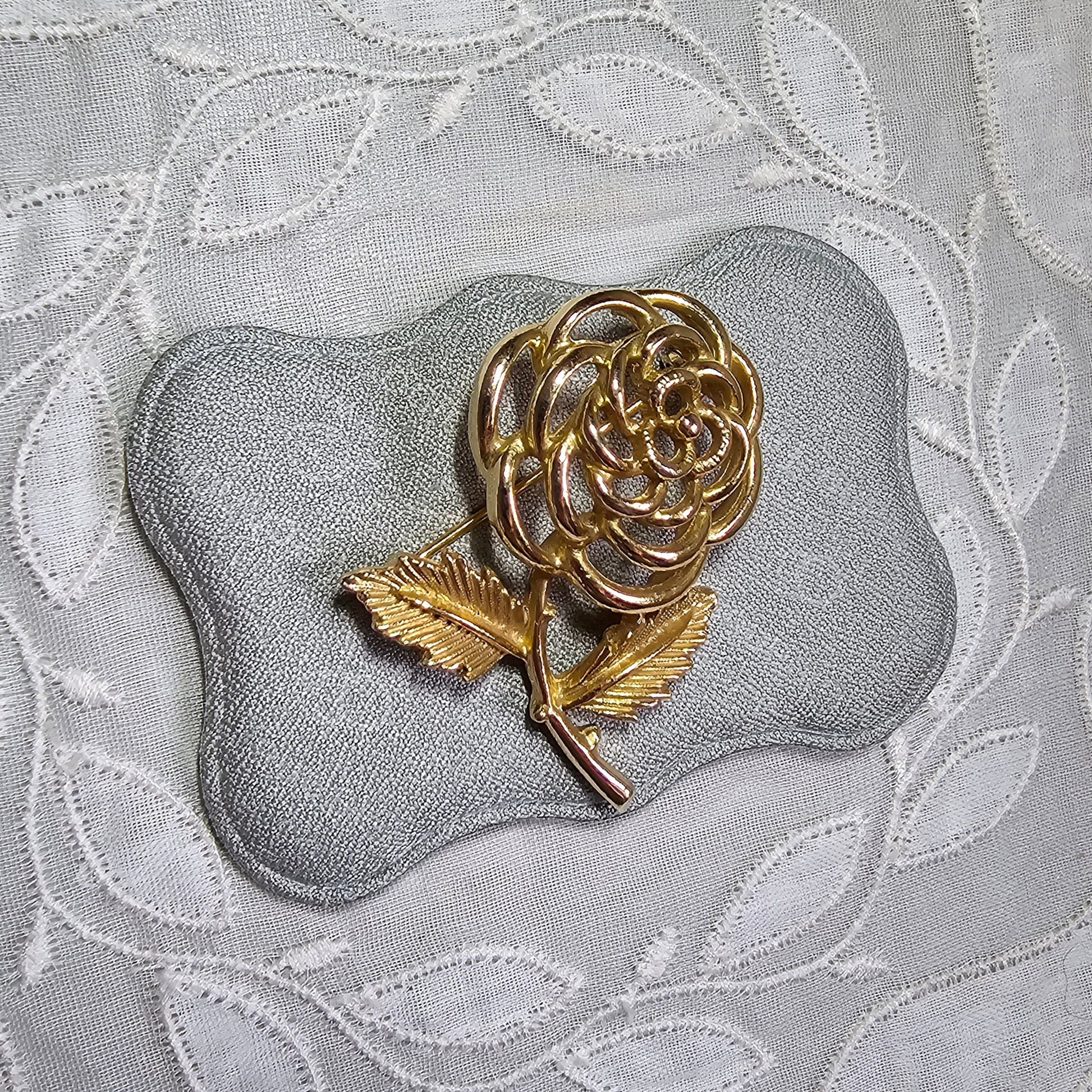 A sweet rose stem brooch by Sarah Coventry in gold plated metal