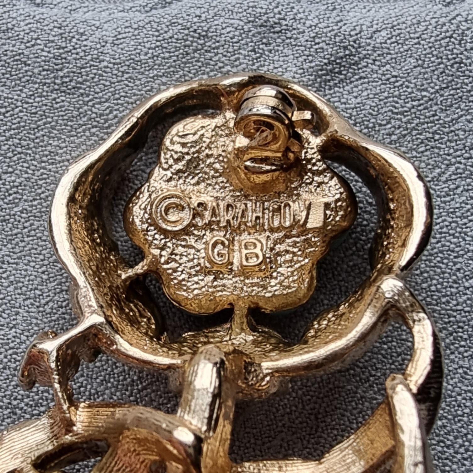 A beautiful blue flower brooch by Sarah Coventry with faux turquoise beads and clear crystals on gold plated metal