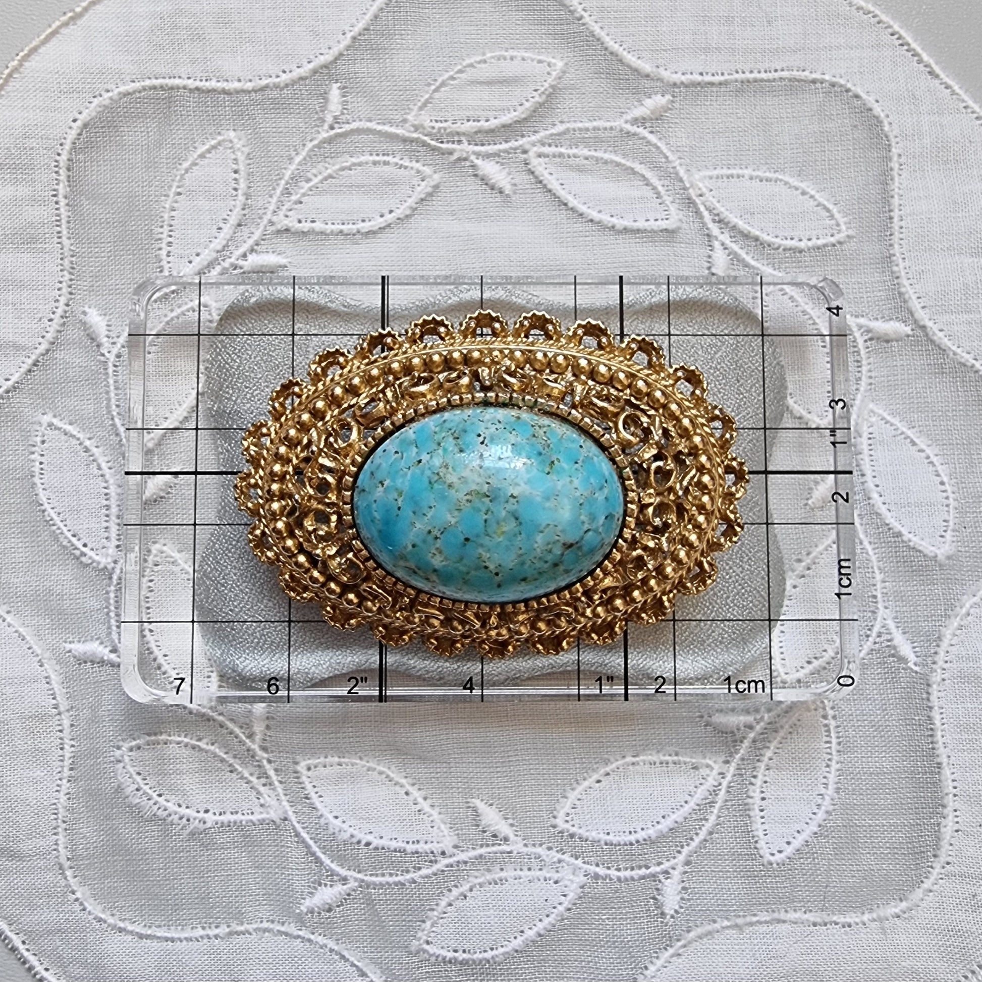 Brooch - Sphinx Gold Filigree Oval Turquoise Brooch