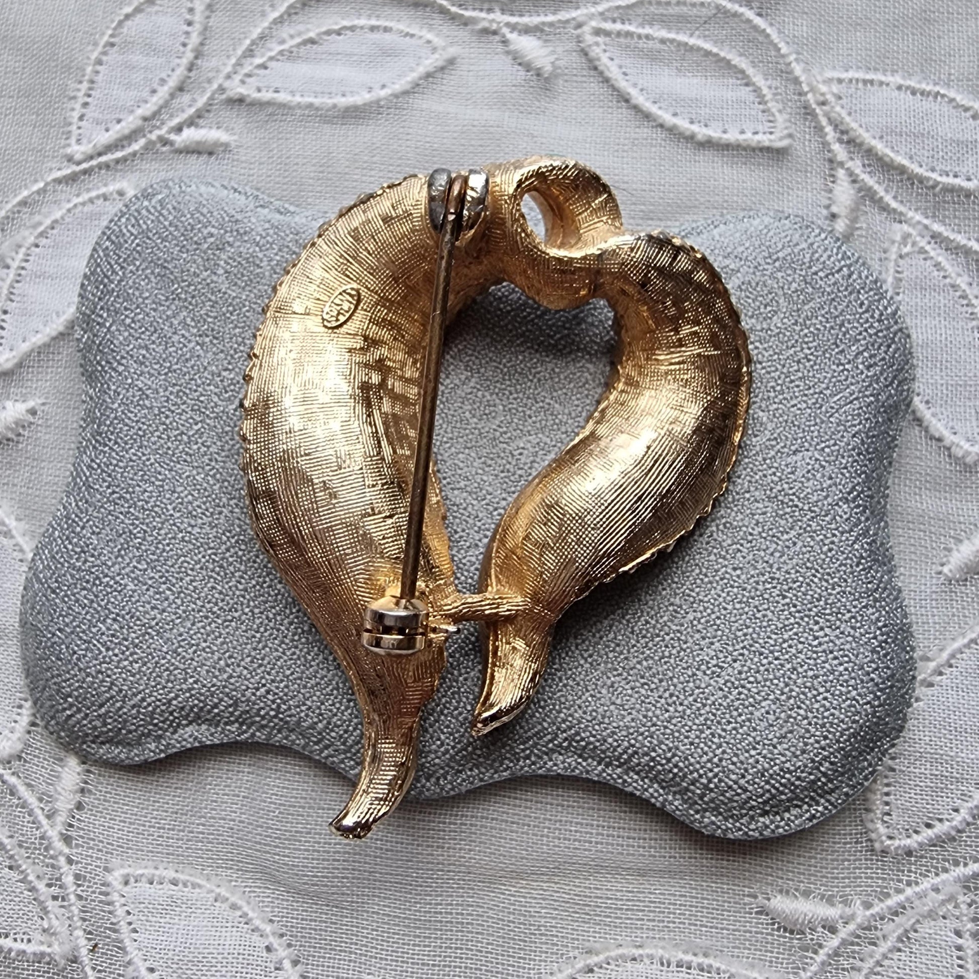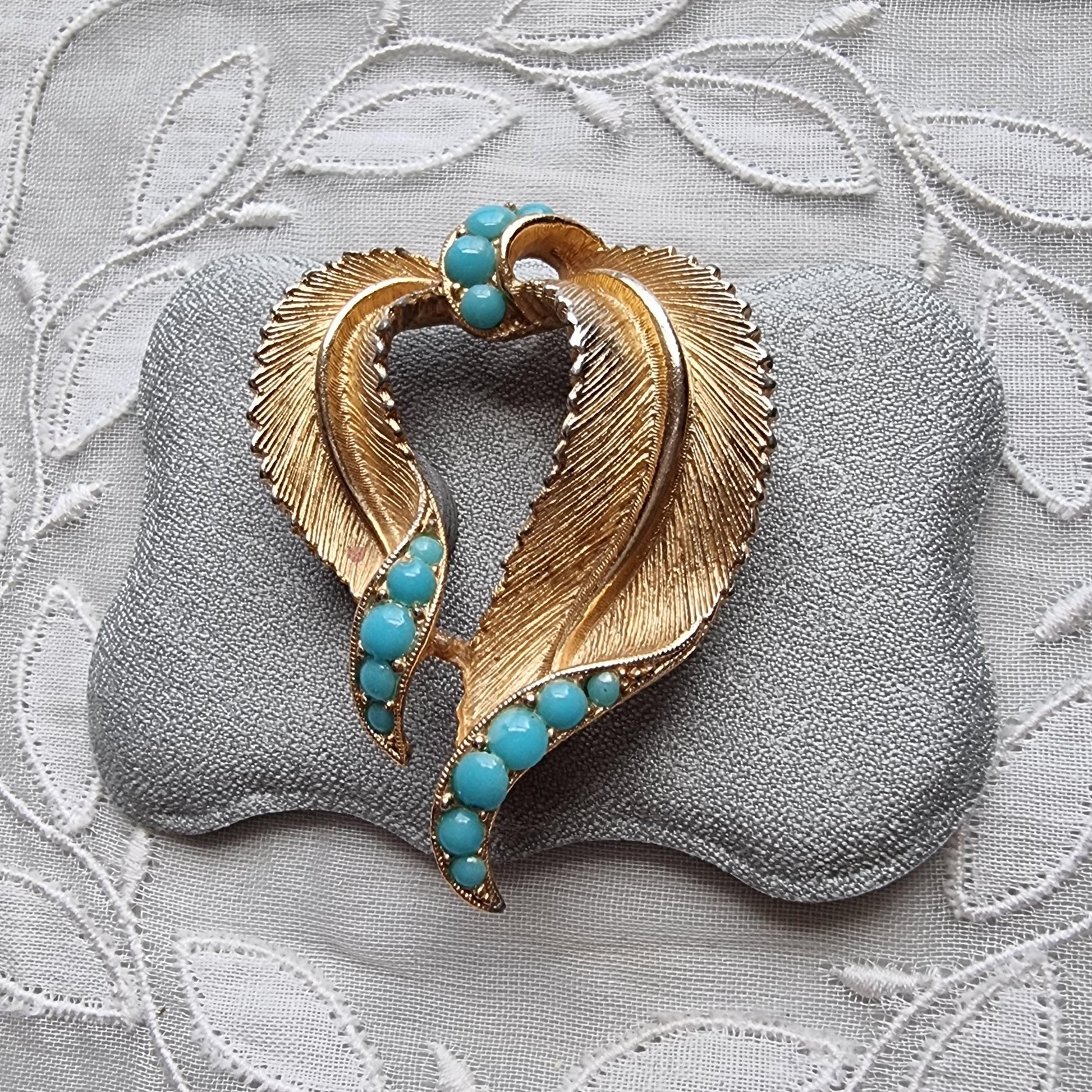 A lovely leafy bow brooch by Sphinx of London with faux turquoise stones set on gold plated metal