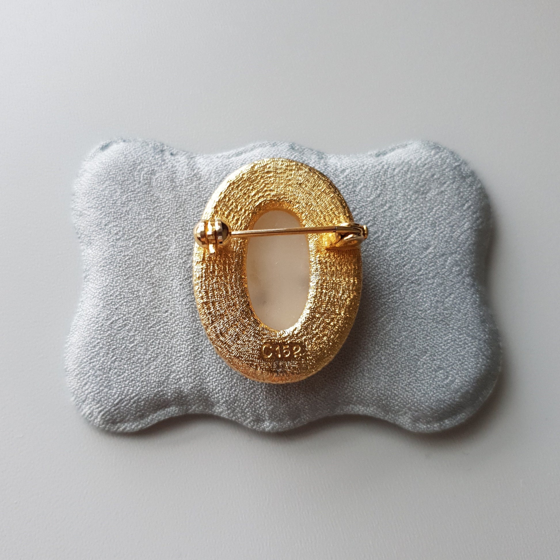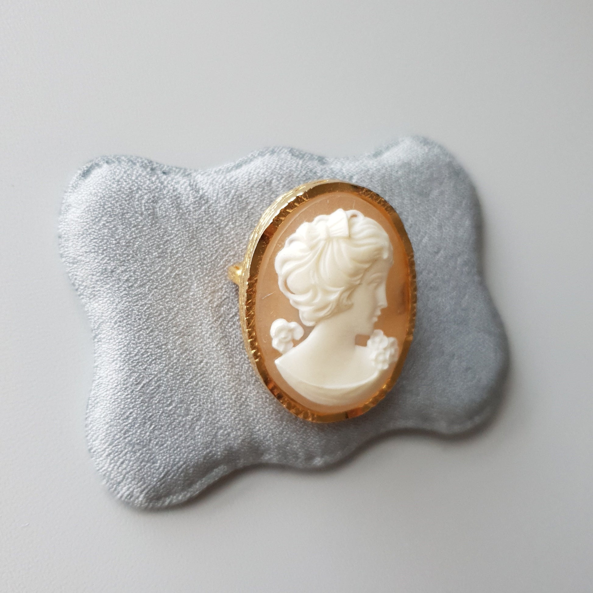 A beautifully framed cameo brooch by Sphinx of London with acrylic cameo on gold plated metal