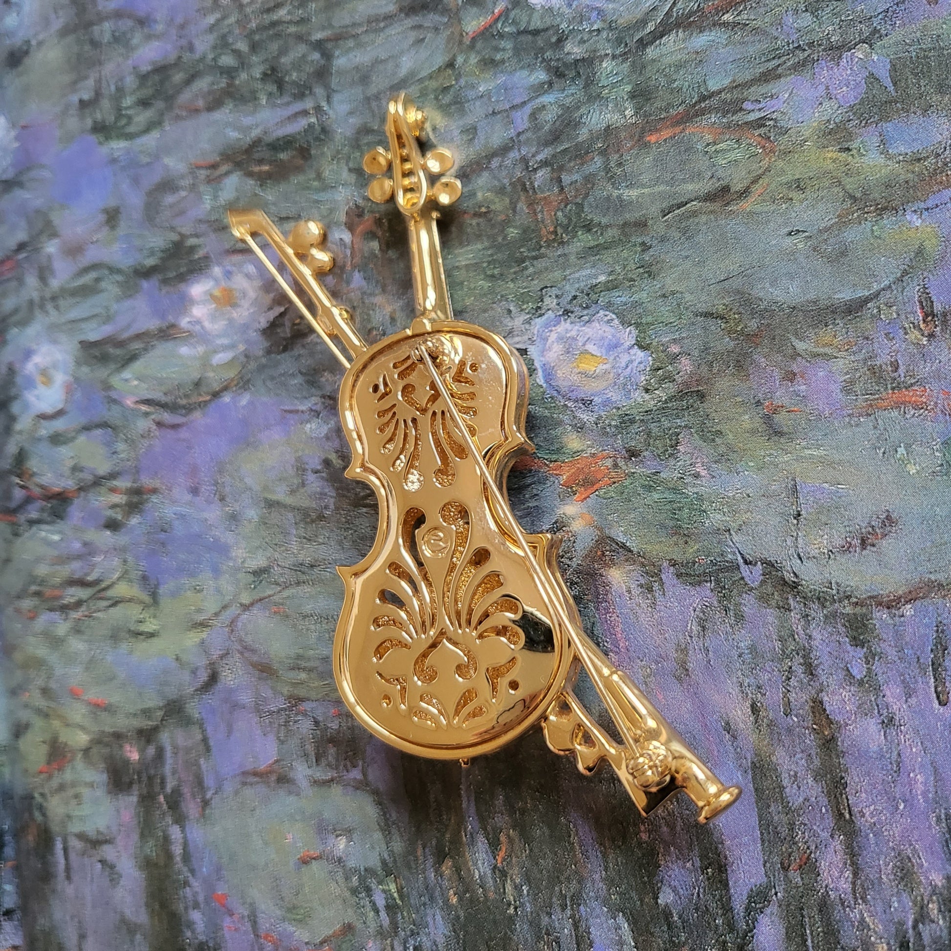 A stunning statement crystal encrusted violin brooch by Swarovski