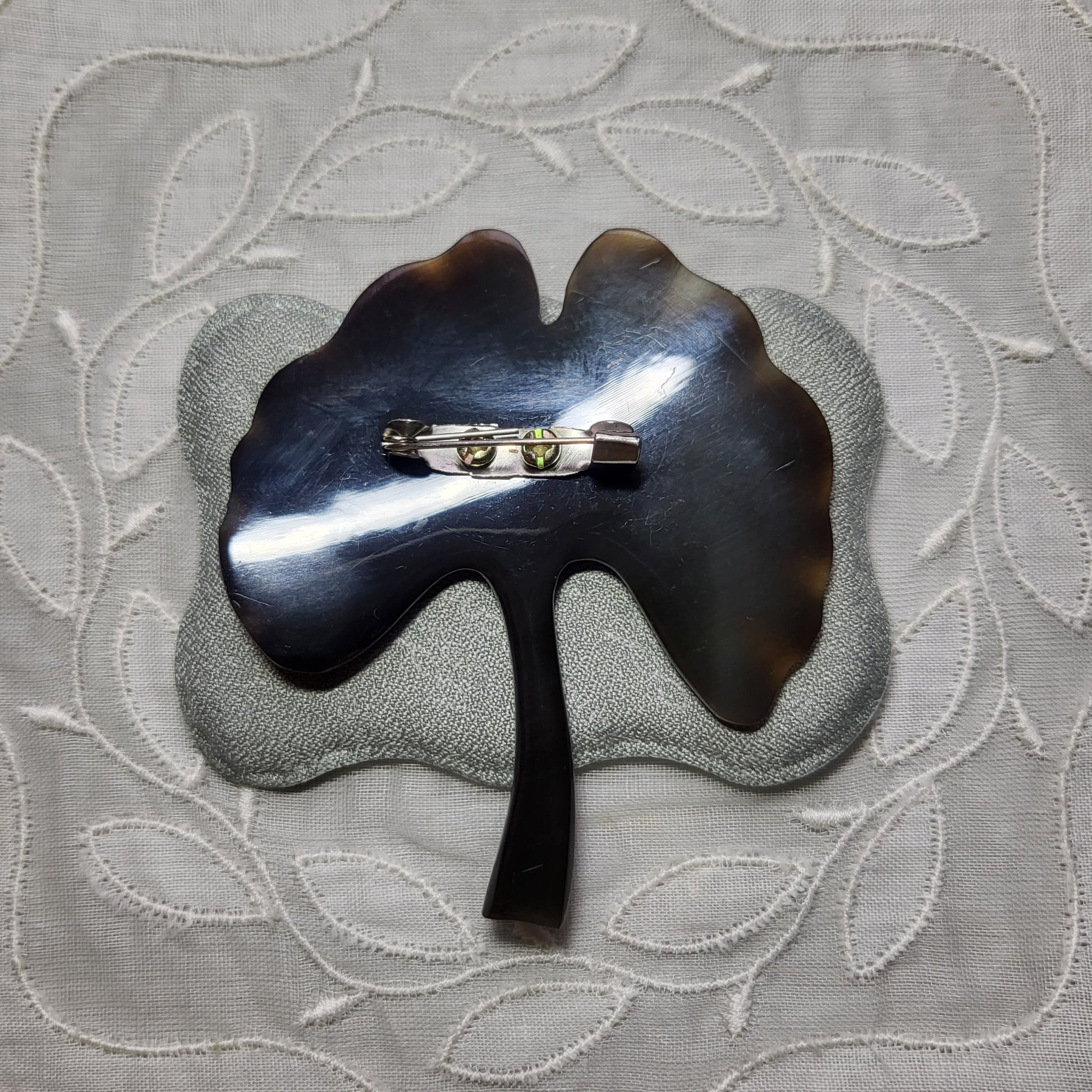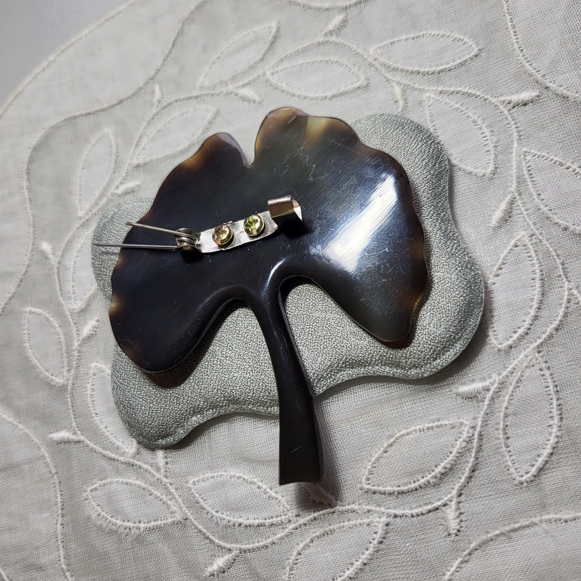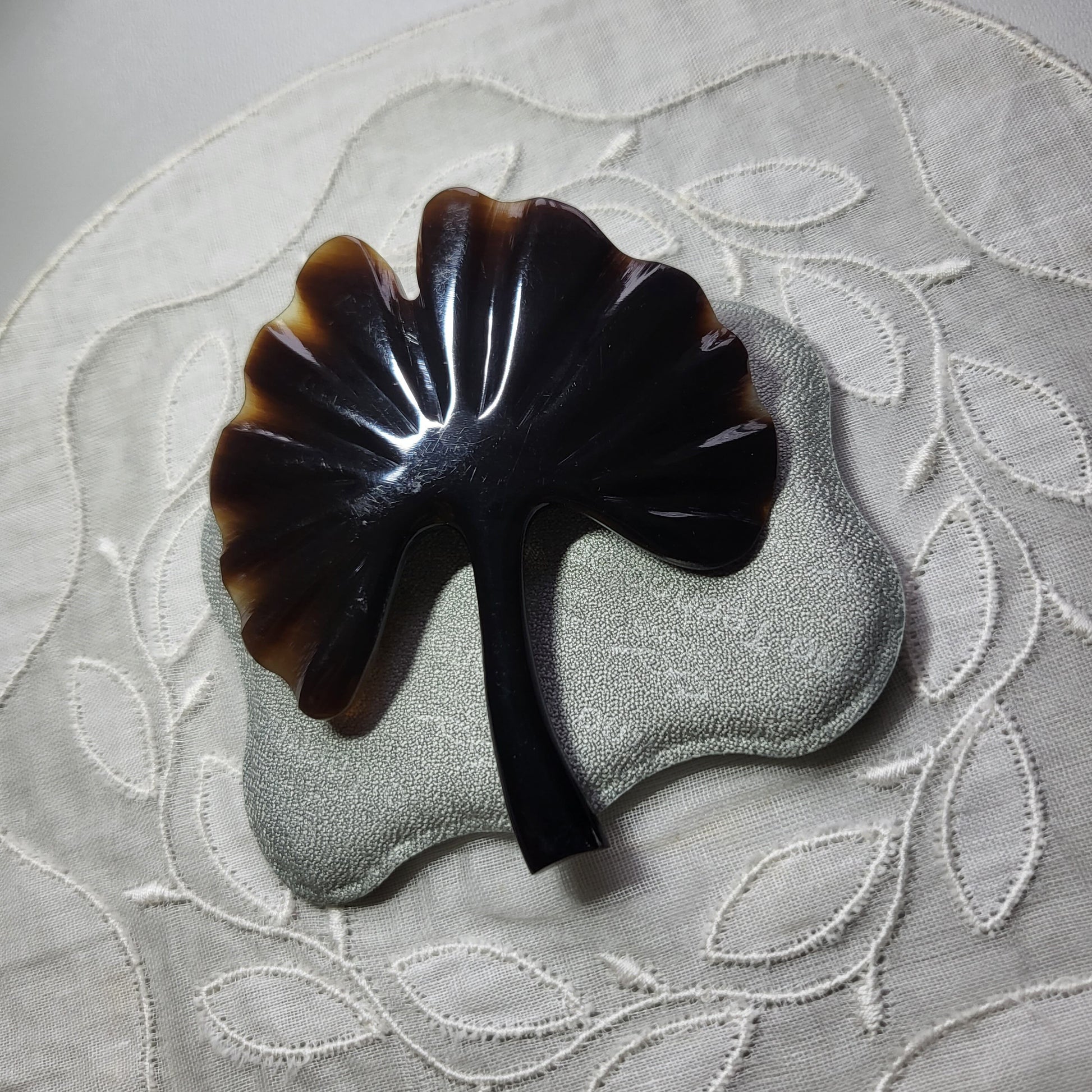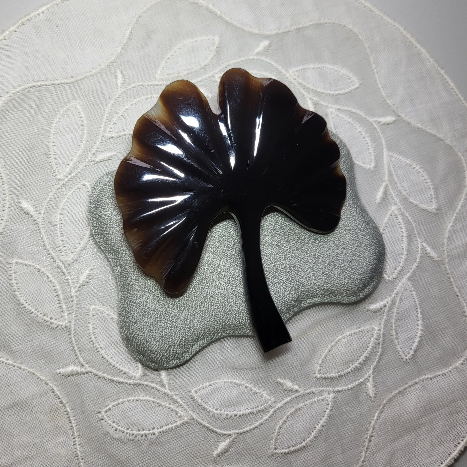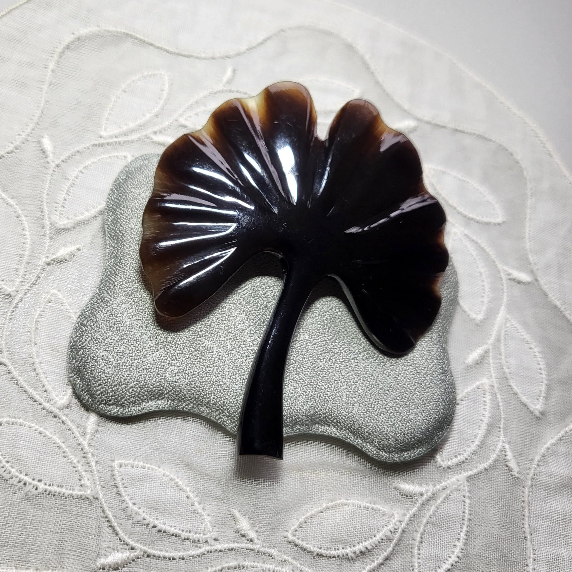 A beautiful brown ginko leaf brooch carved from vintage acrylic
