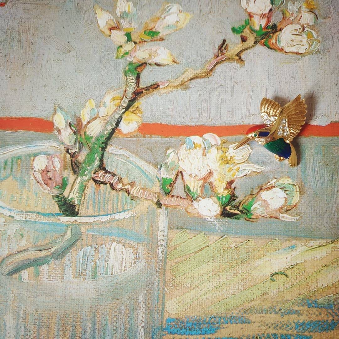 A lovely vintage tropical hummingbird brooch by Attwood and Sawyer.