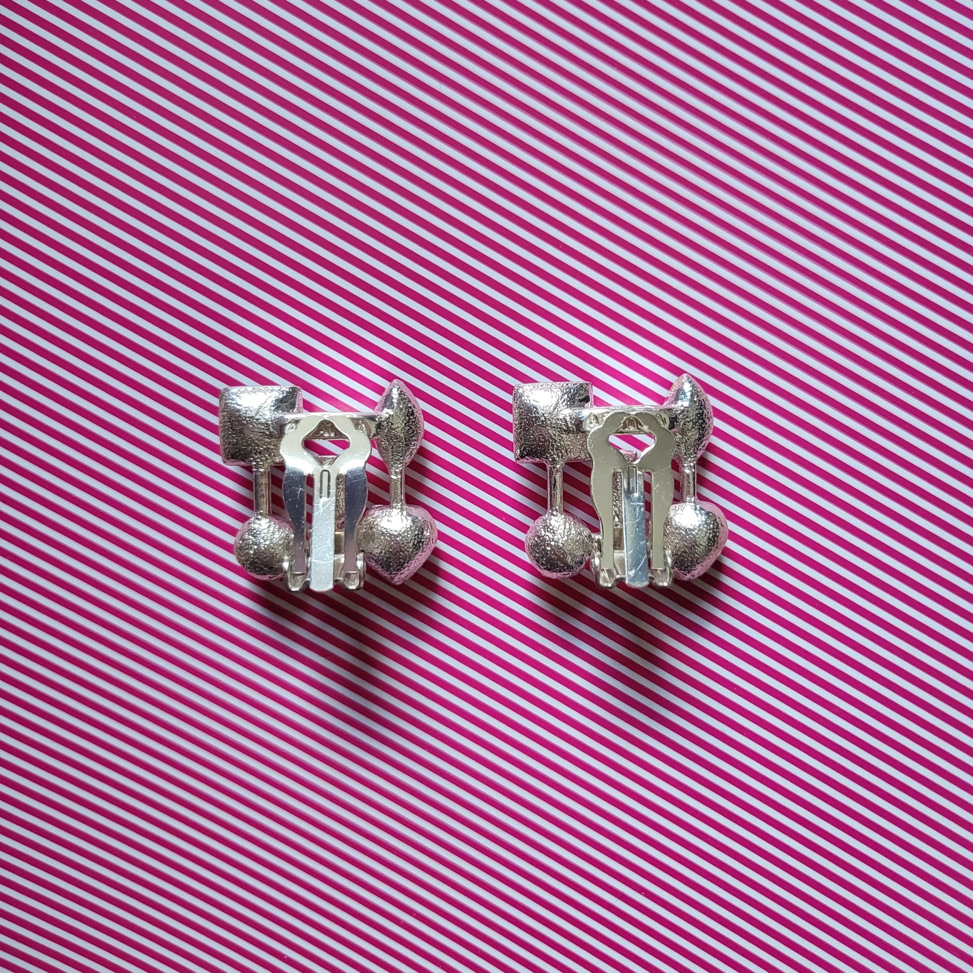 Stunning vintage clip on earrings by Agatha with vibrant red and purple crystals on rhodium plated metal
