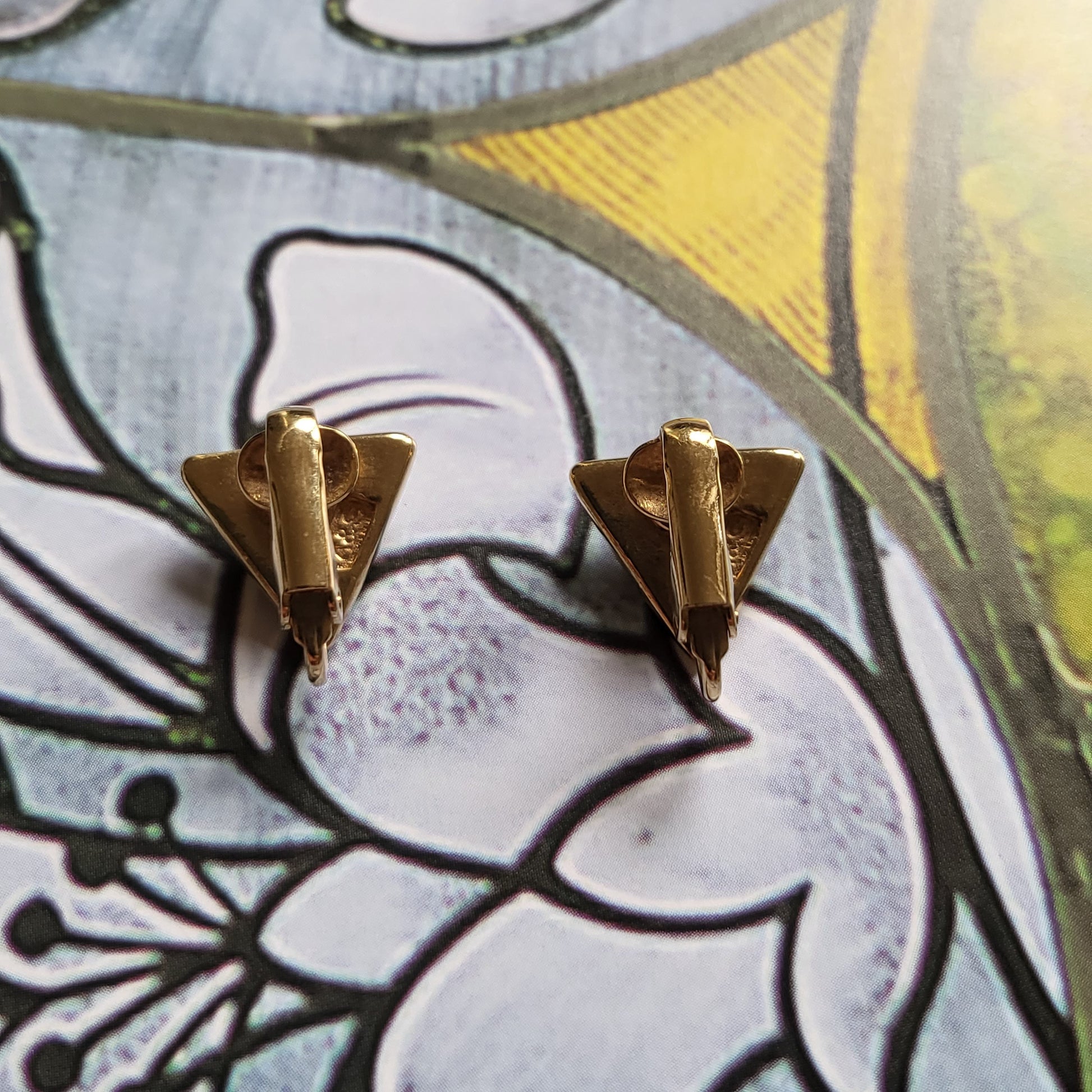 A dainty triangular crystal clip on earrings in 22ct gold plated metal by Attwood and Sawyer