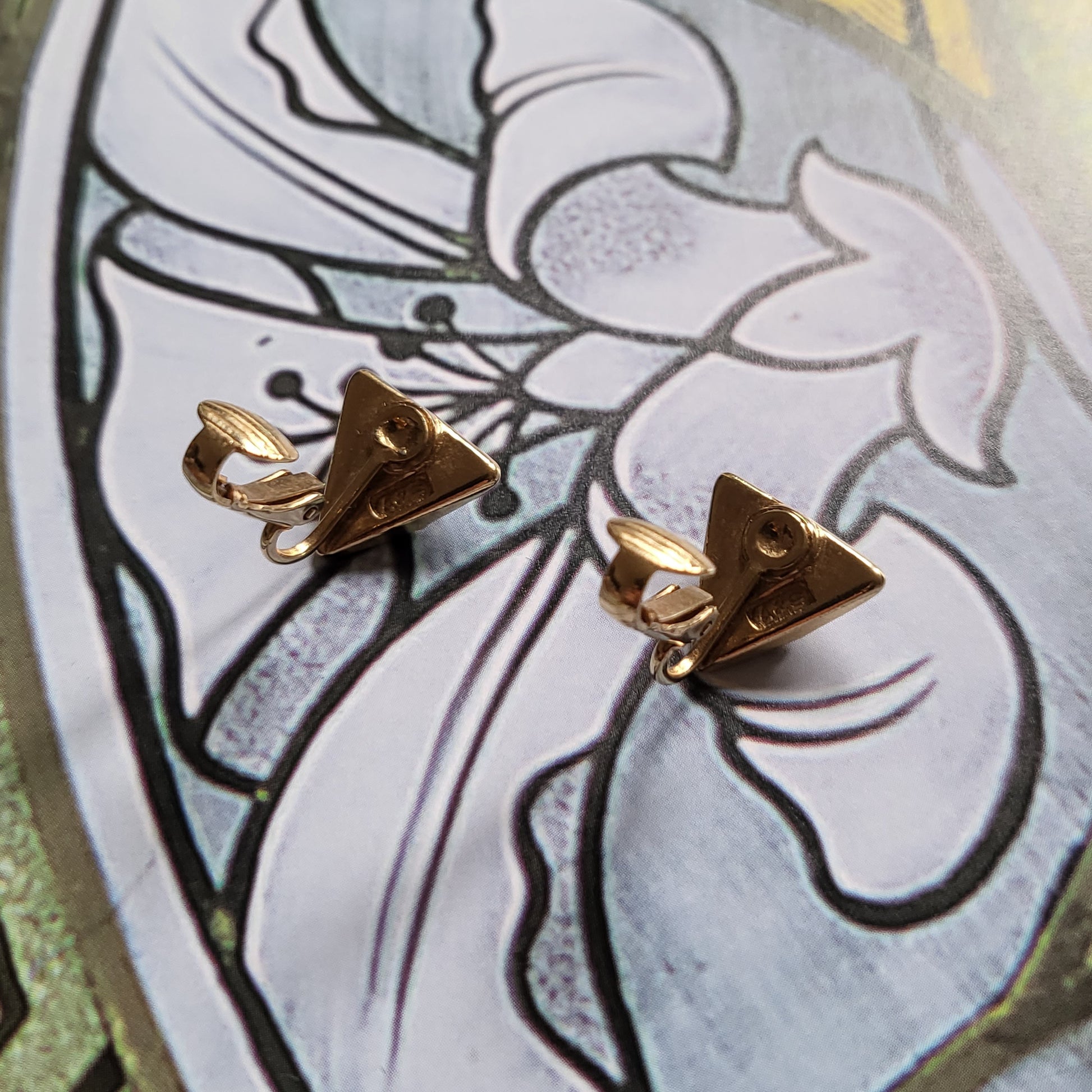 Vintage Attwood and Sawyer Triangular Crystal Clip On Earrings