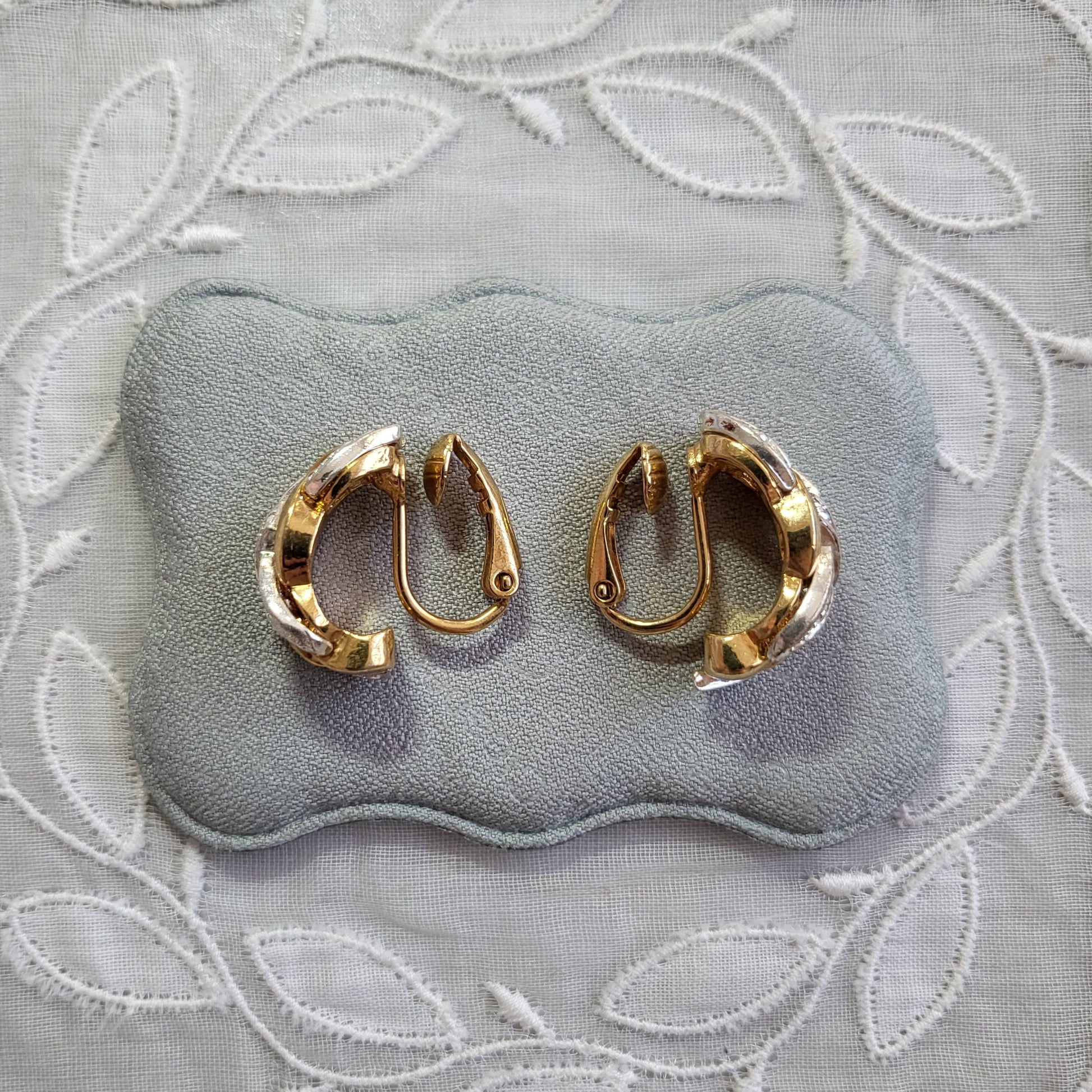 A lovely plait design half hoop clip on earrings by Avon with small clear crystals set on rhodium and gold plated metal