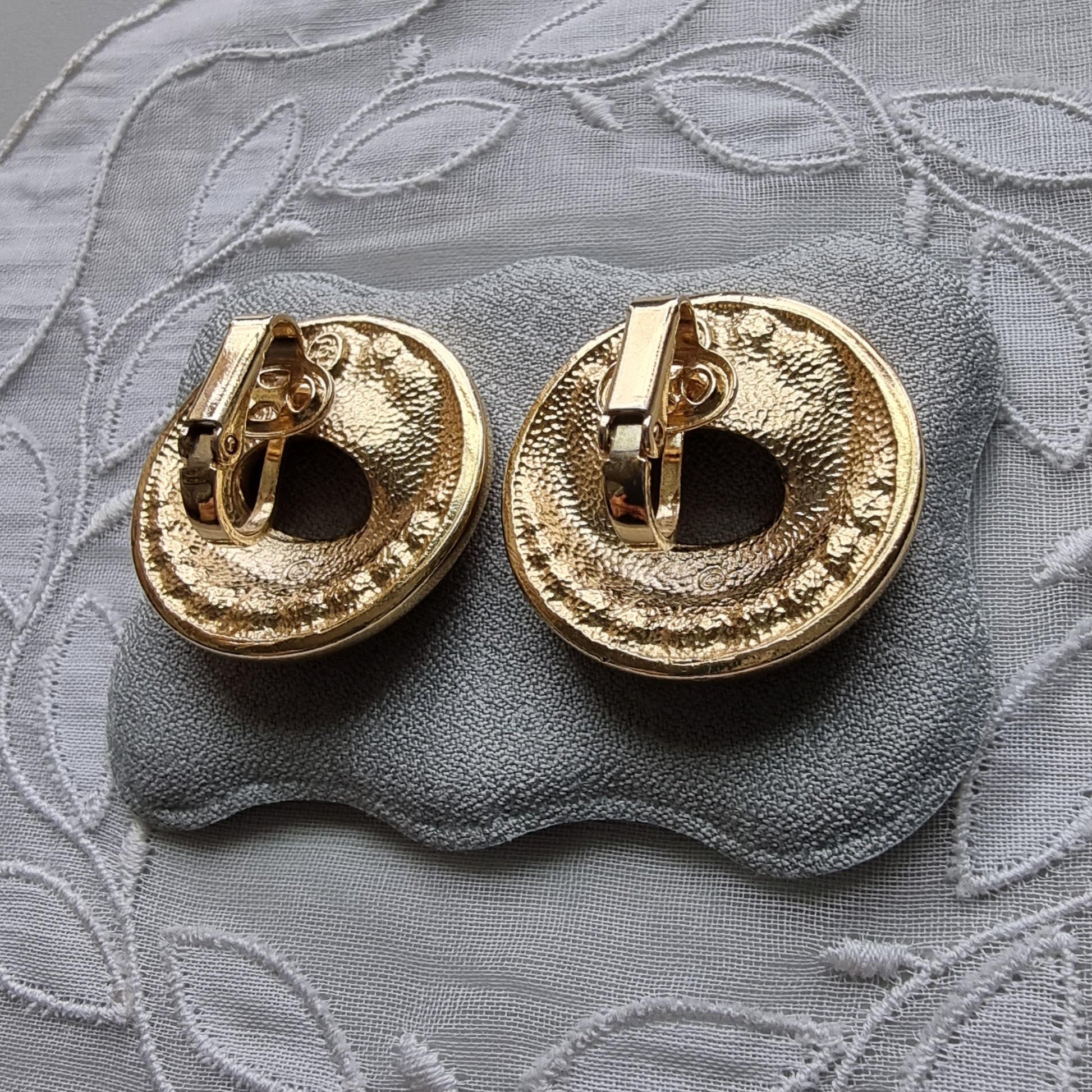 Clip on - Bergdorf Goodman Brown Enamel and Crystals Round Clip On Earrings