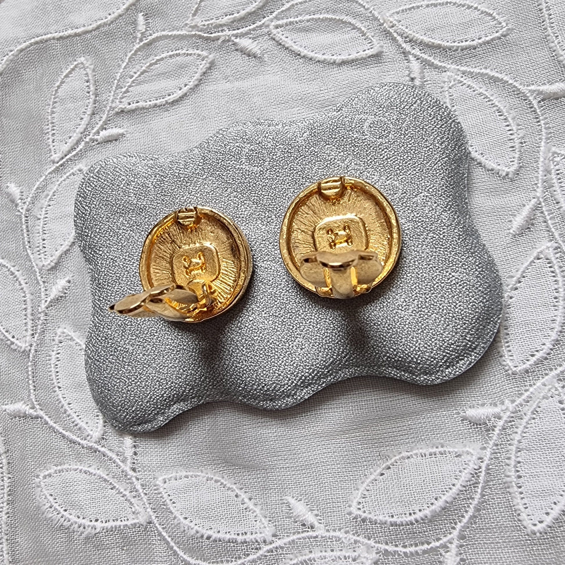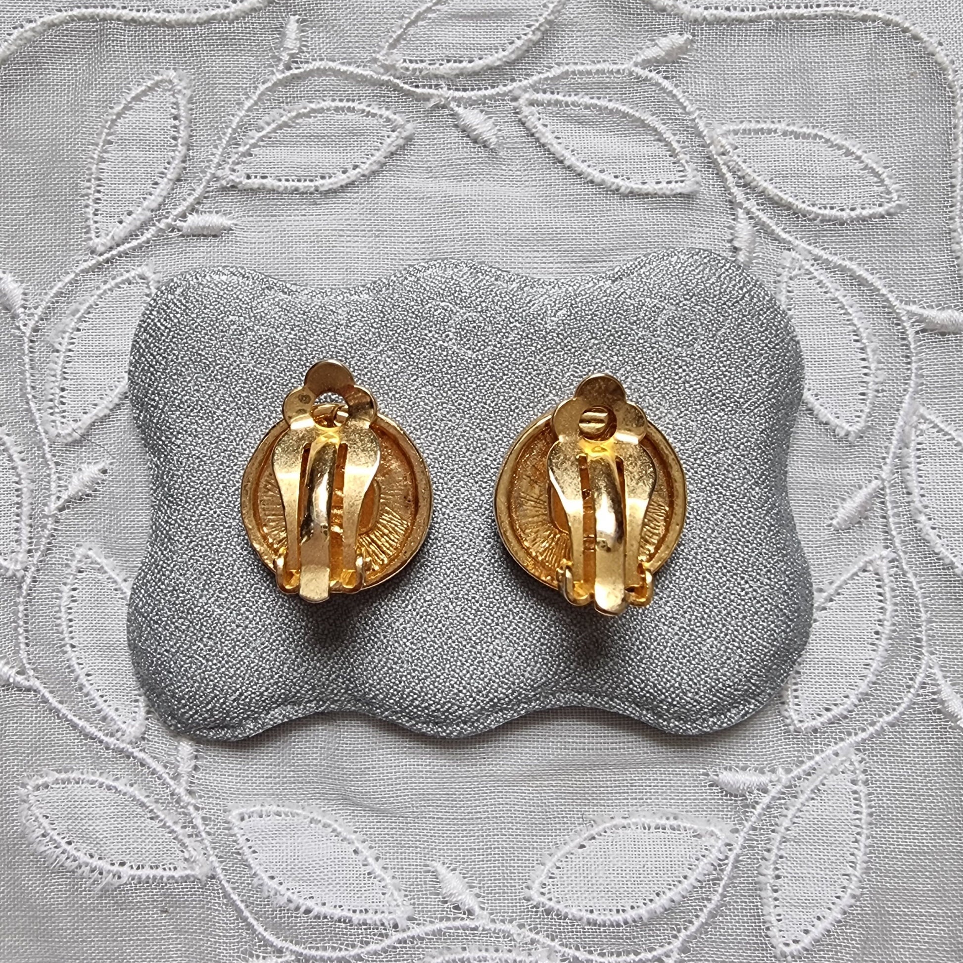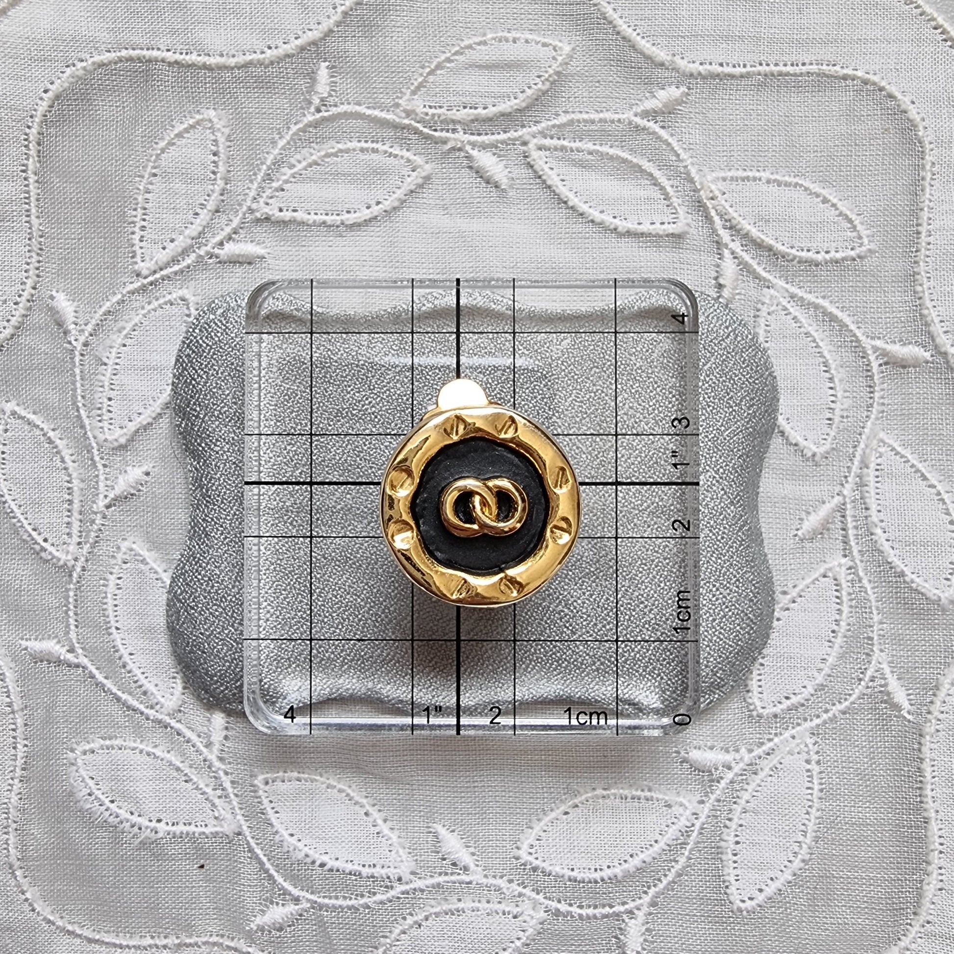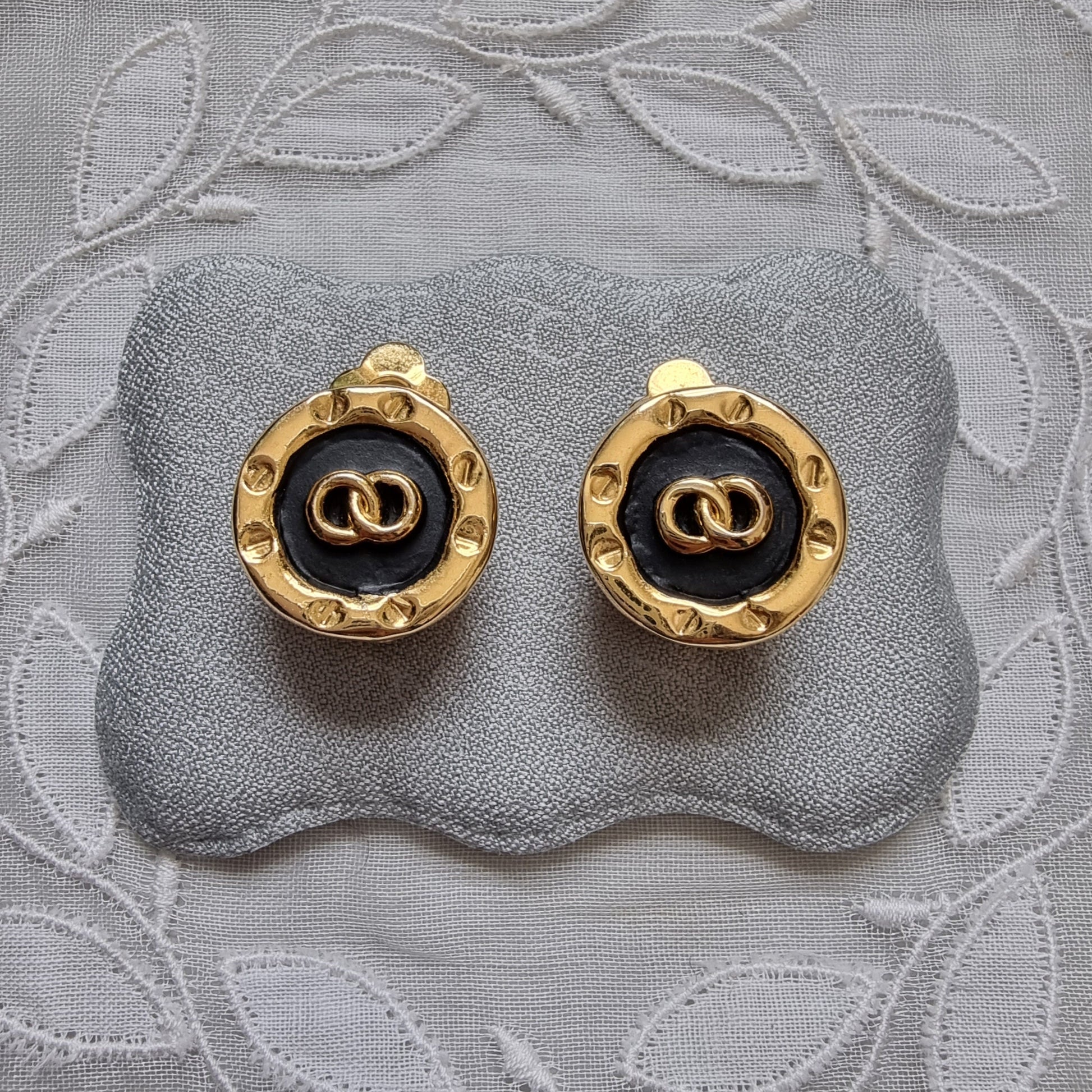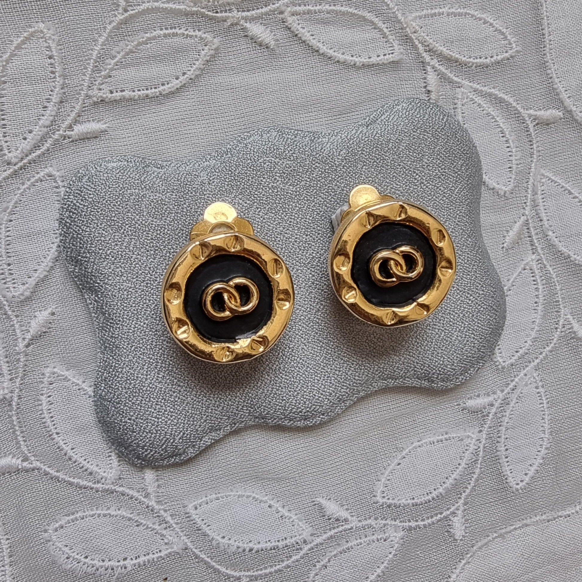 A simple chic pair of round clip on earrings with black enamel on gold plated metal