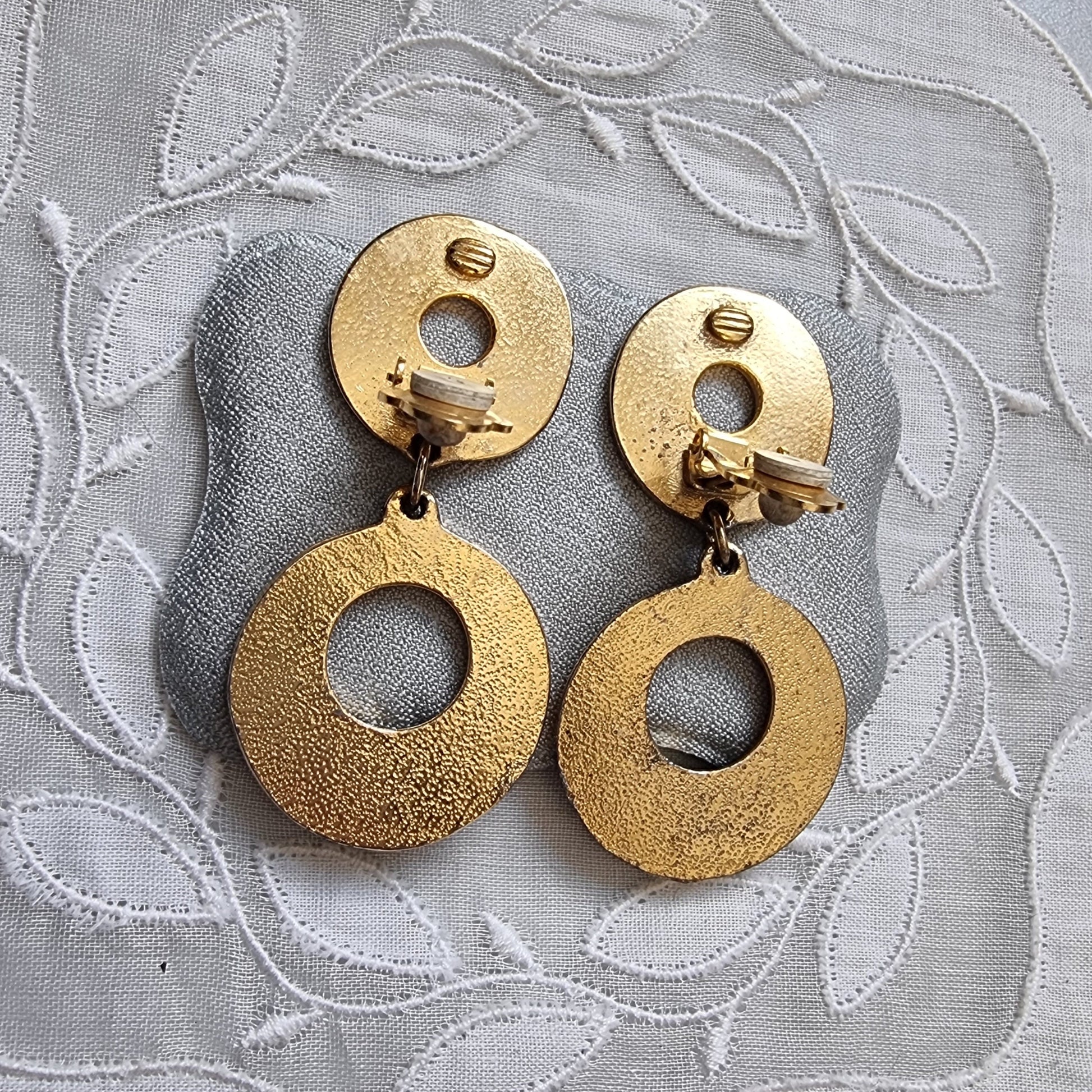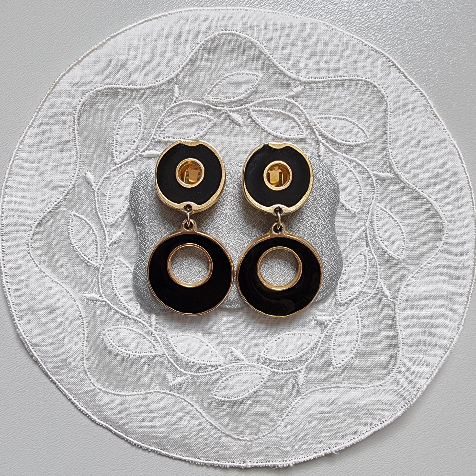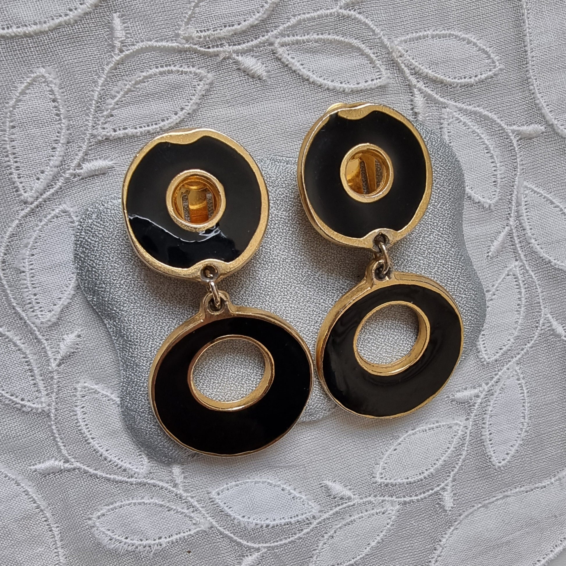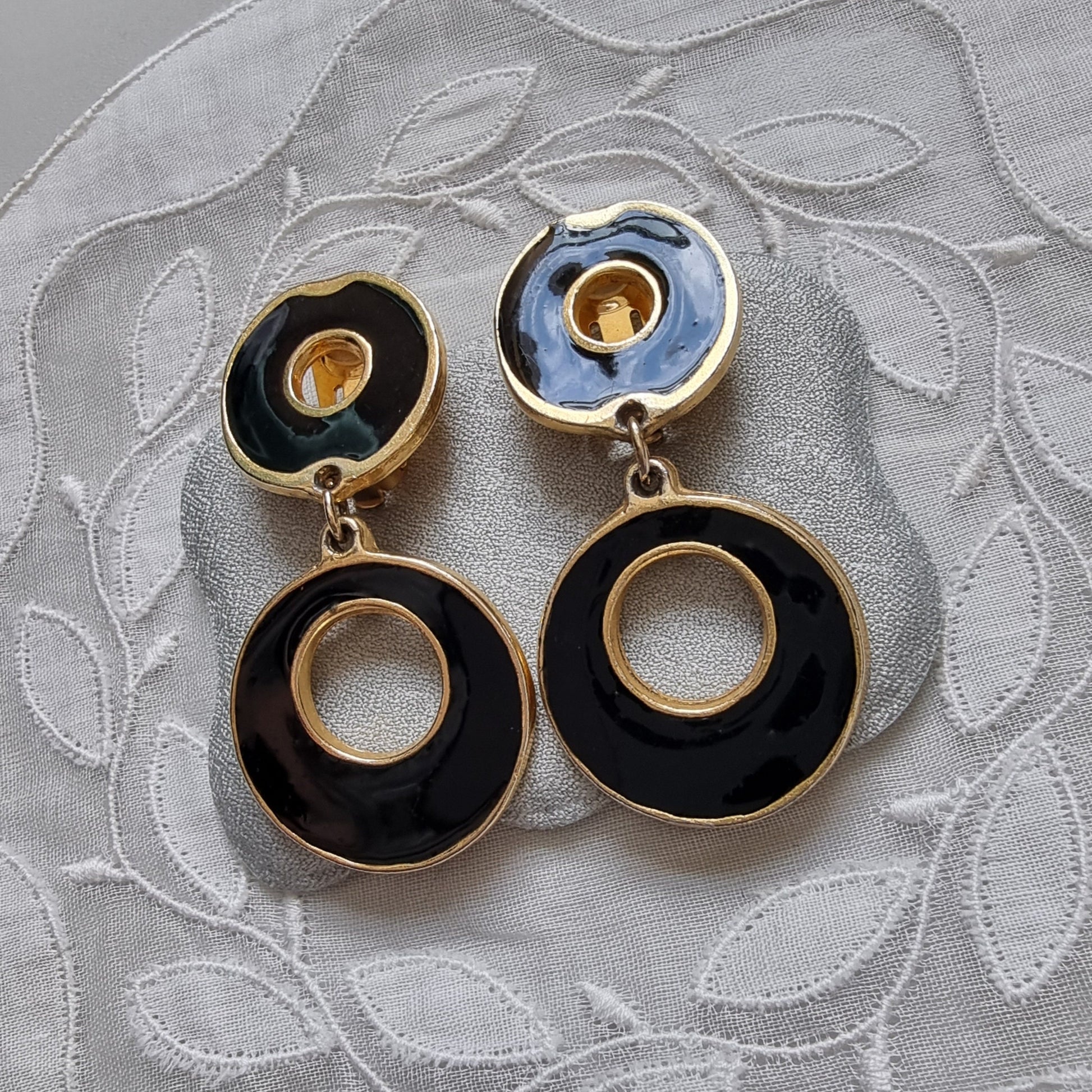 Clip on - Black Enamel Round Drop Clip on Earrings