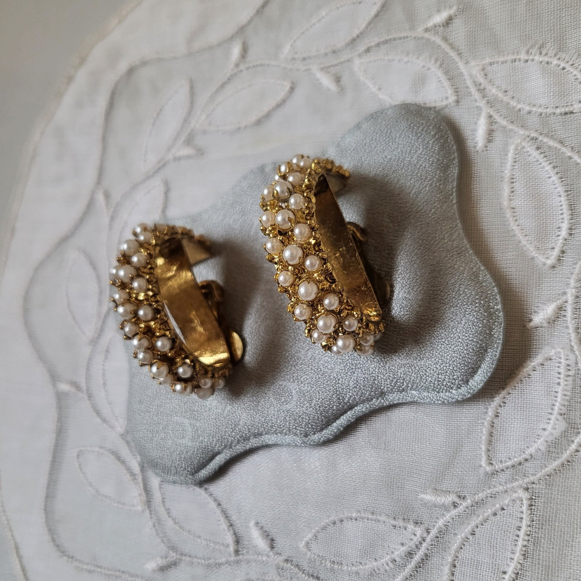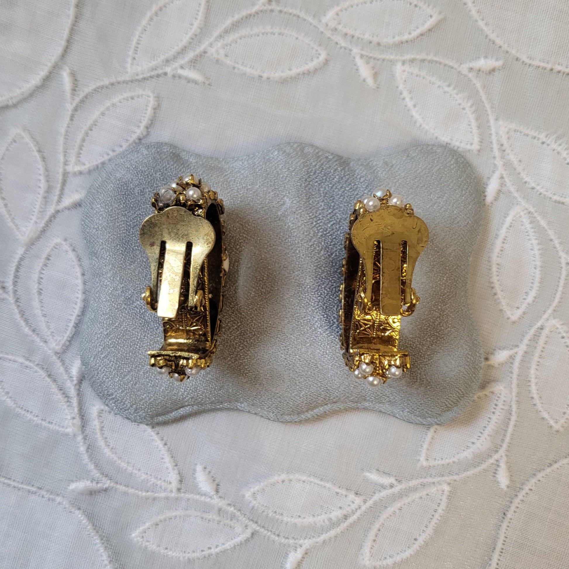 Clip on - Chunky Gold Seed Pearls Half Hoop Clip on Earrings