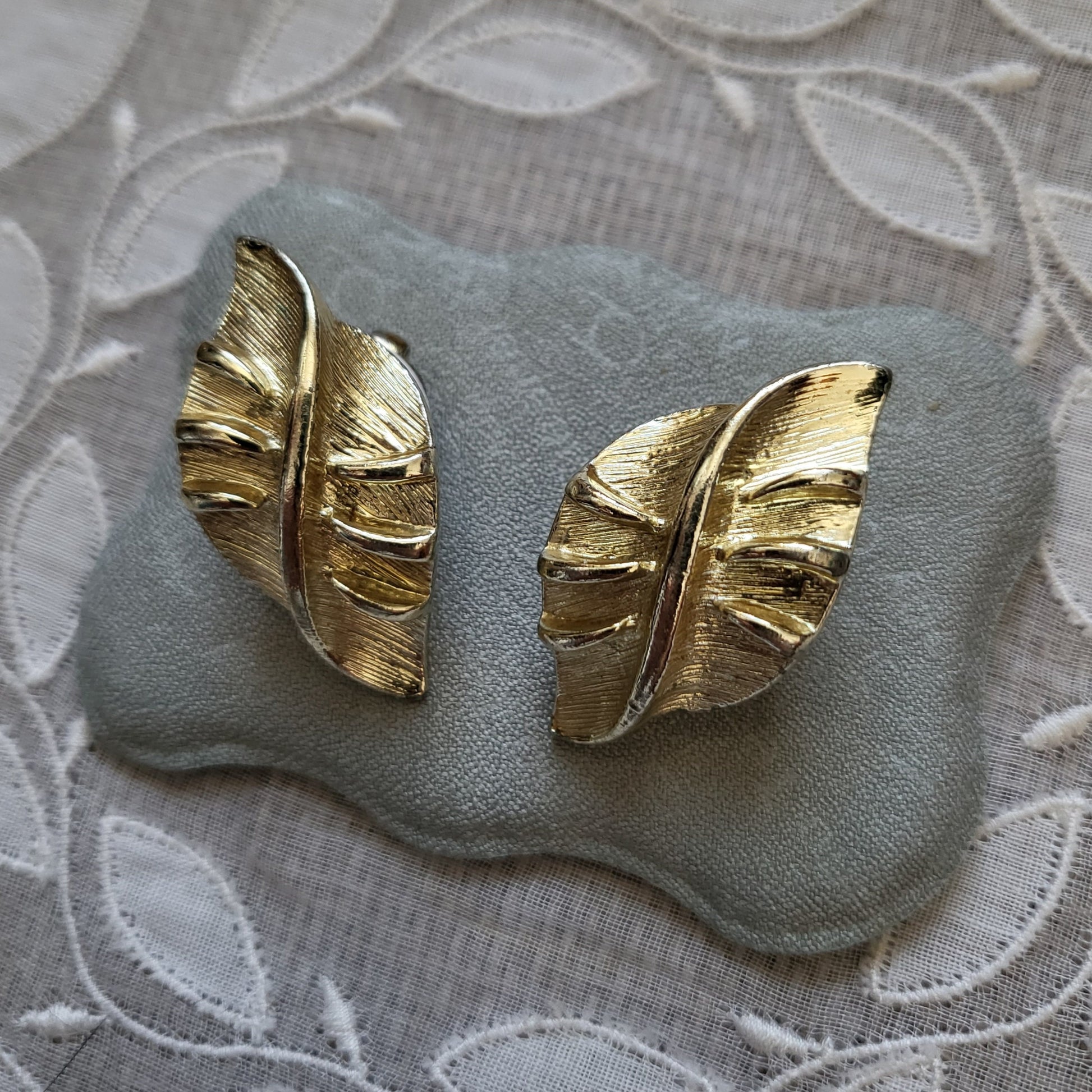 A simple but chic pair of leaf motif clip on earrings by coro in gold plated metal