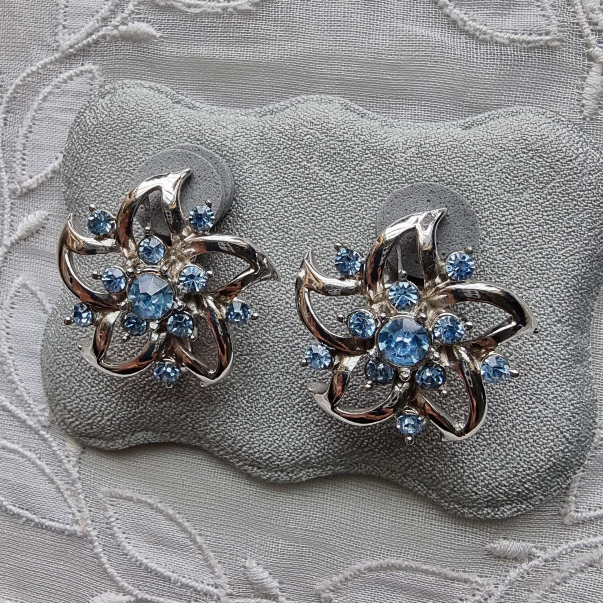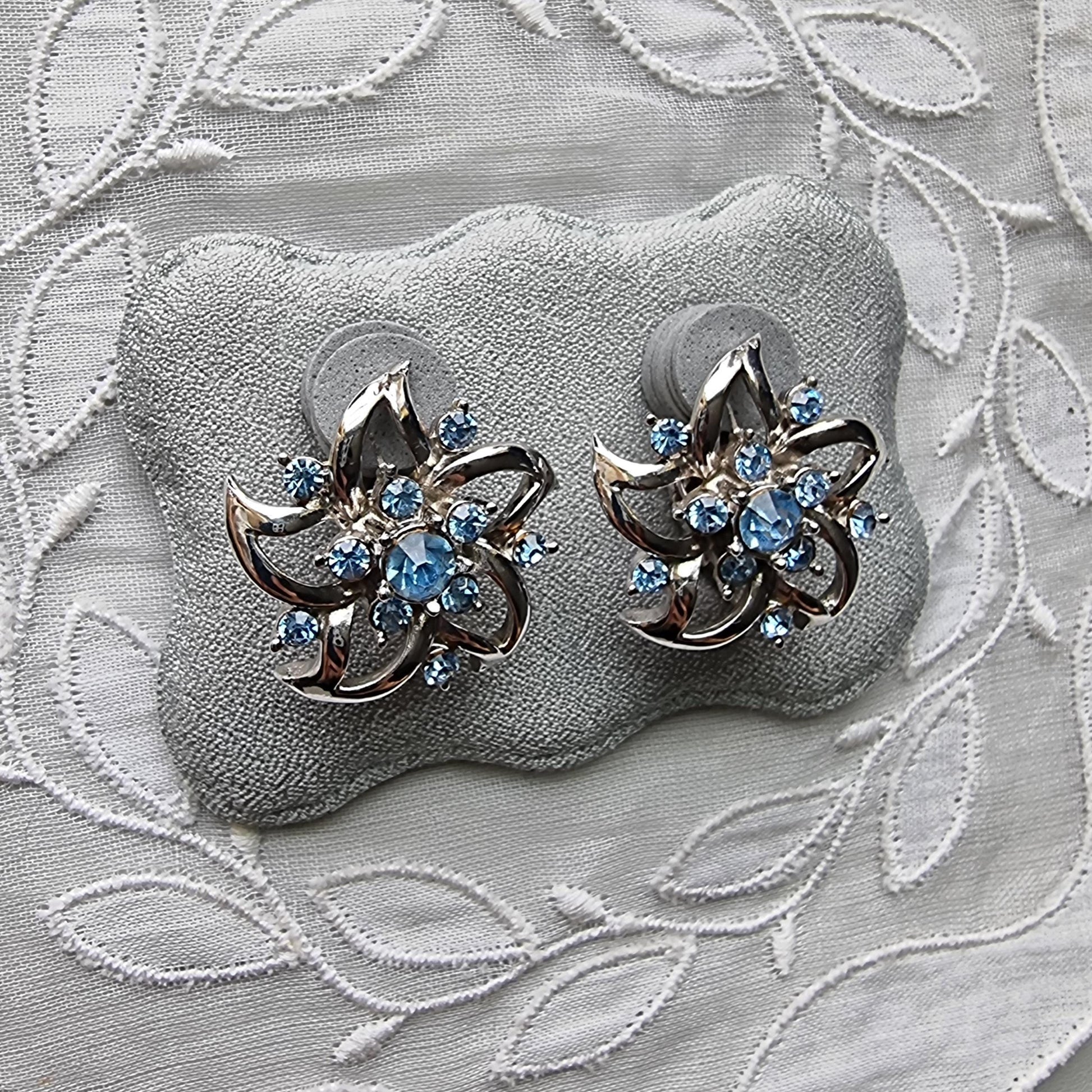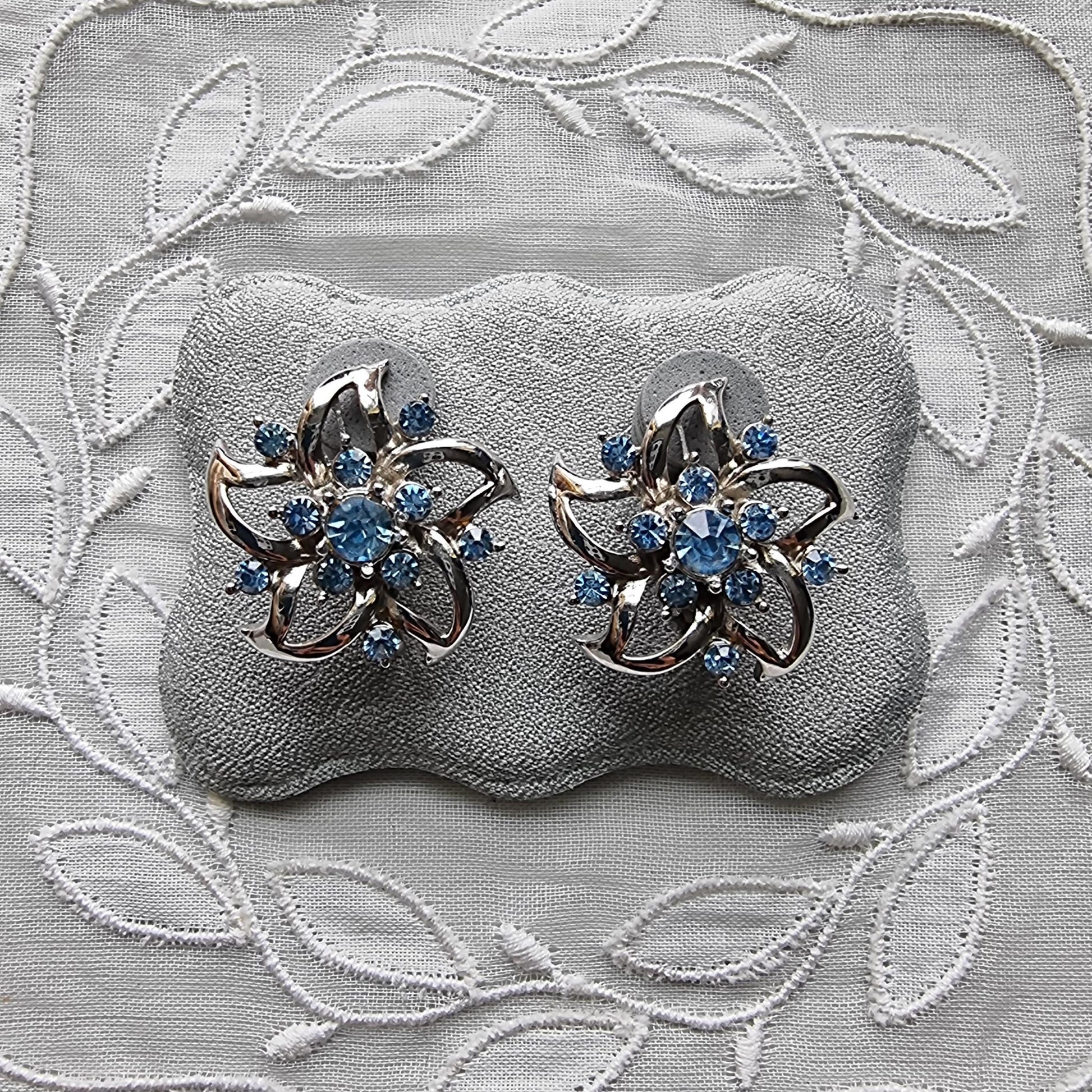 Clip on - Coro Ice Blue Crystal Flower Clip on Earrings