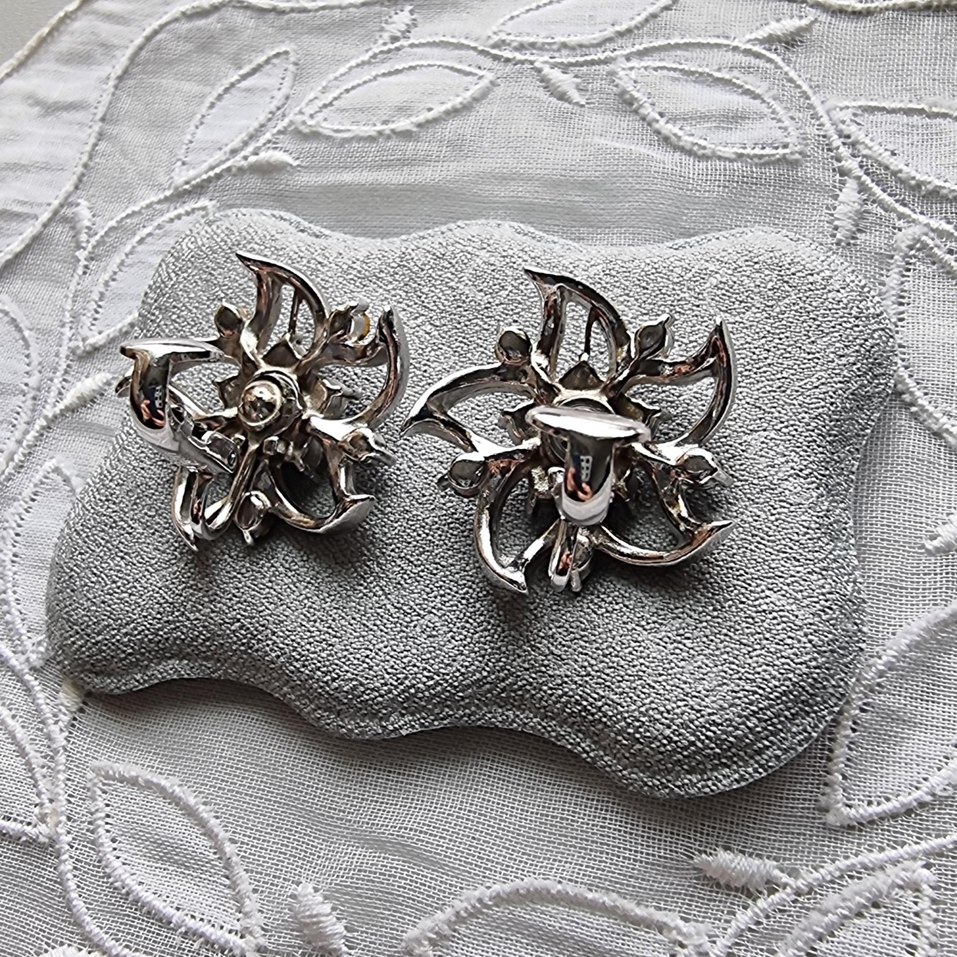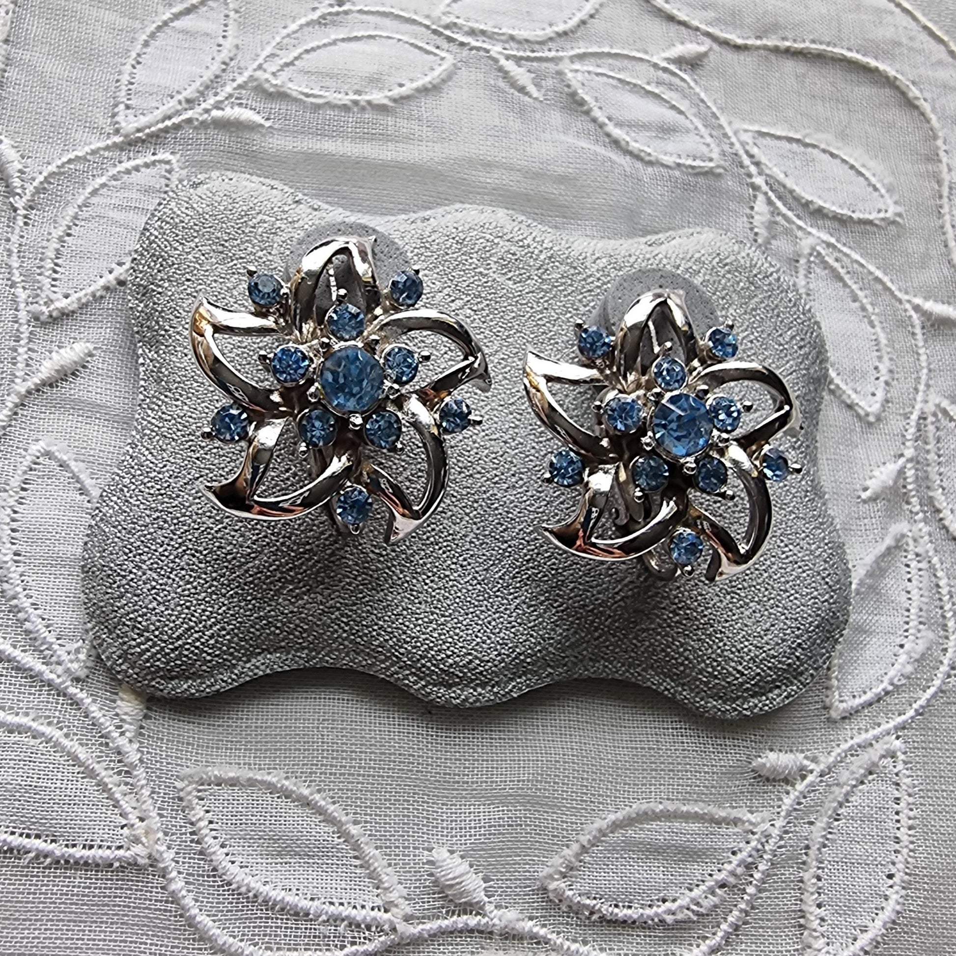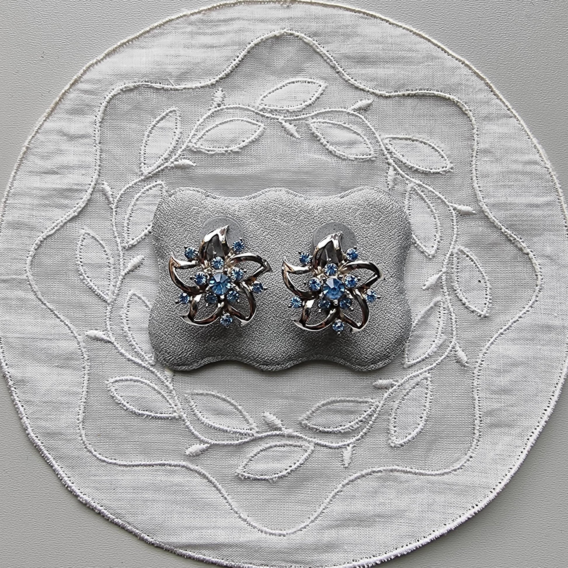 Clip on - Coro Ice Blue Crystal Flower Clip on Earrings