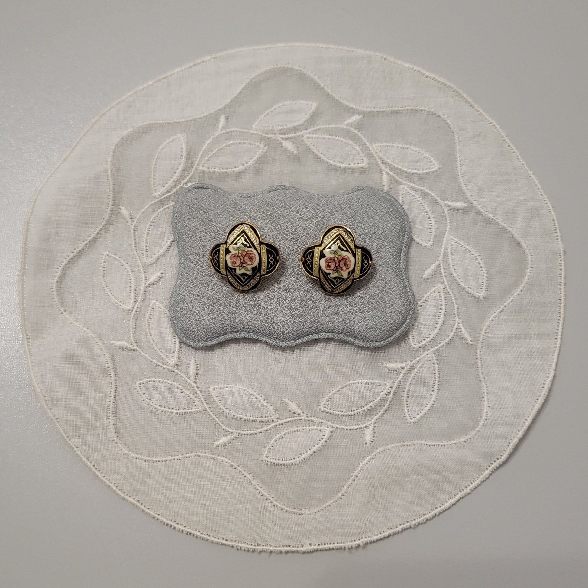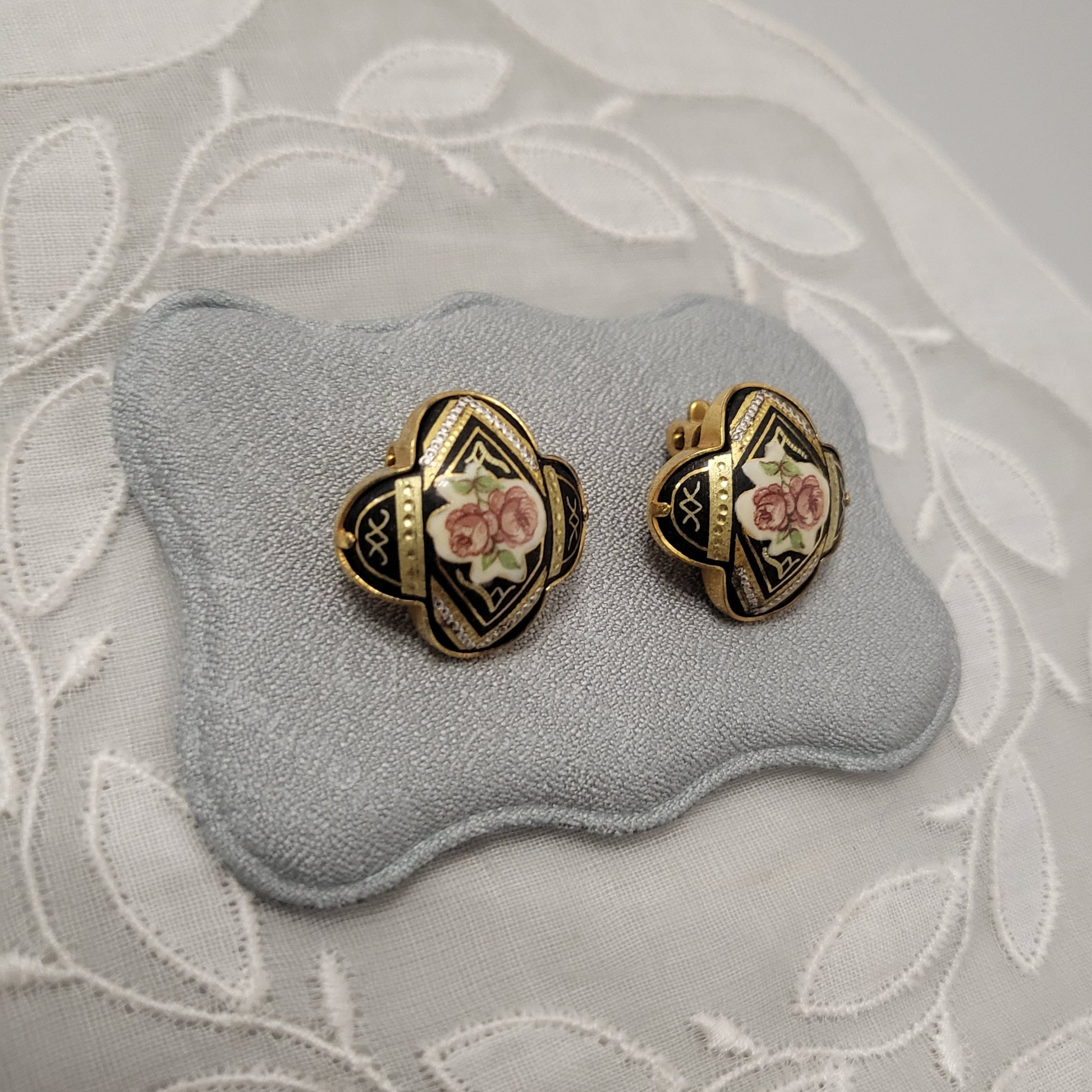 Clip on - Damascene Enamel Rose Clip On Earrings