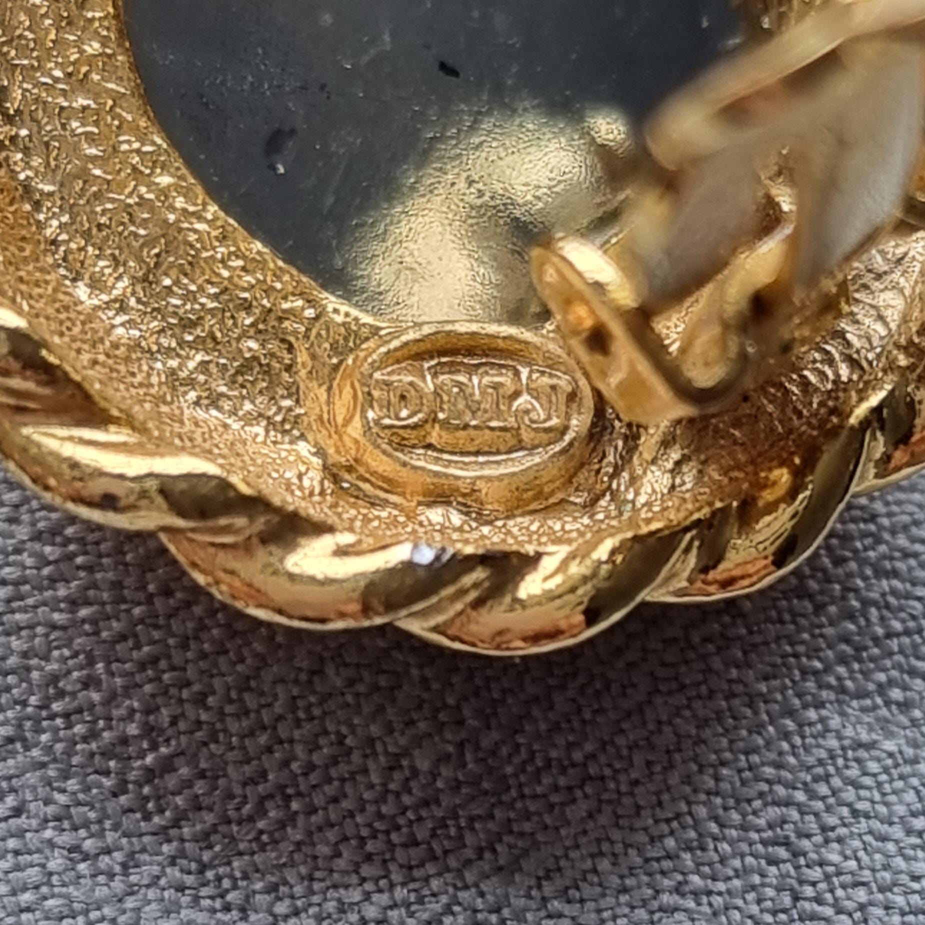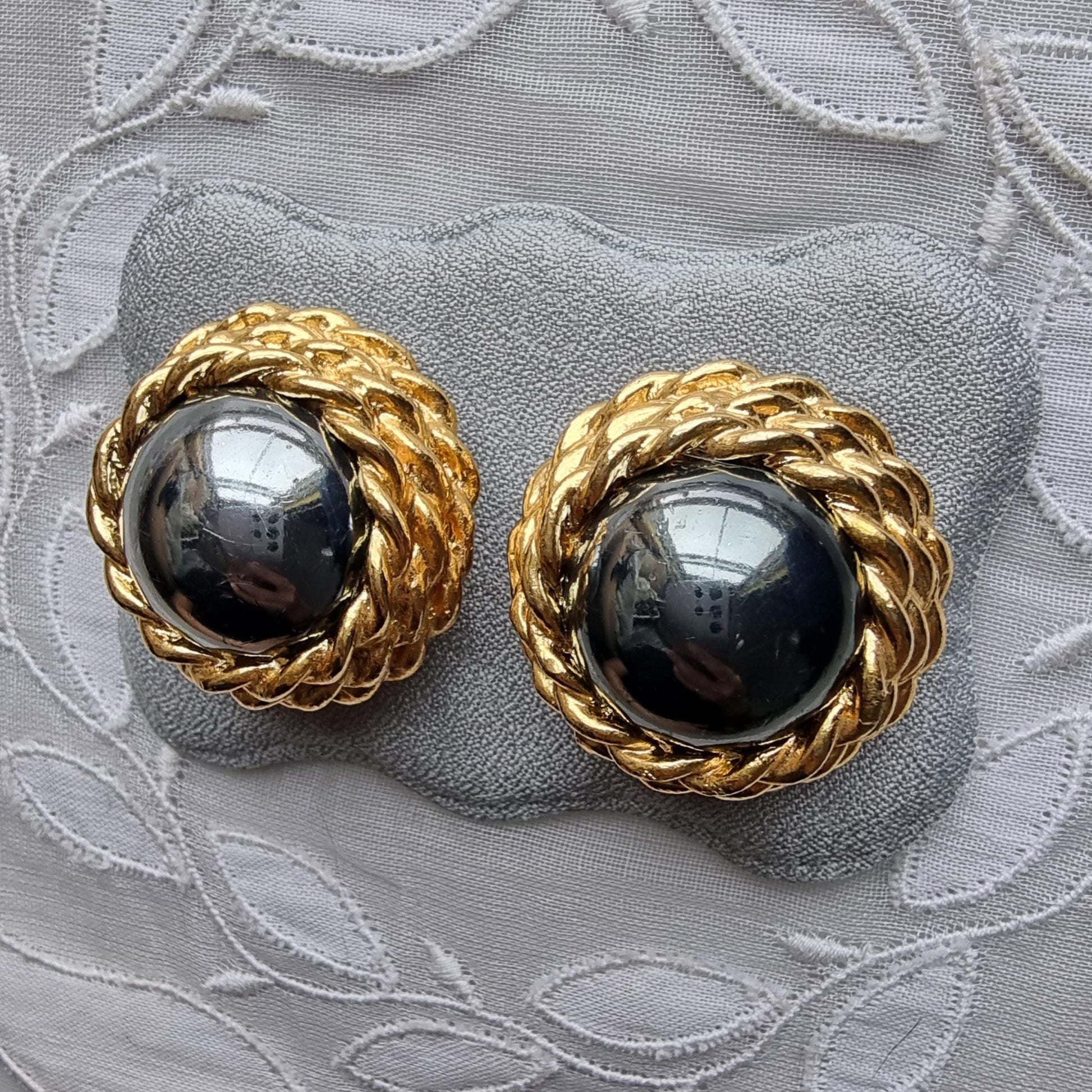 A gorgeous pair of rope design clip on earrings by DMJ with hematite cabochon on gold plated metal