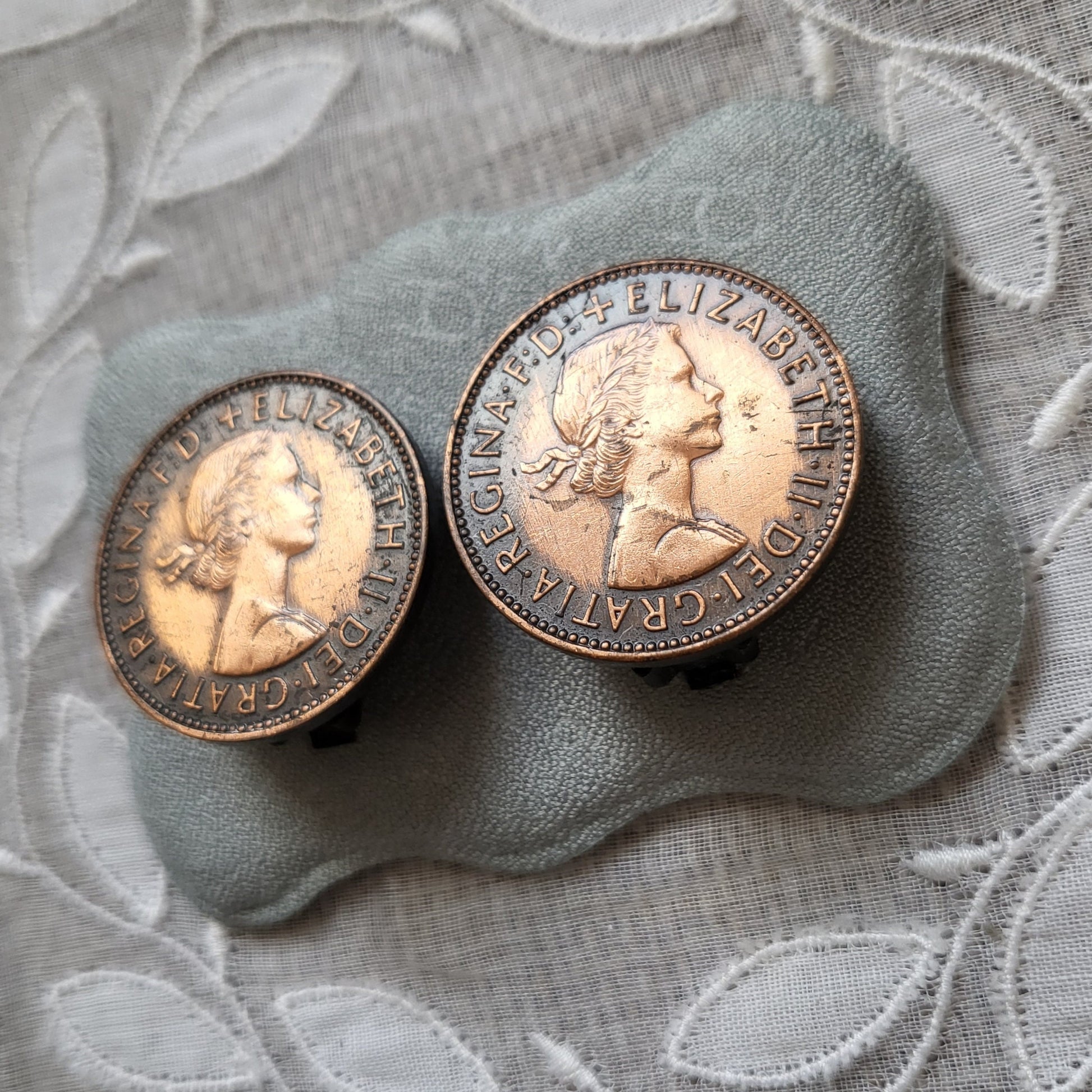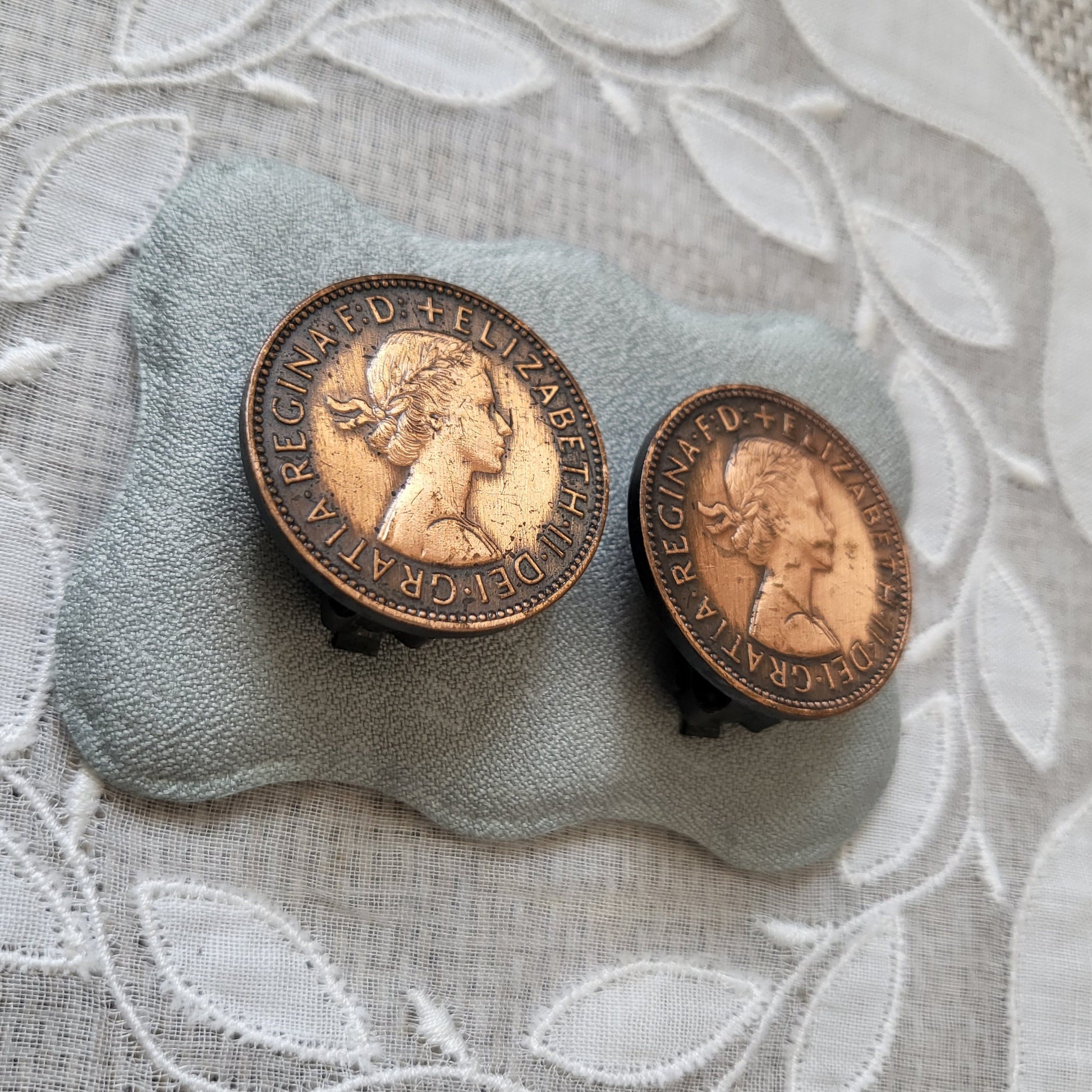 Clip on - Elizabeth II 1959 Half Penny Coin Clip on Earrings
