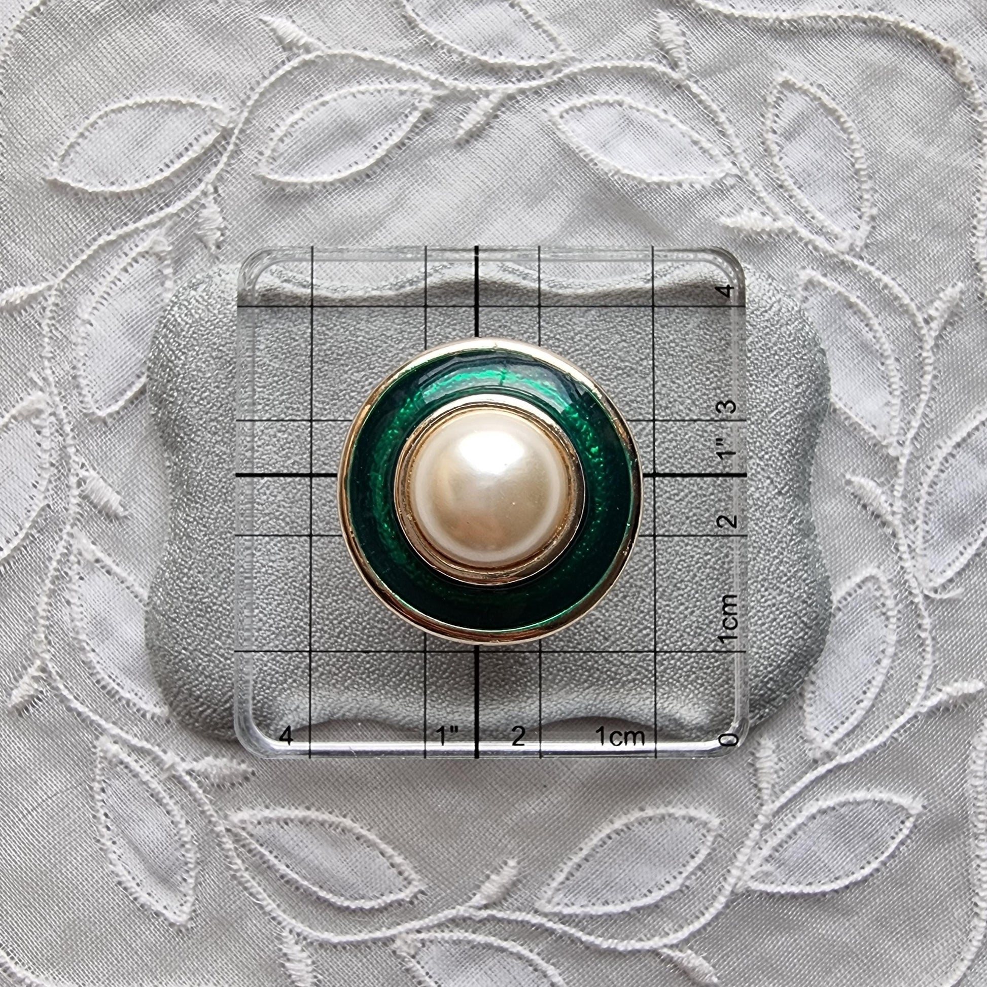 Clip on - Faux Pearl and Green Enamel Clip On Earrings
