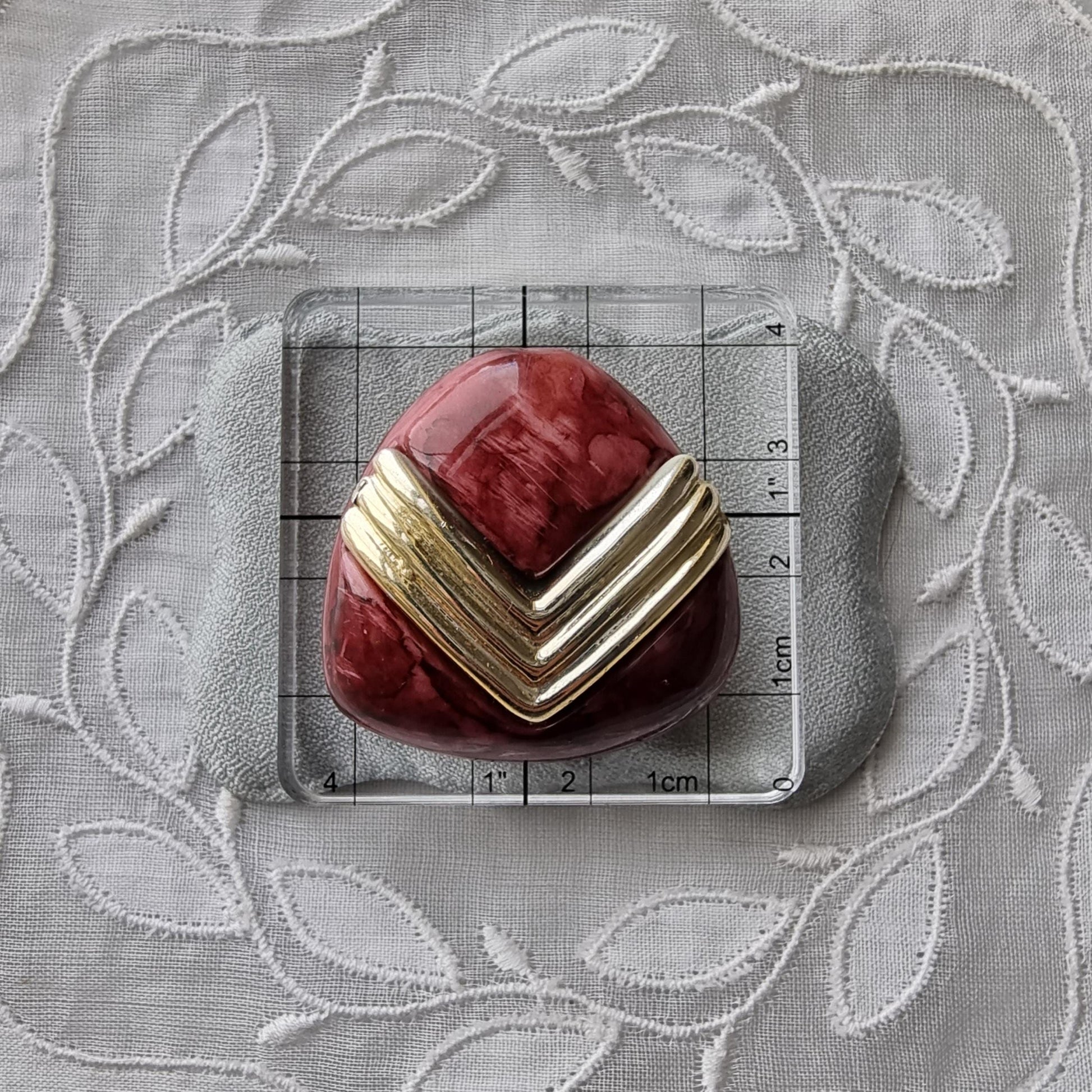 Clip on - Gold and Burgundy Triangular Acrylic Clip on Earrings