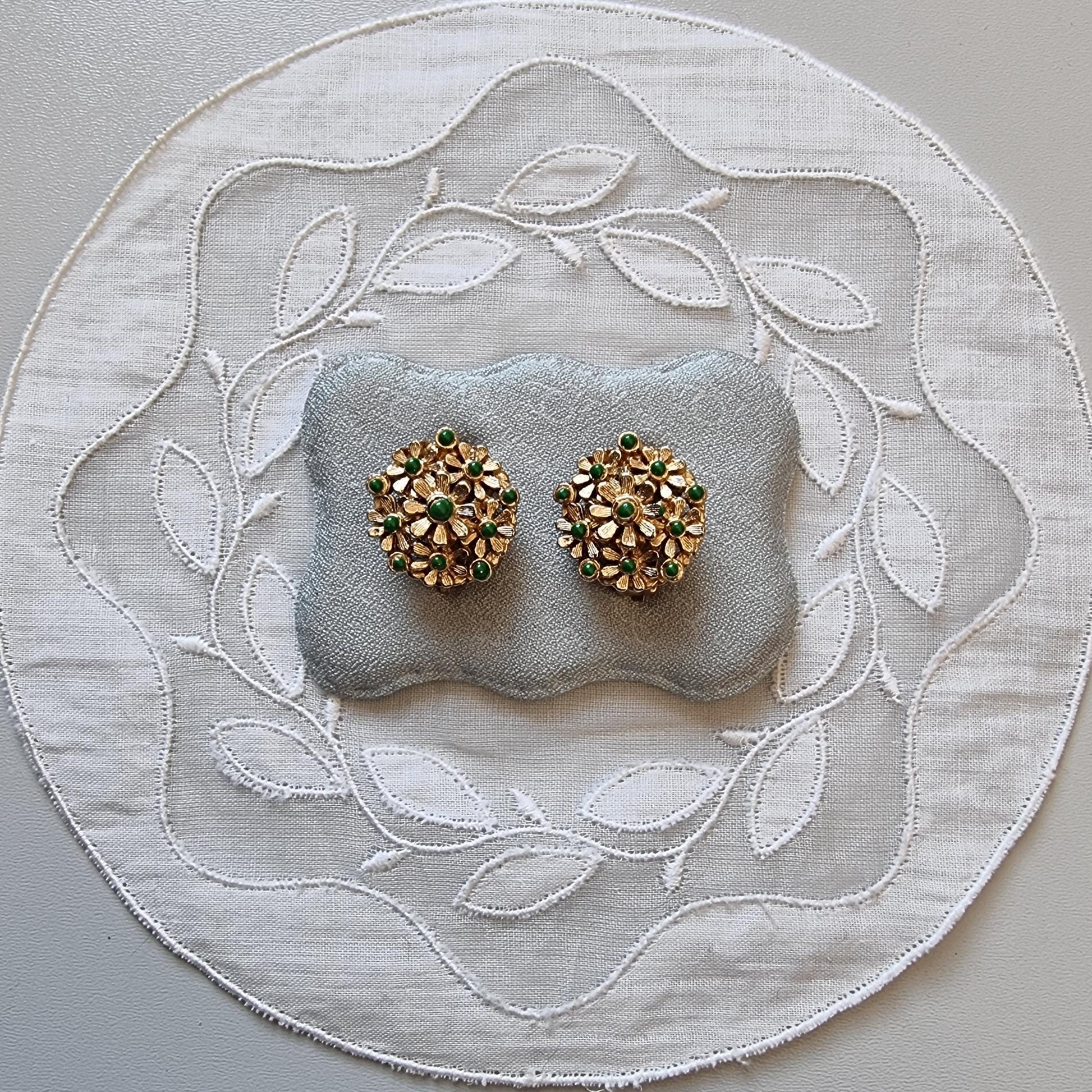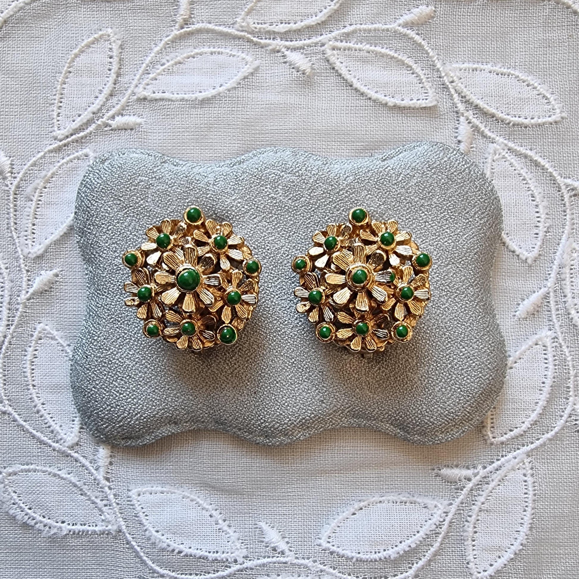 Clip on - Green Enamel Flower Cluster Clip on Earrings
