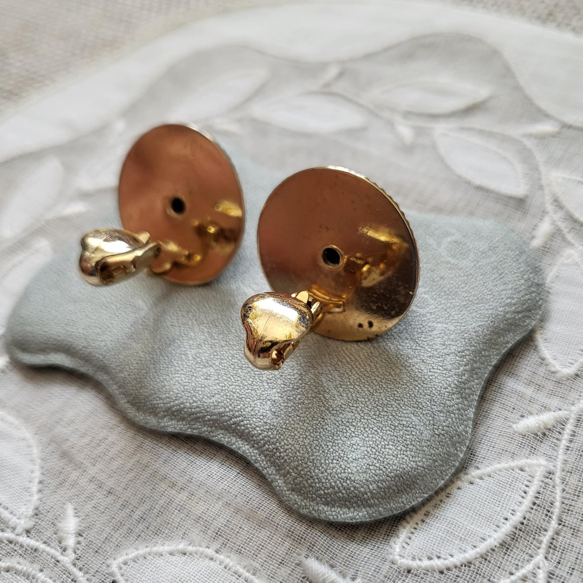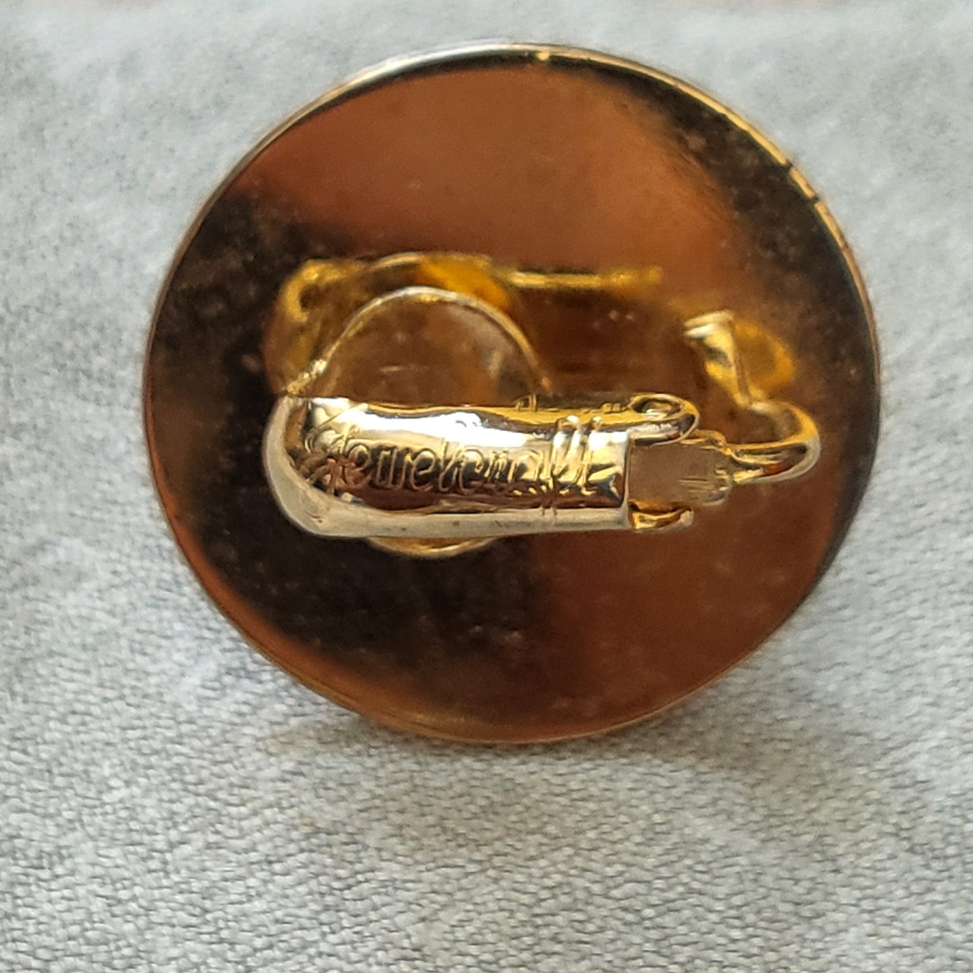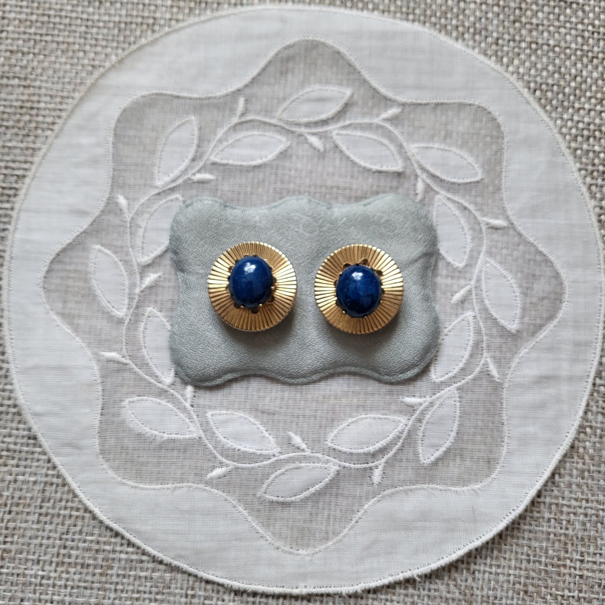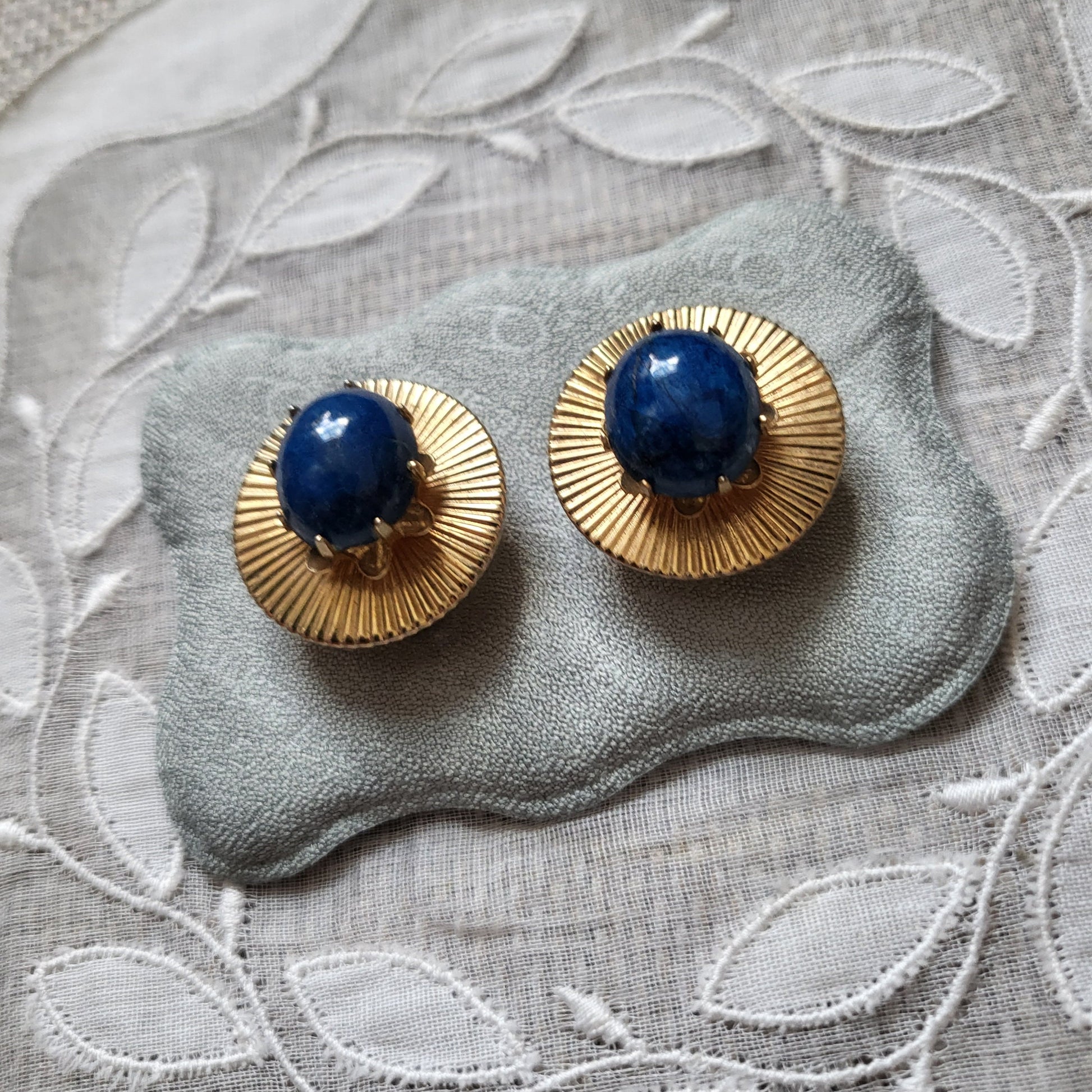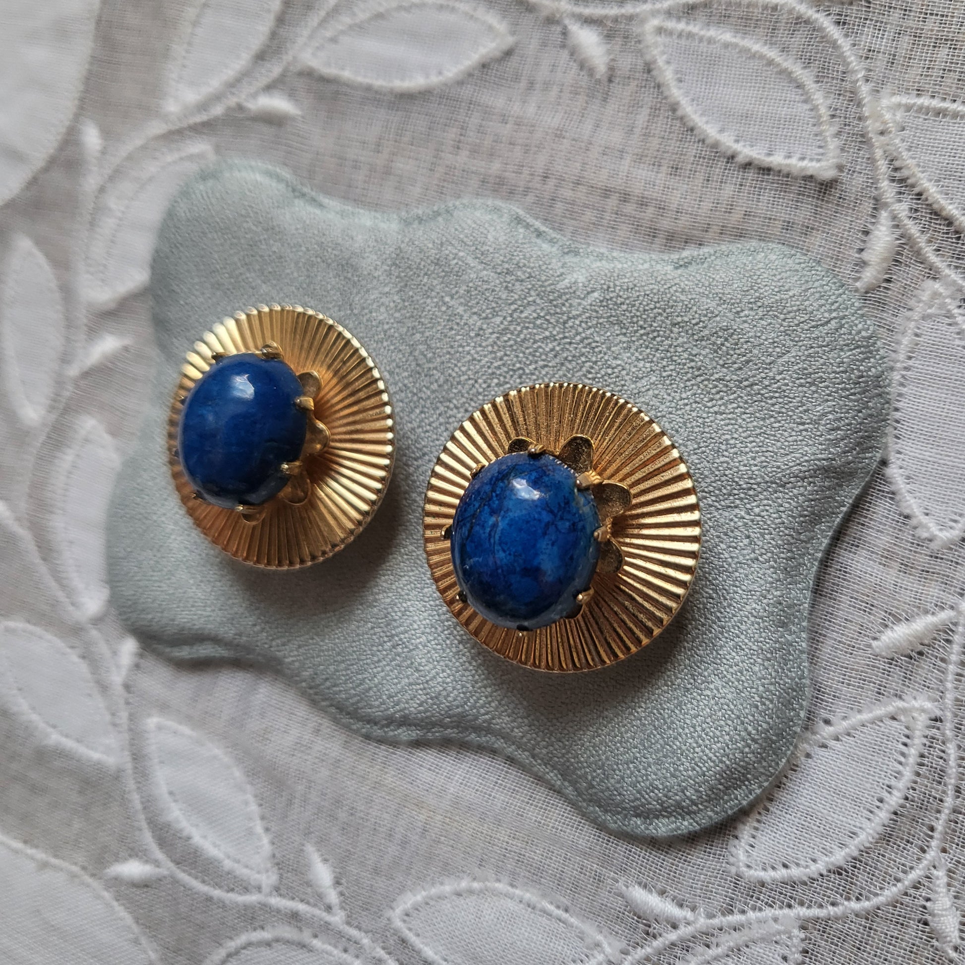 A beautiful pair of round clip on earrings with lapis lazuli stone on gold plated metal