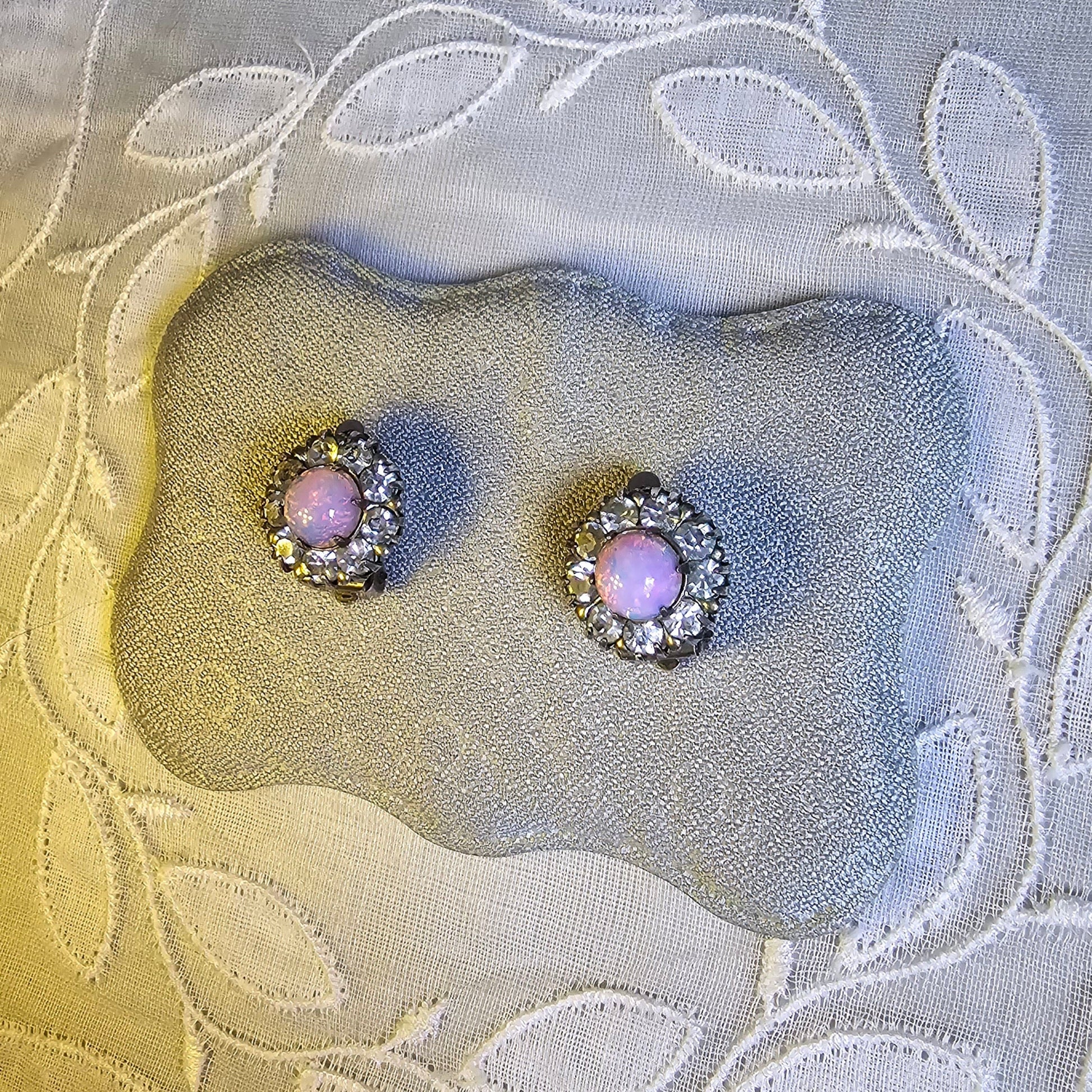 Clip on - Pink Opaline and Clear Crystals Halo Clip on Earrings